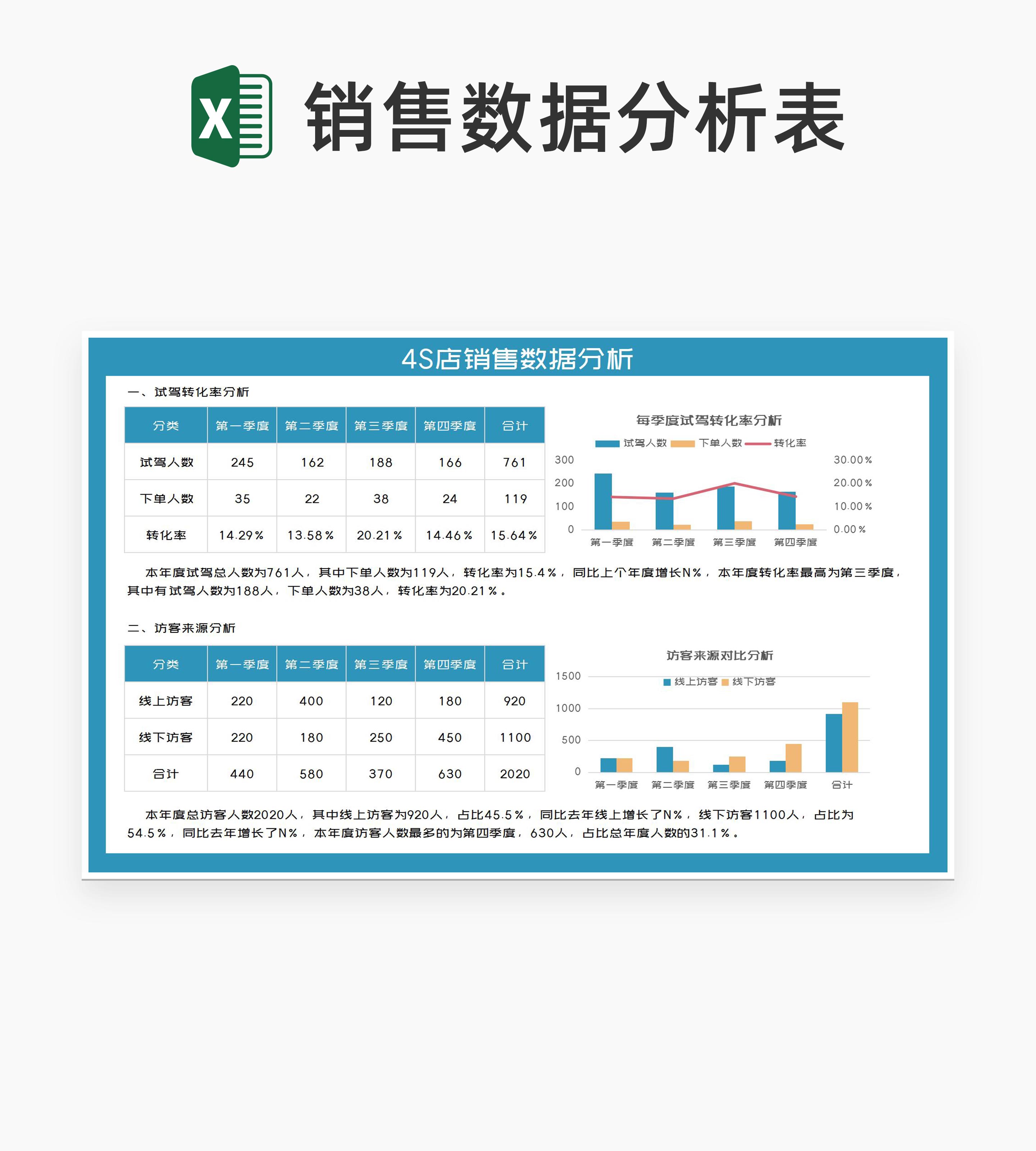 蓝色4S店销售数据分析Excel模板