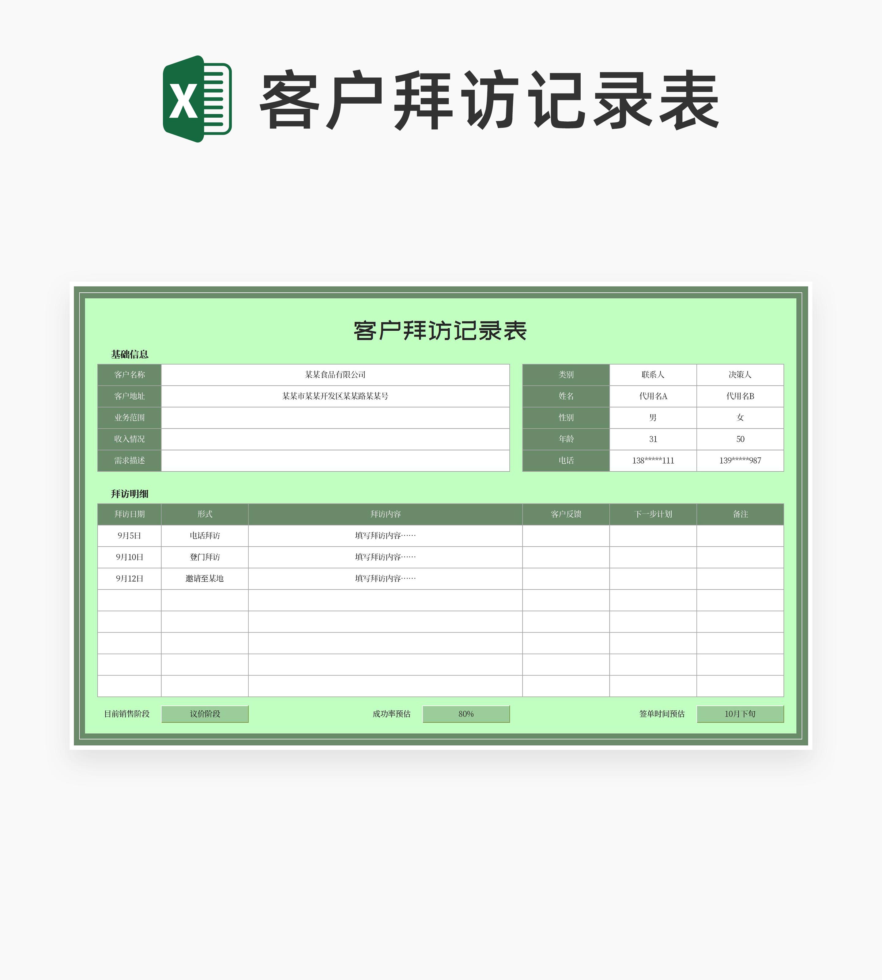绿色公司客户拜访记录表Excel模板