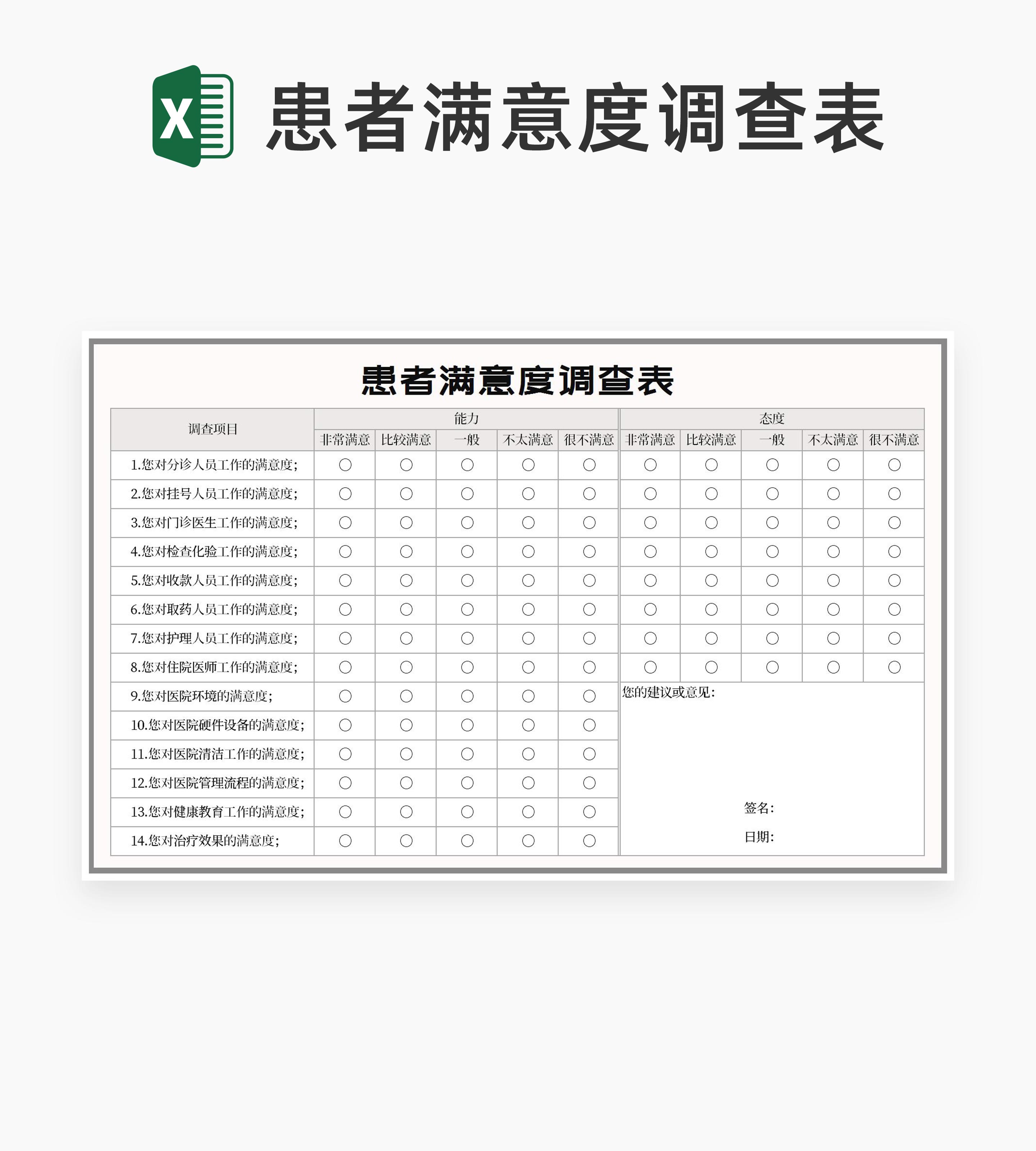 医院患者满意度调查表Excel模板