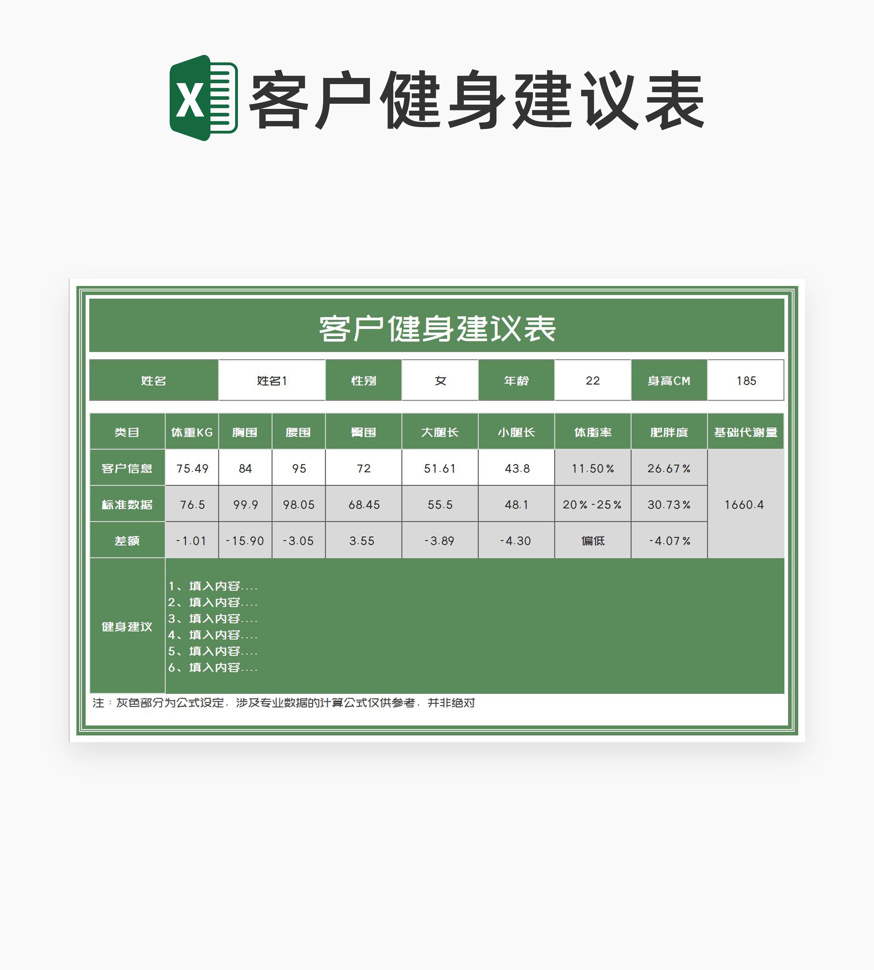 绿色客户健身建议信息表Excel模板