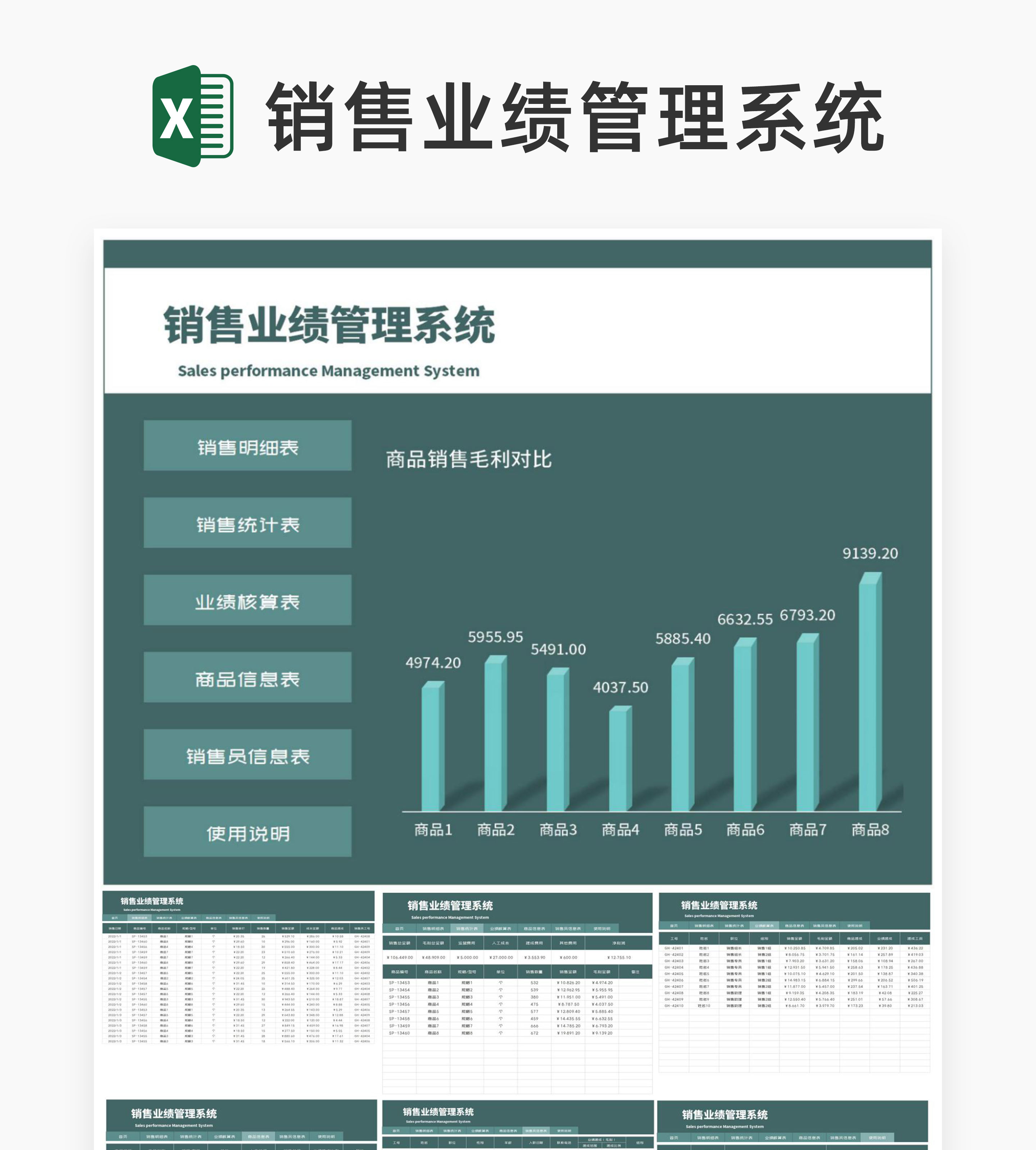绿色商务风商品销售业绩管理系统Excel模板