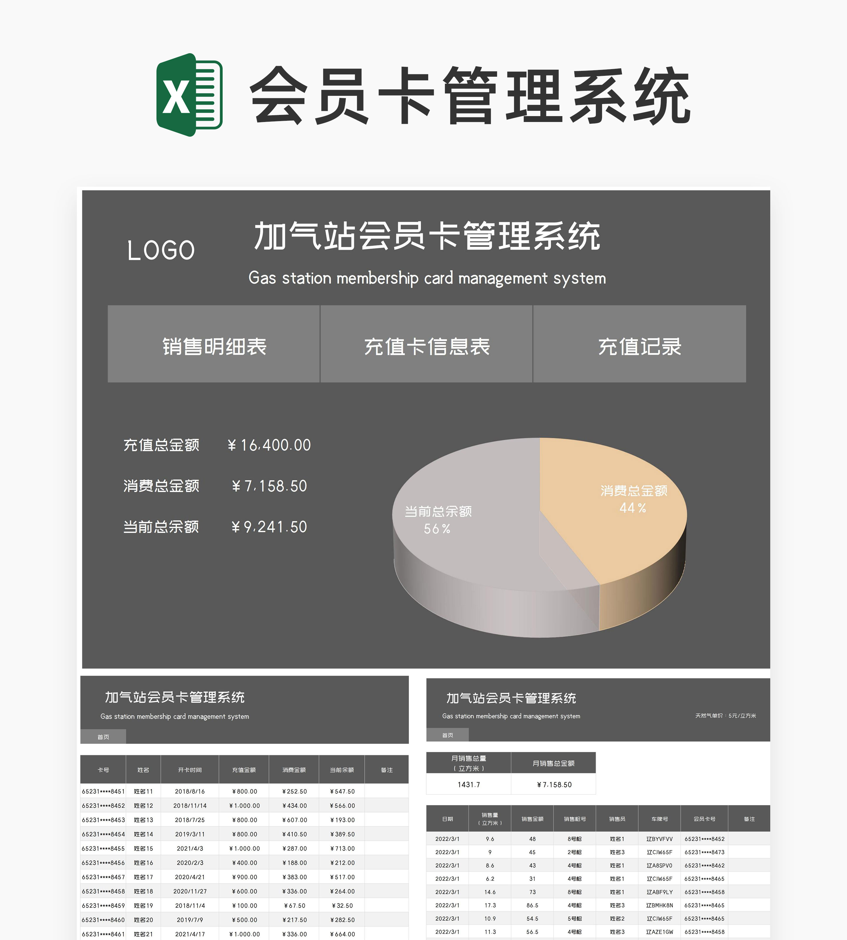 商务风灰色加气站会员卡管理系统Excel模板