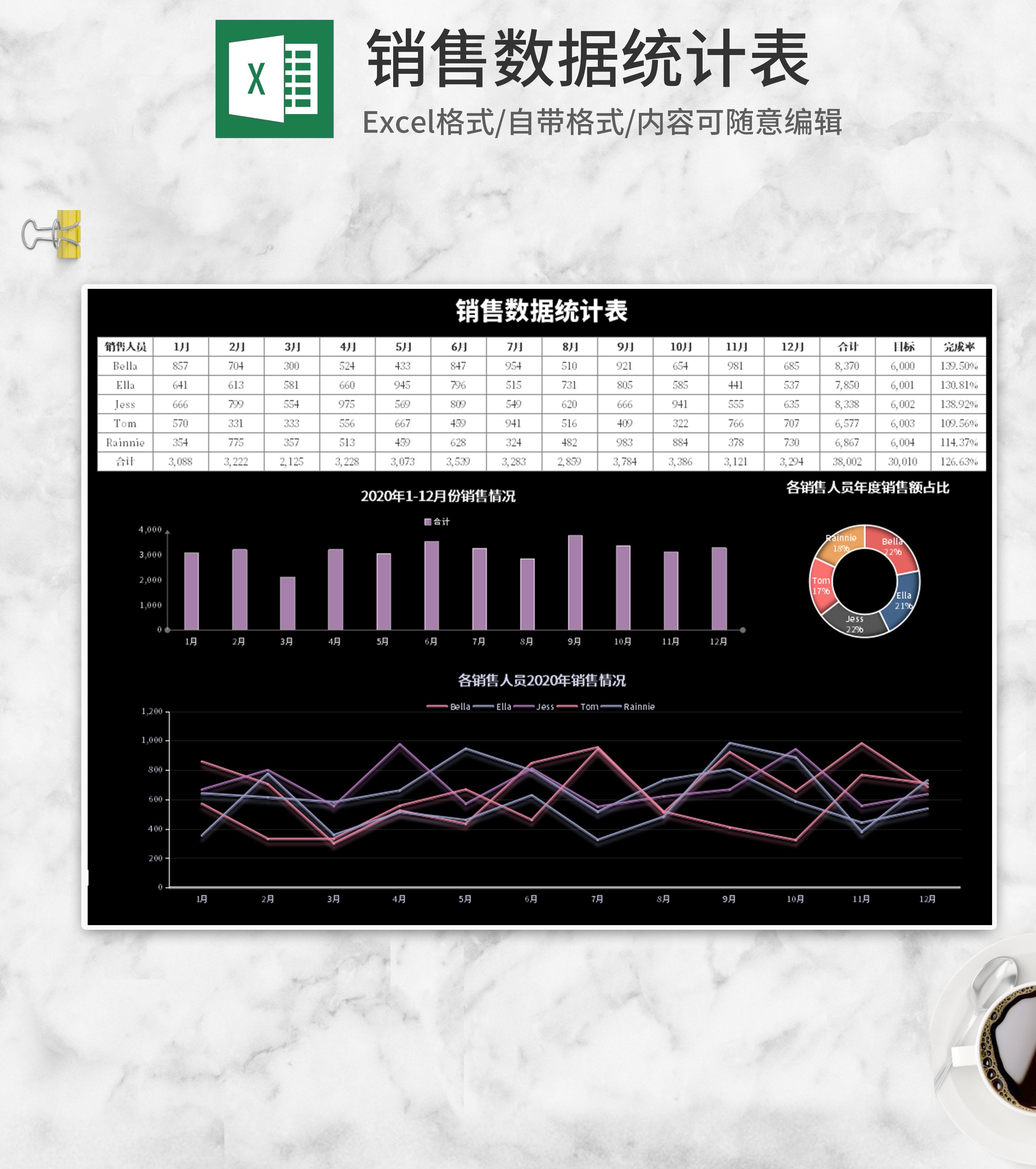 深色销售数据统计表Excel模板