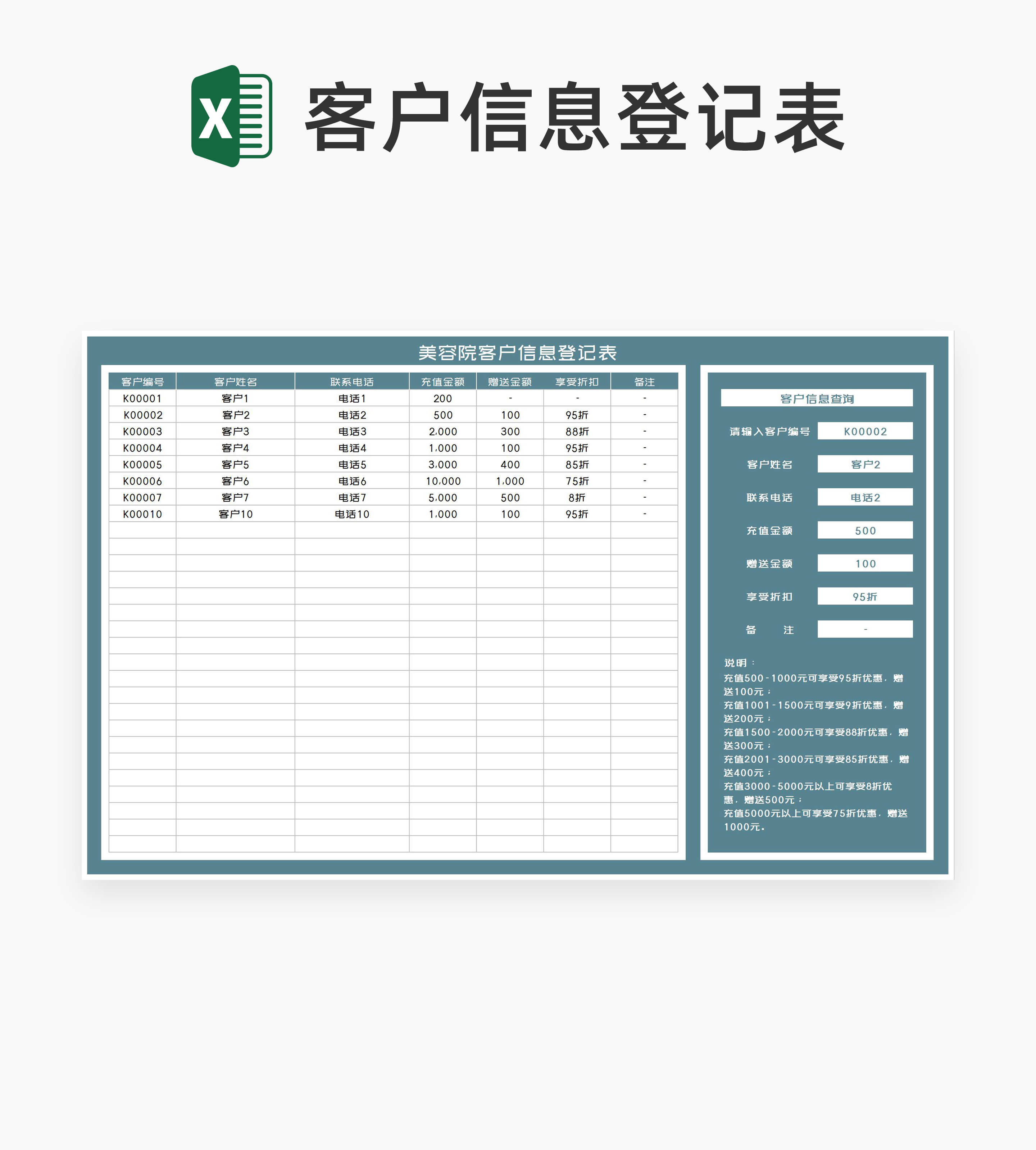 商务风美容院客户信息登记表Excel模板