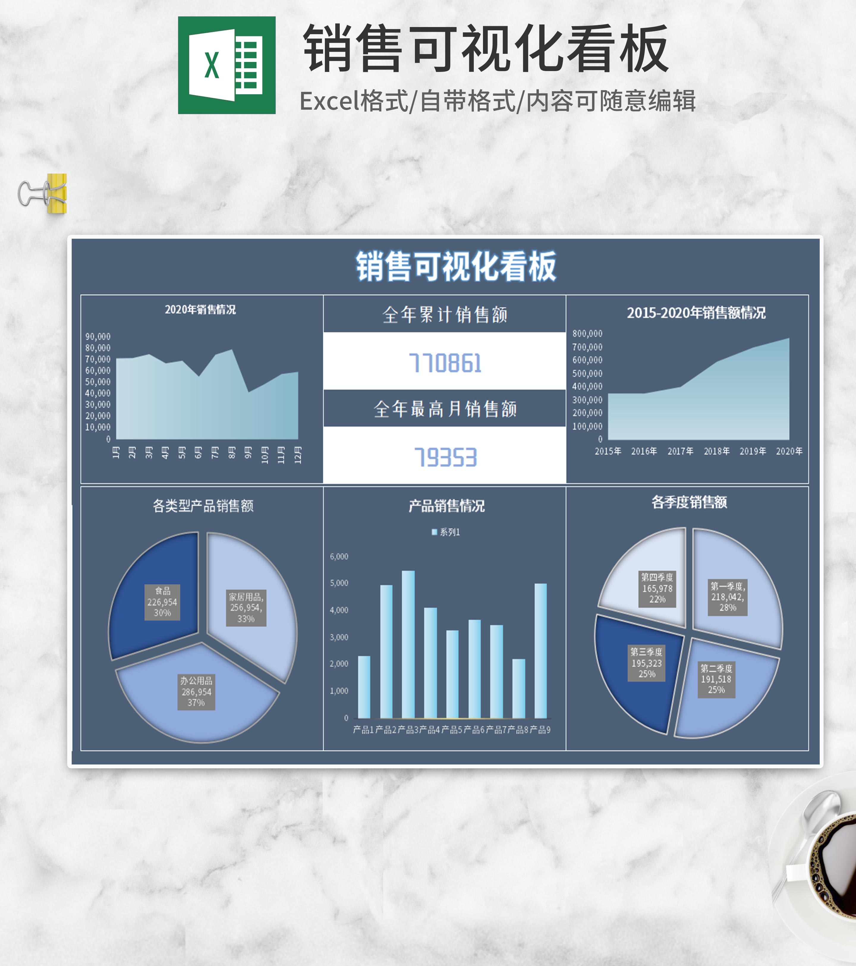 深蓝销售数据可视化看板Excel模板