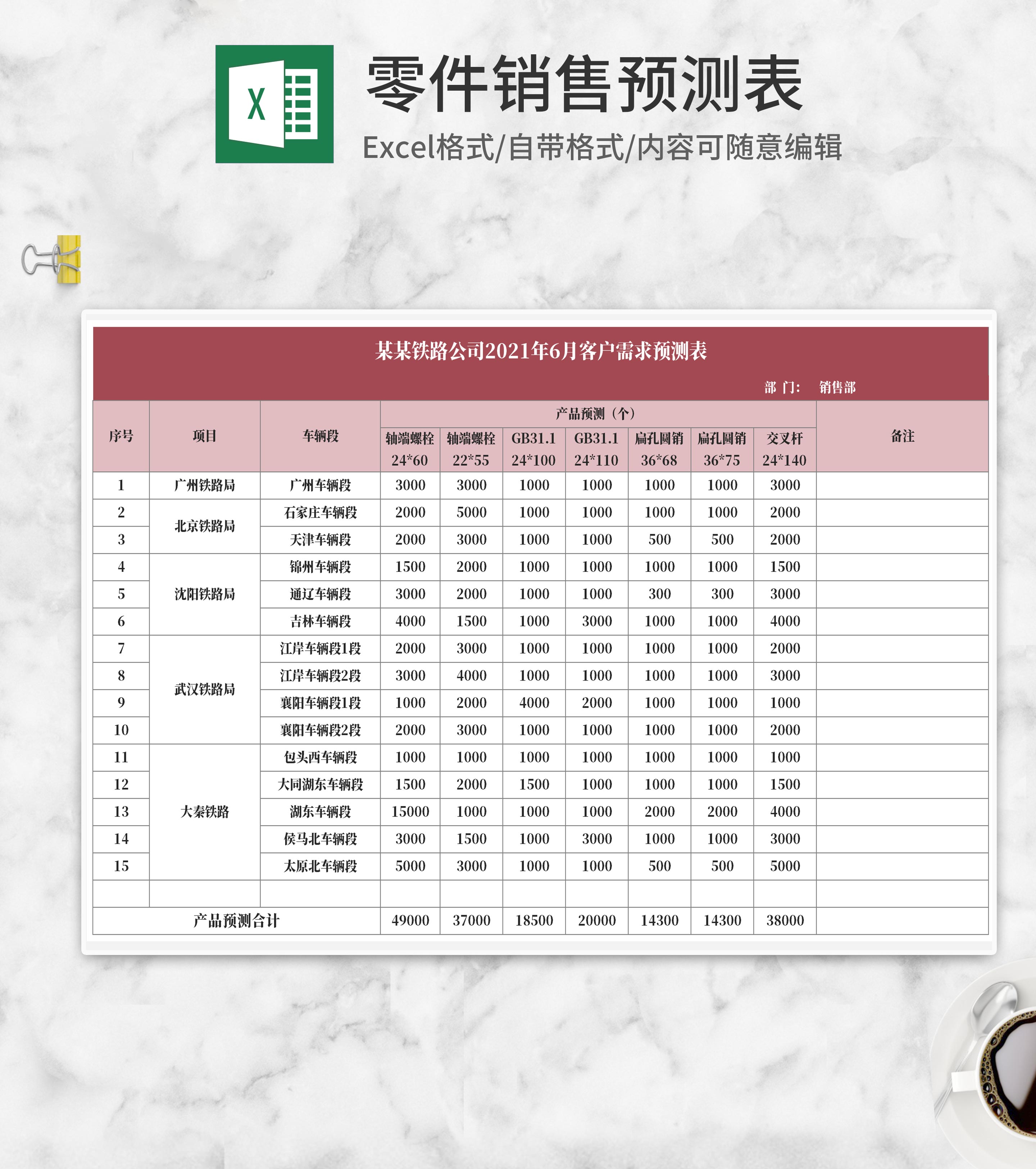 铁路公司月度客户需求预测表Excel模板
