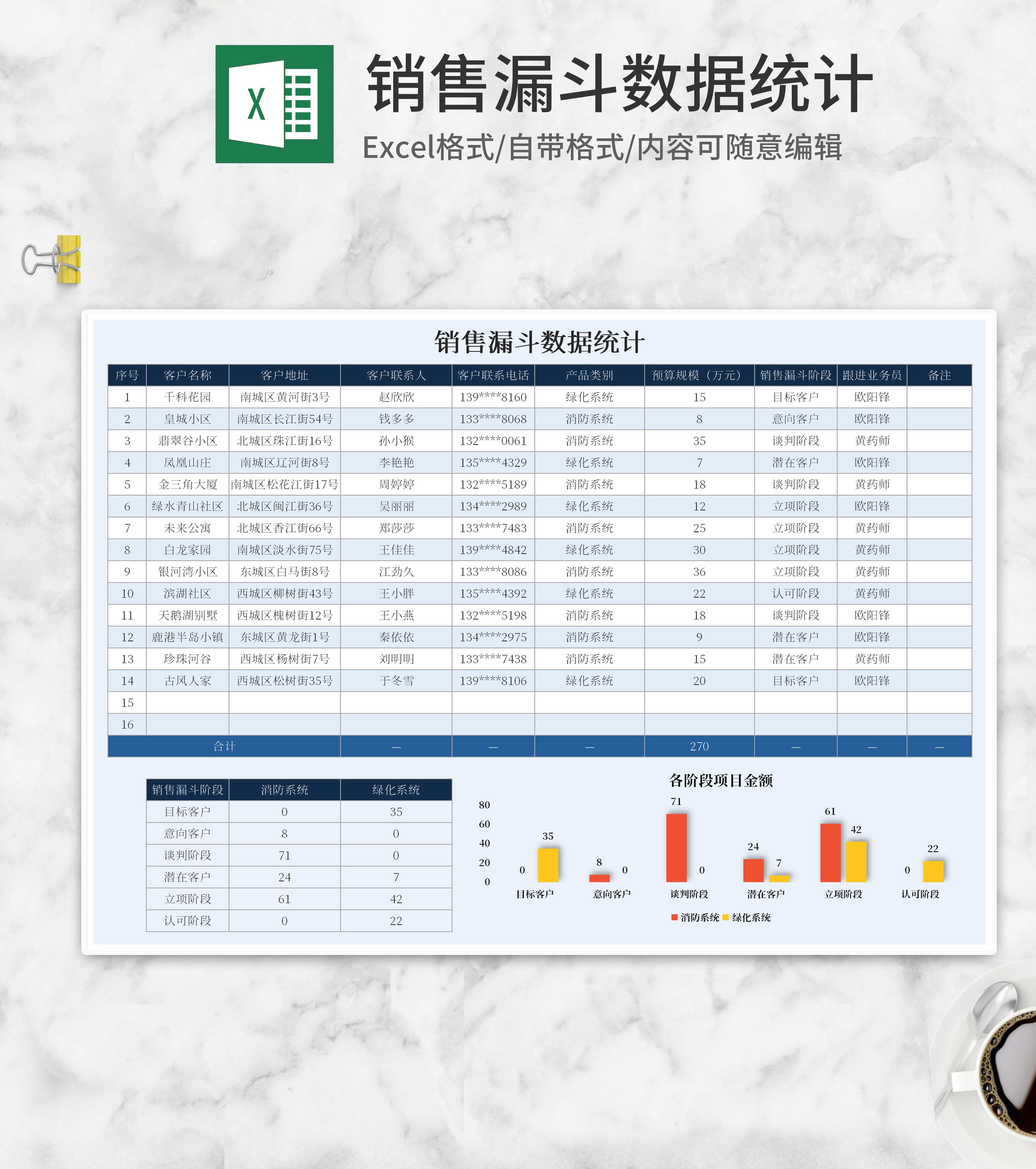 销售客户漏斗数据统计Excel模板