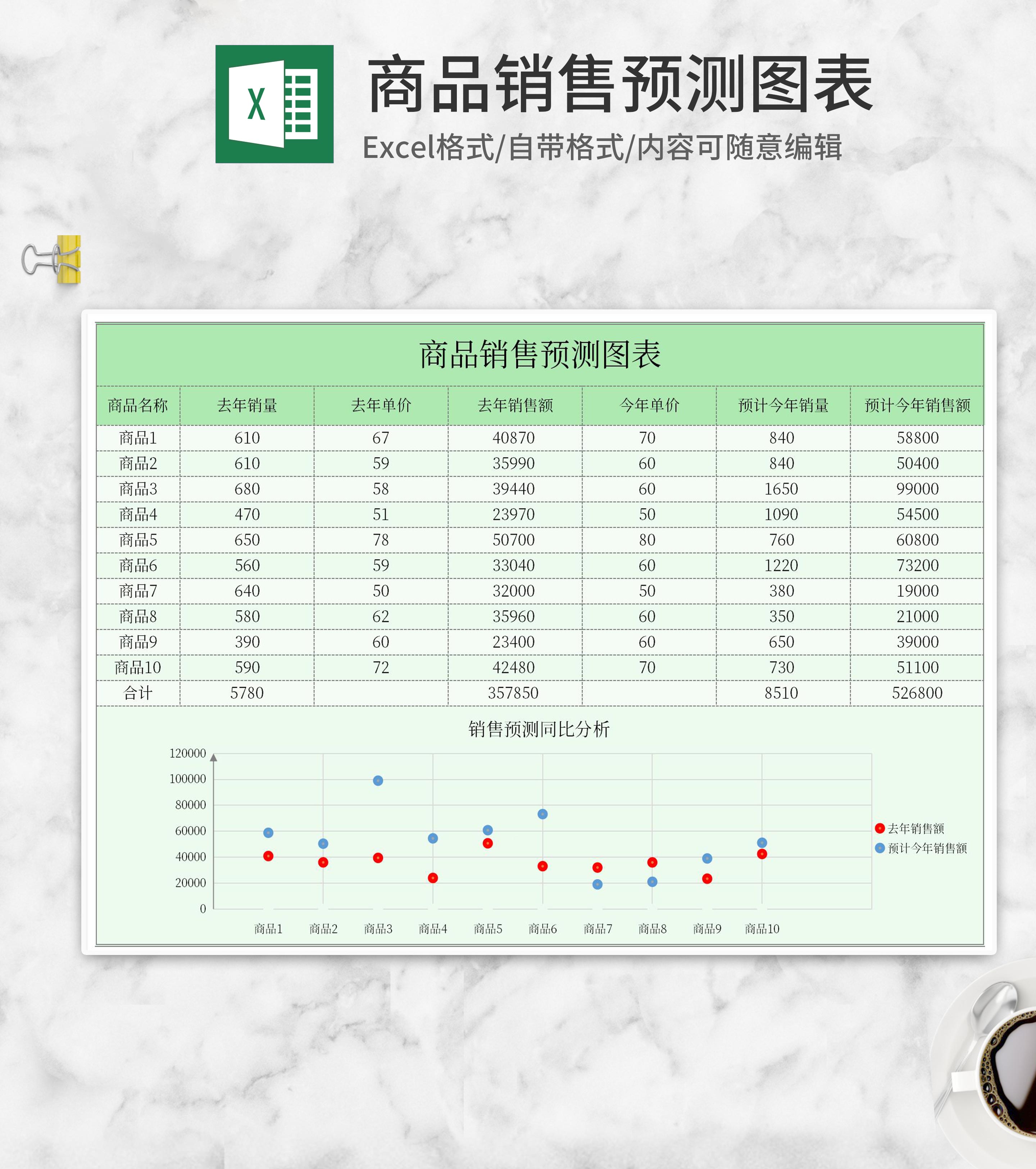年度商品销售预测图表Excel模板