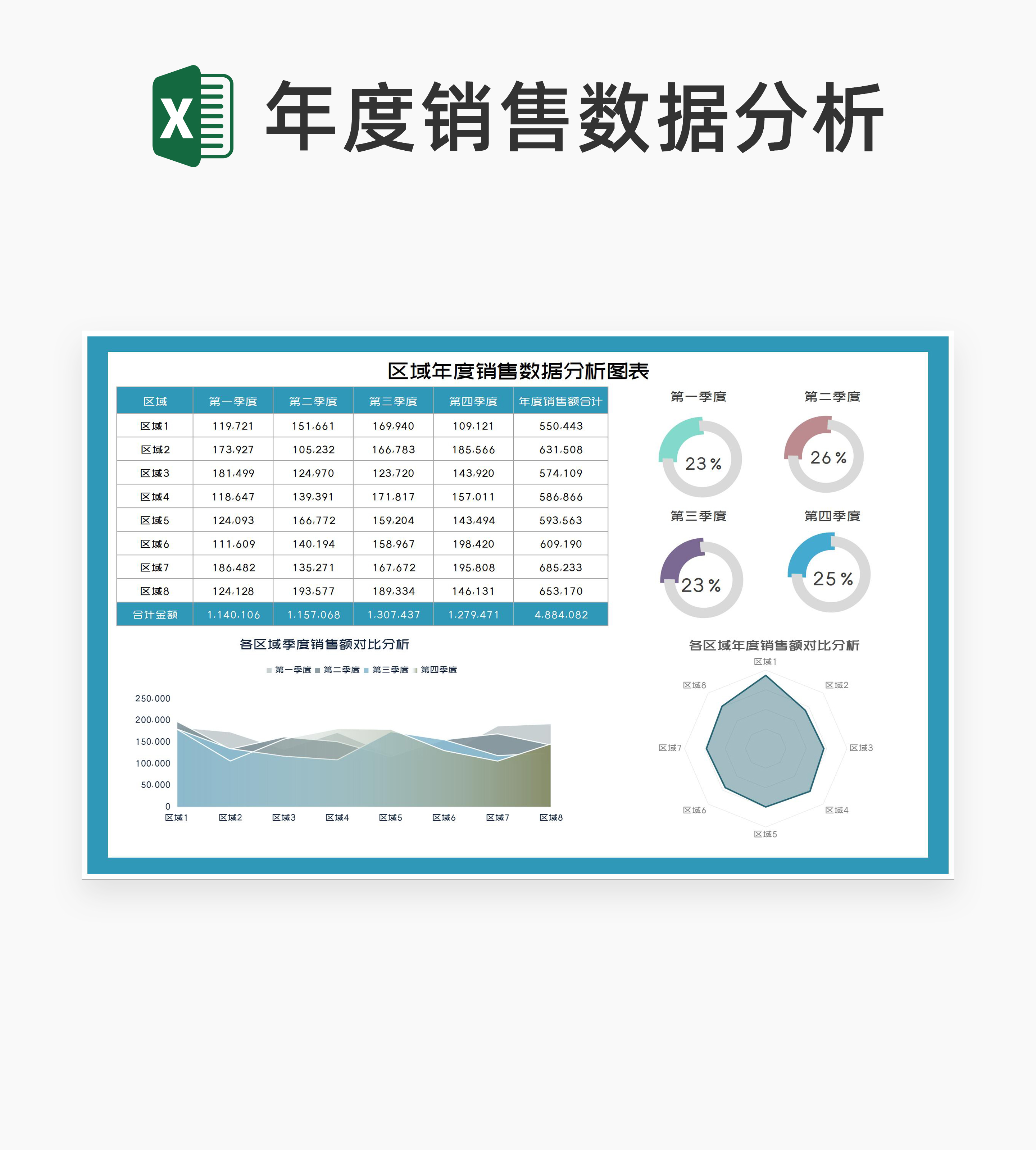 区域年度销售数据分析图表Excel模板