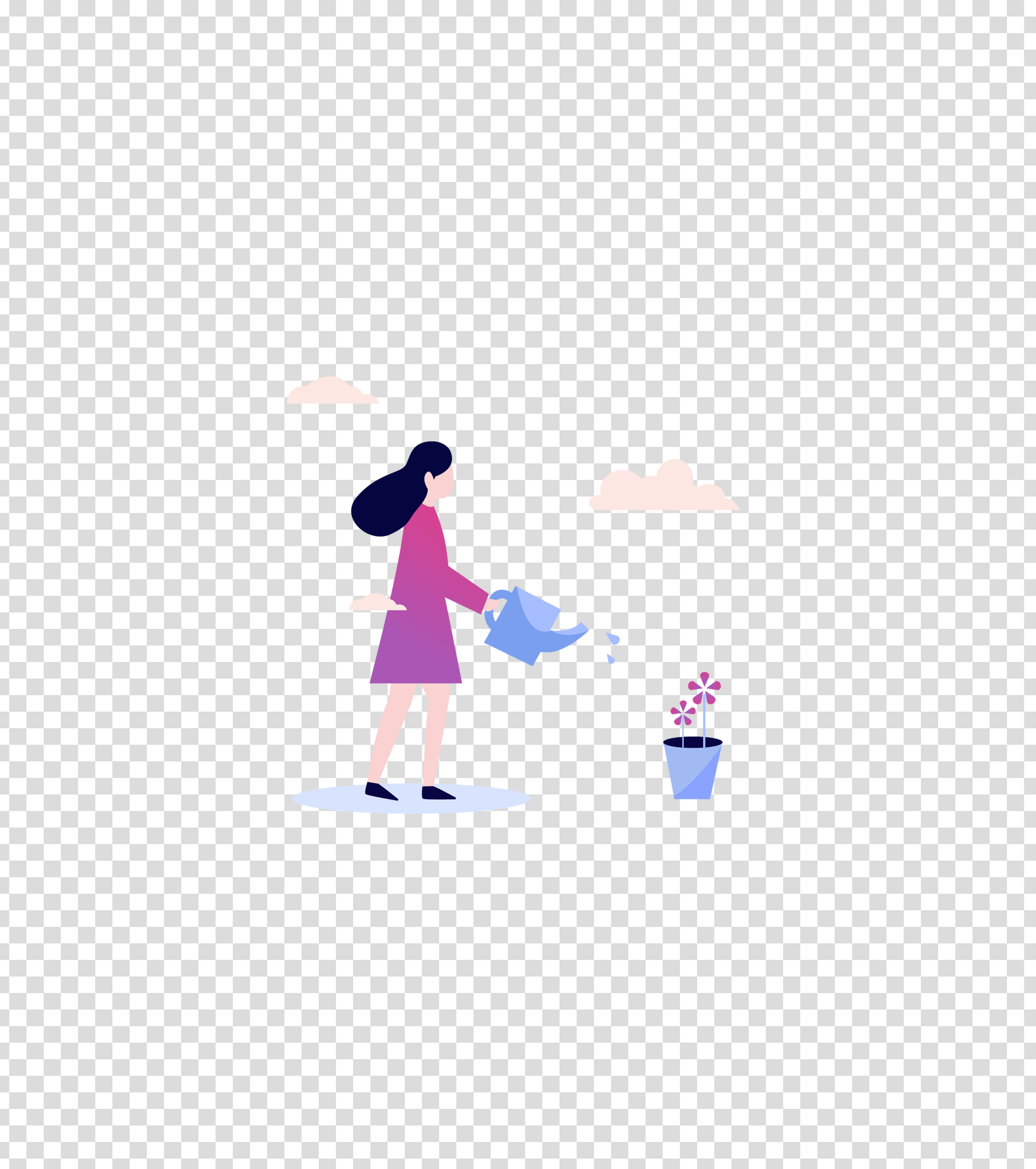 粉色浇花的女孩插画