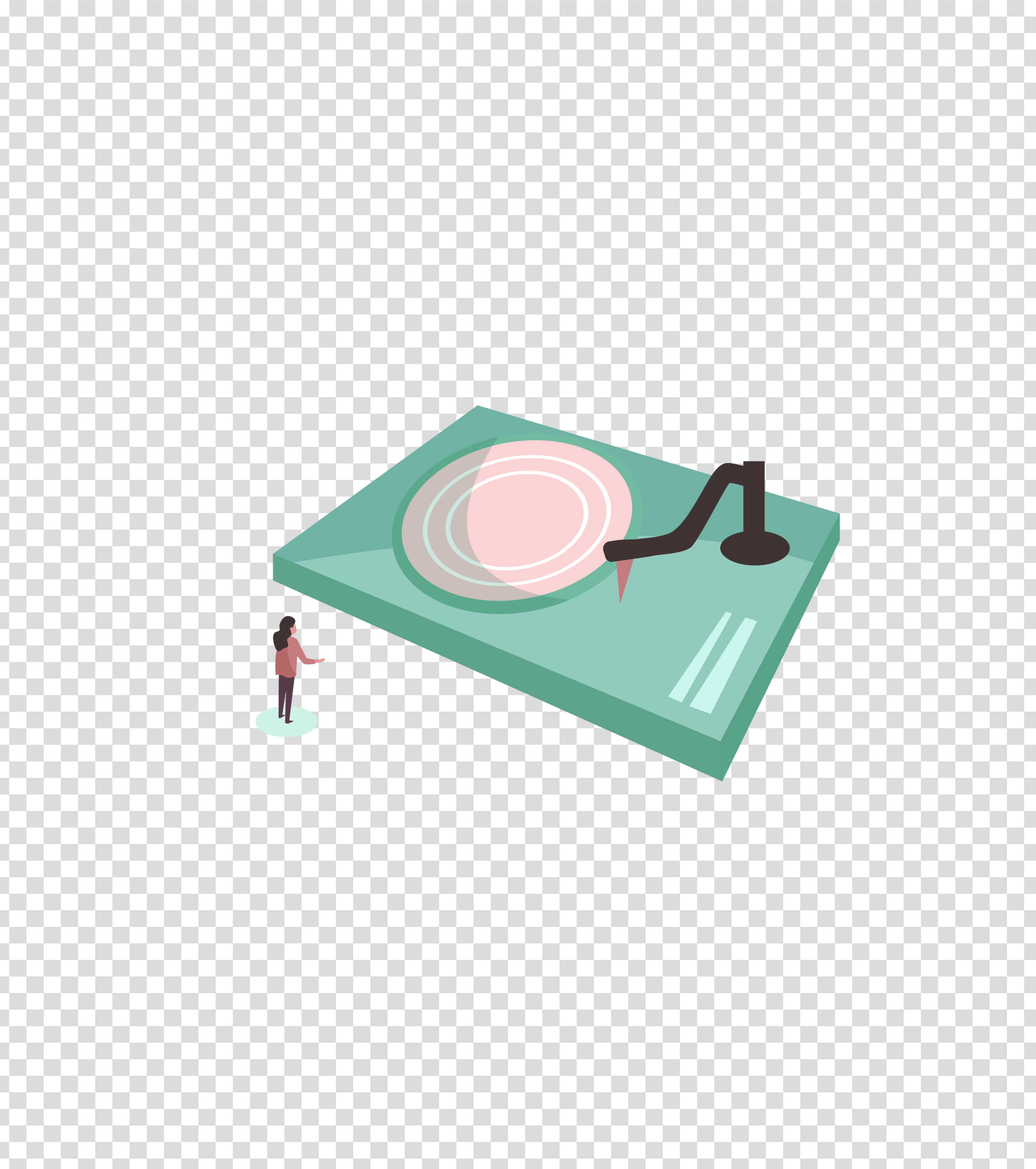 绿色小清新听唱片机的女人插画