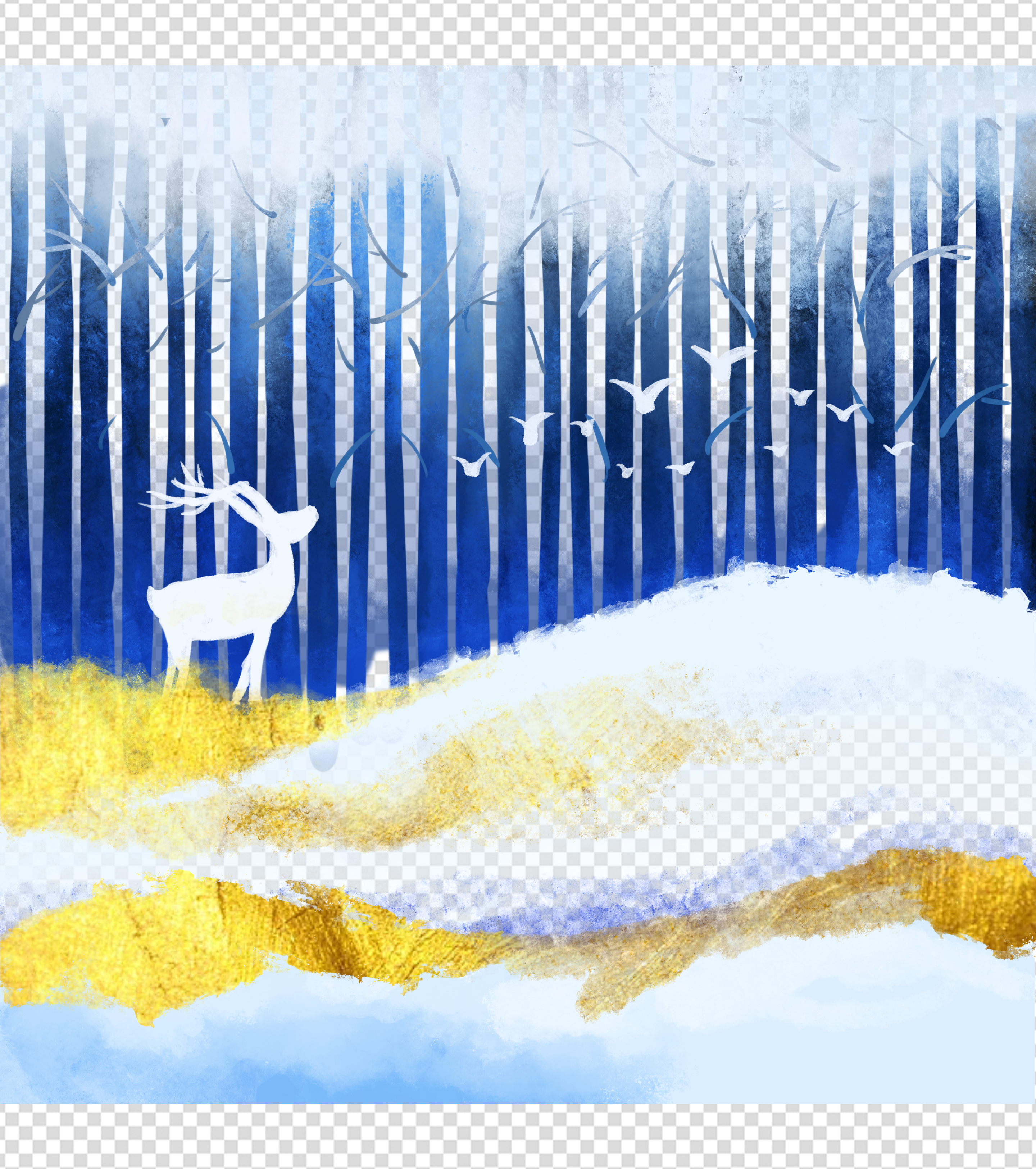 唯美雪景卡通手绘元素
