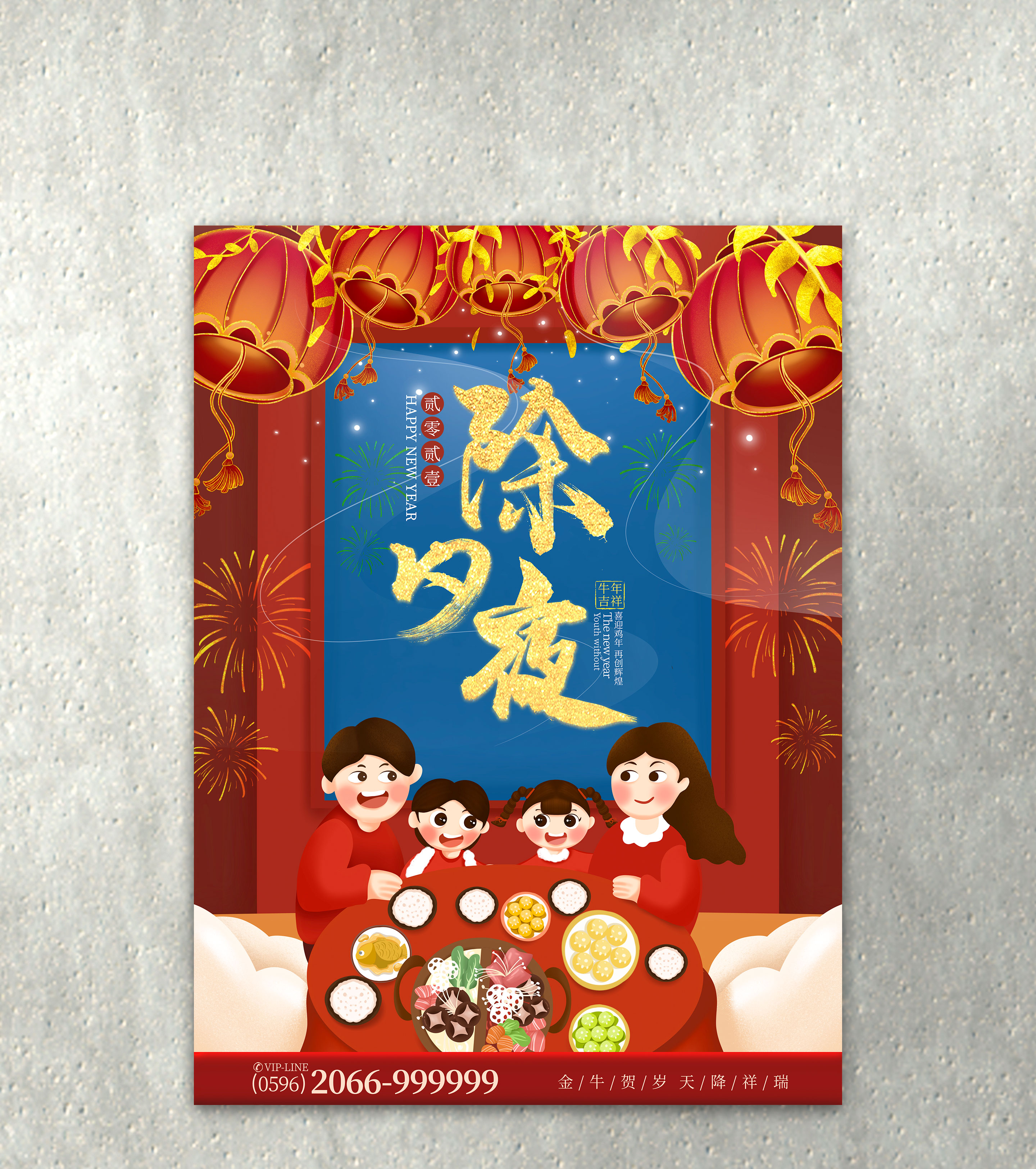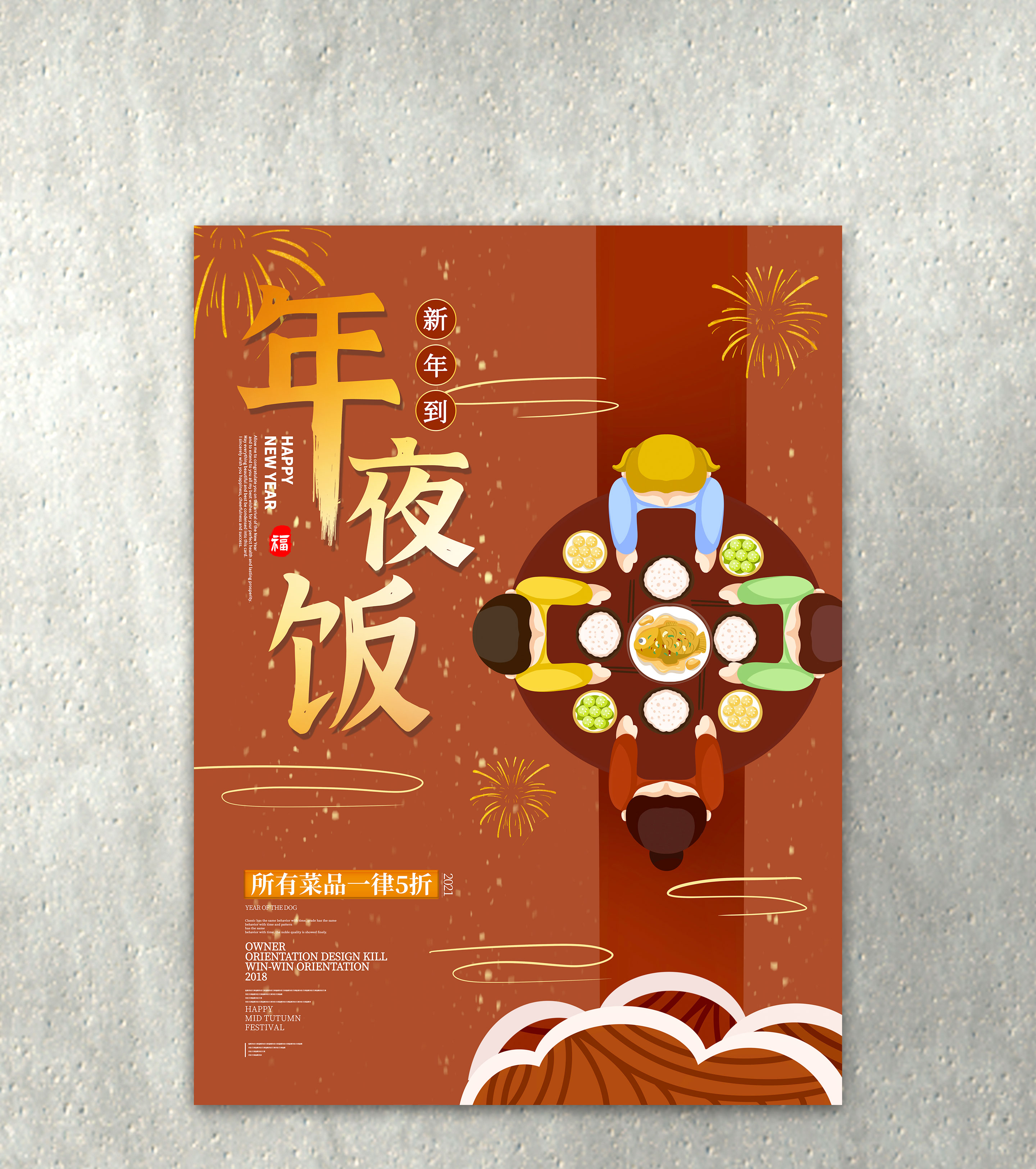 大红年夜饭亲子创意海报宣传广告