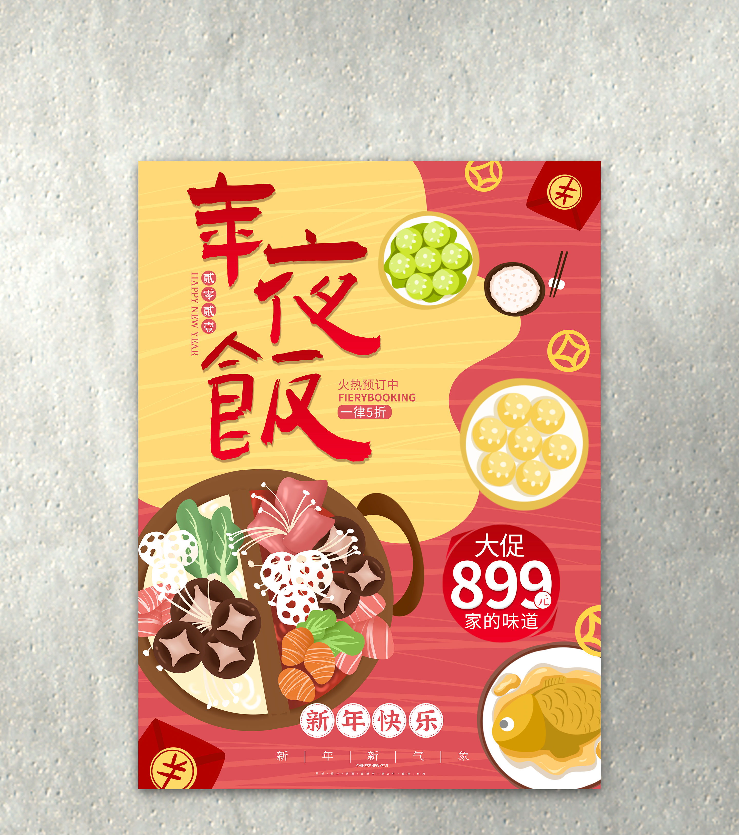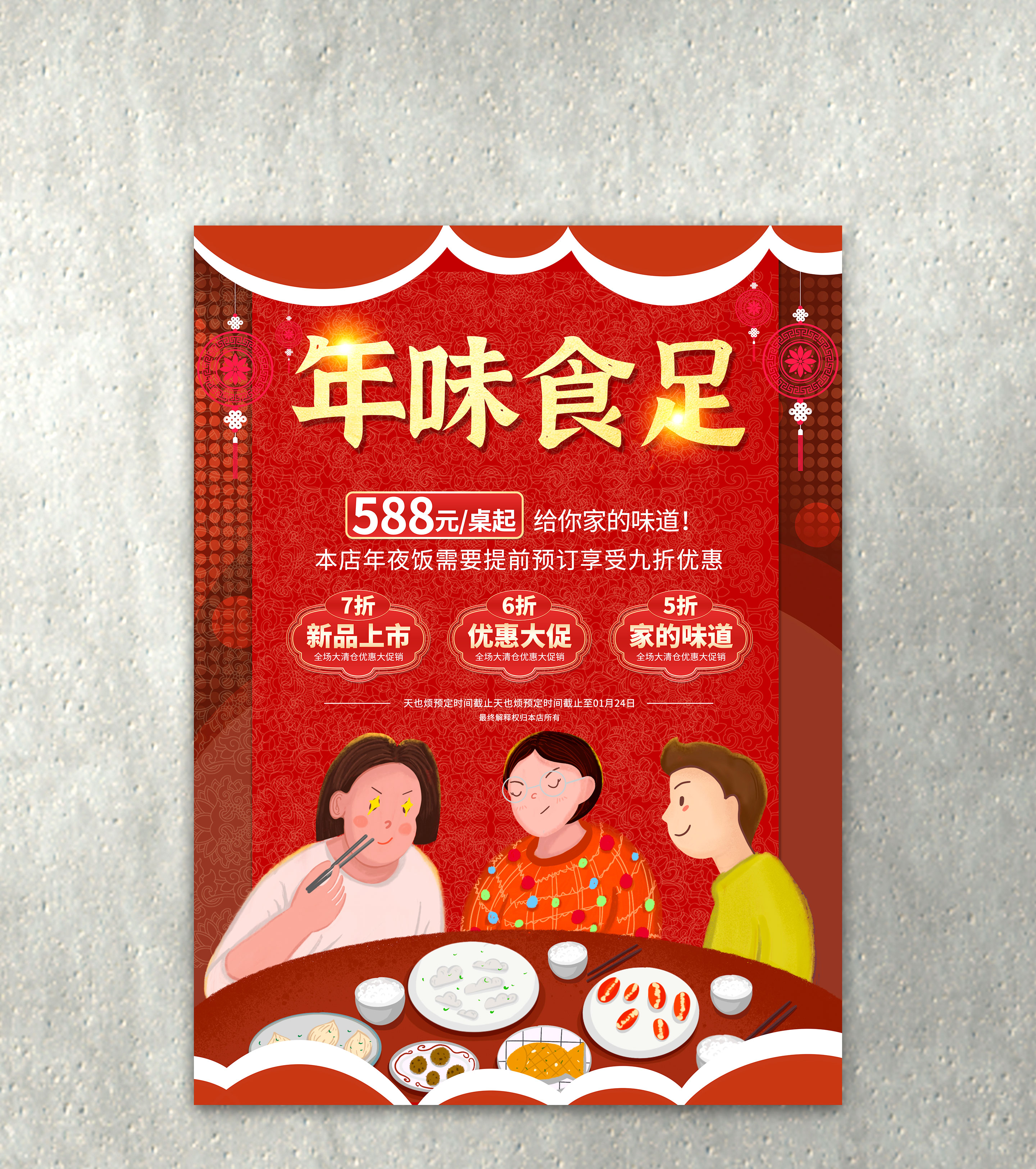 大红年夜饭创意海报宣传广告