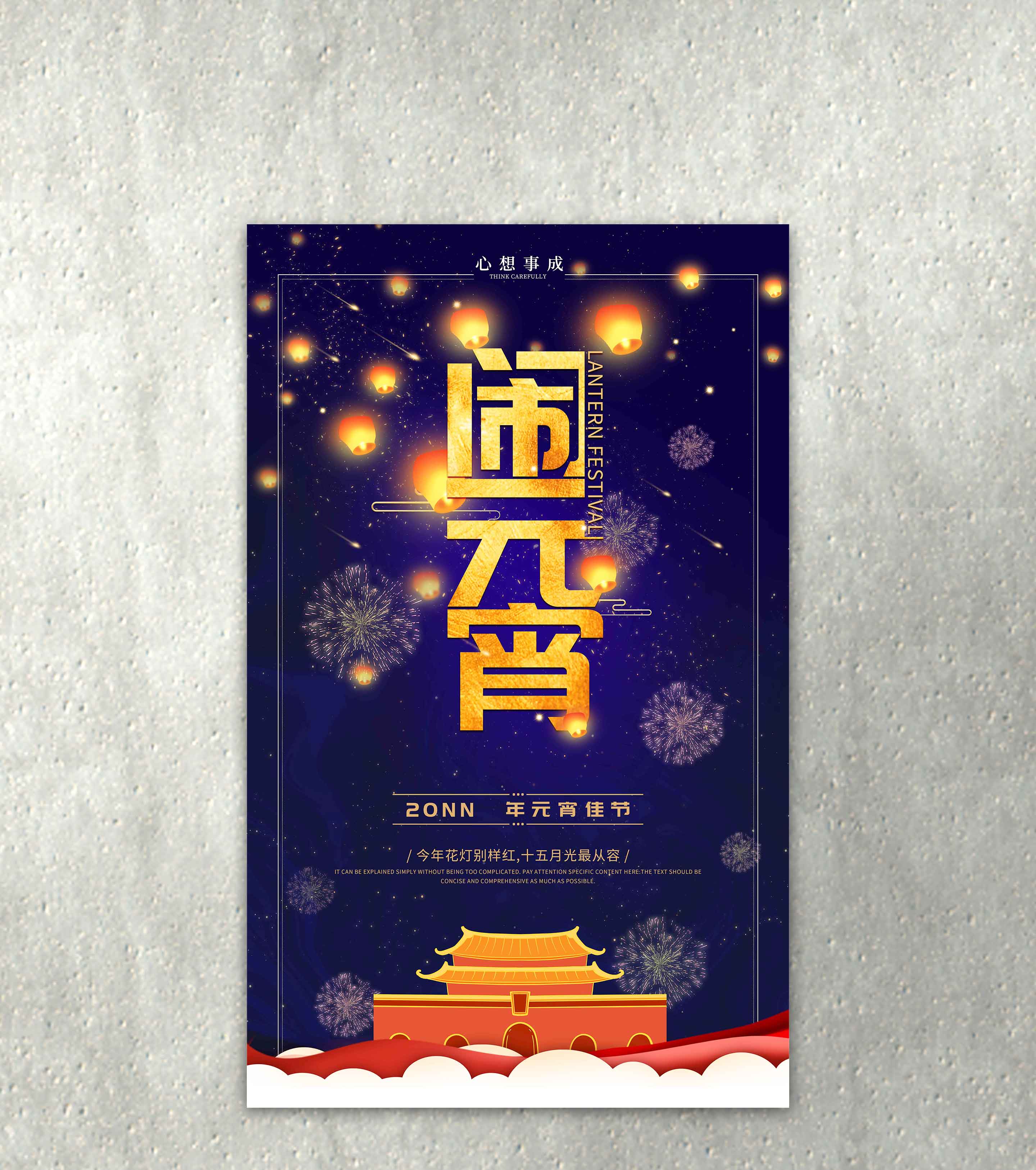 夜空元宵节祈福节日海报
