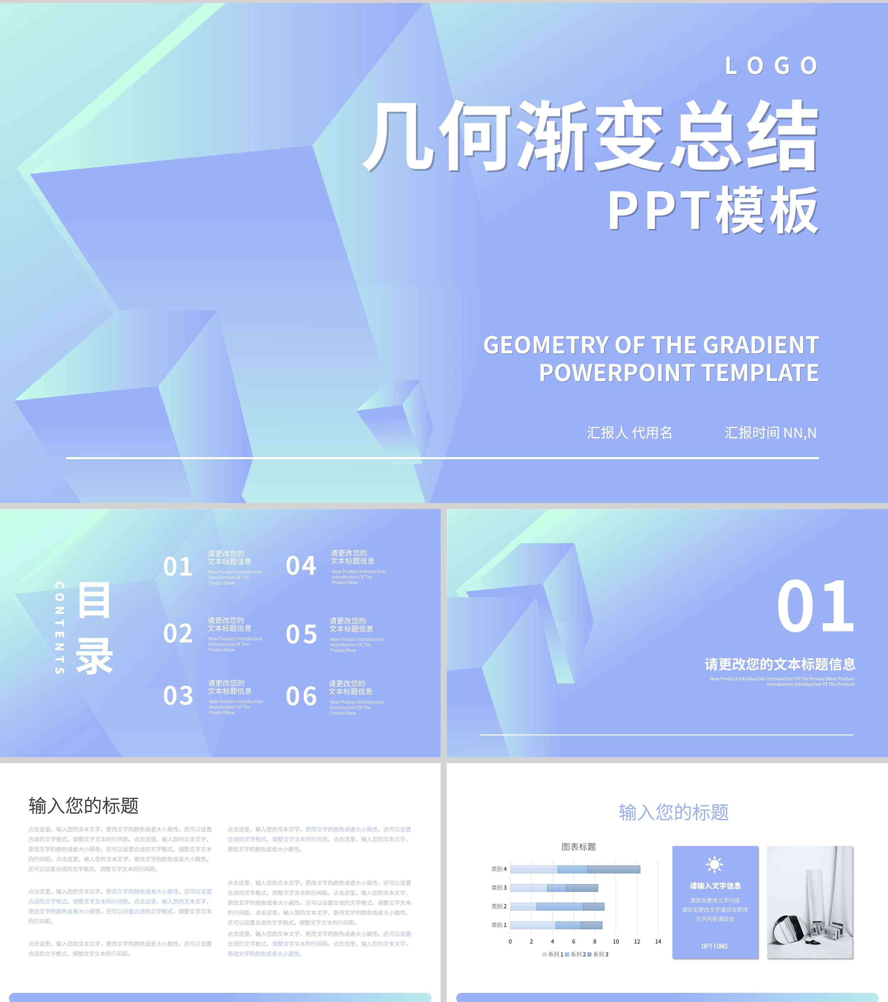 蓝色小清新总结汇报PPT模板