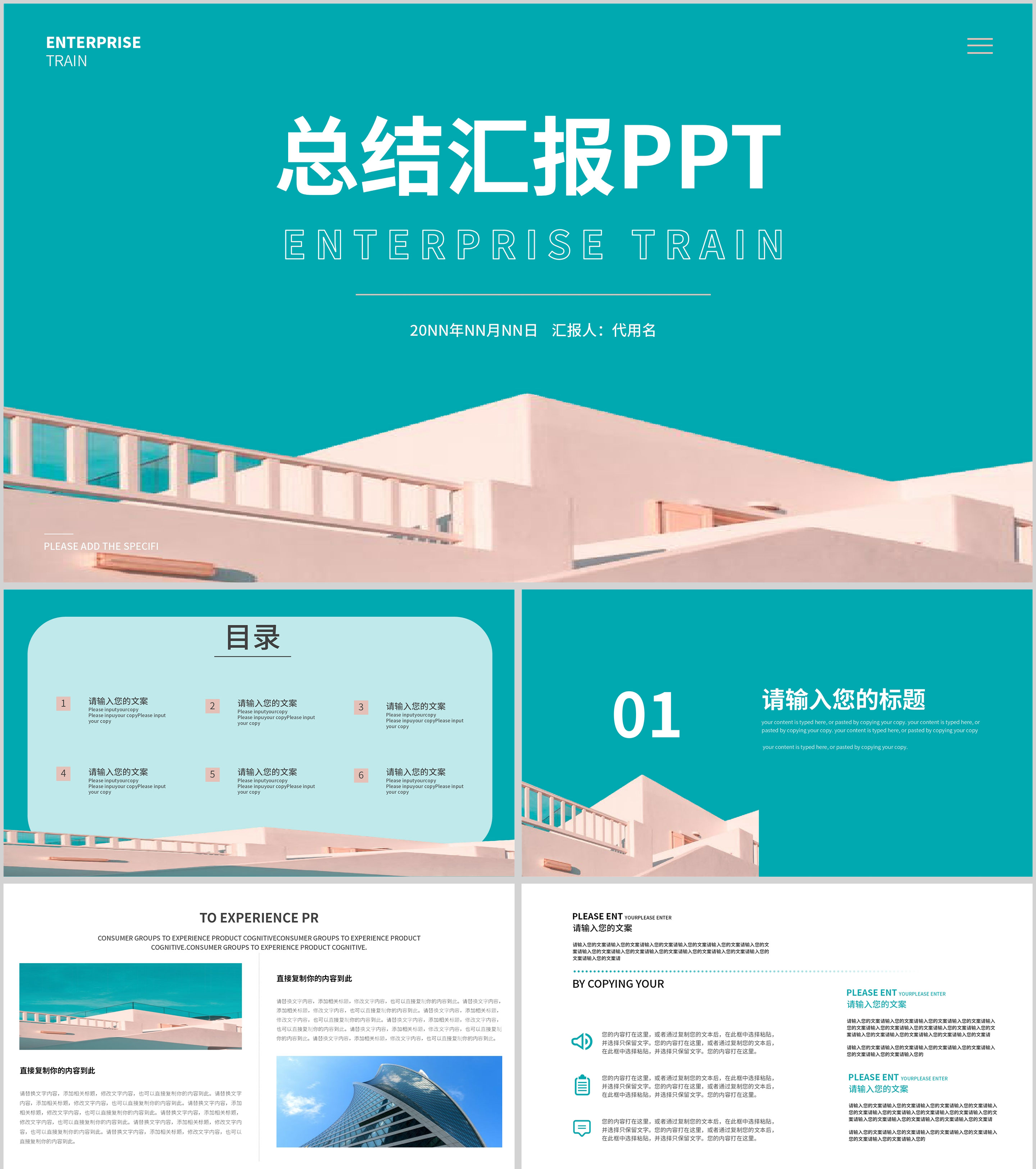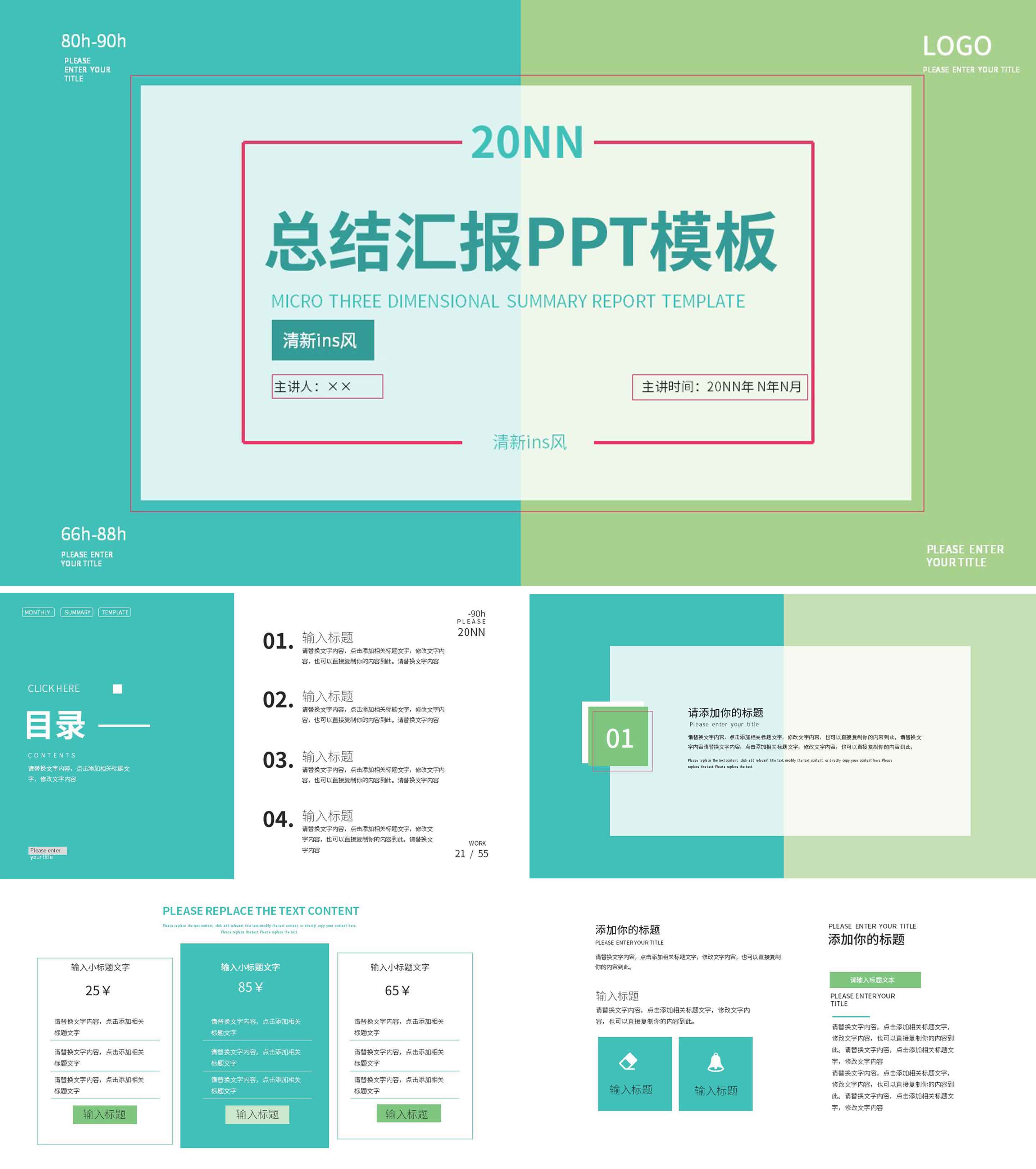 蓝色水彩风ins火烈鸟时尚PPT模板