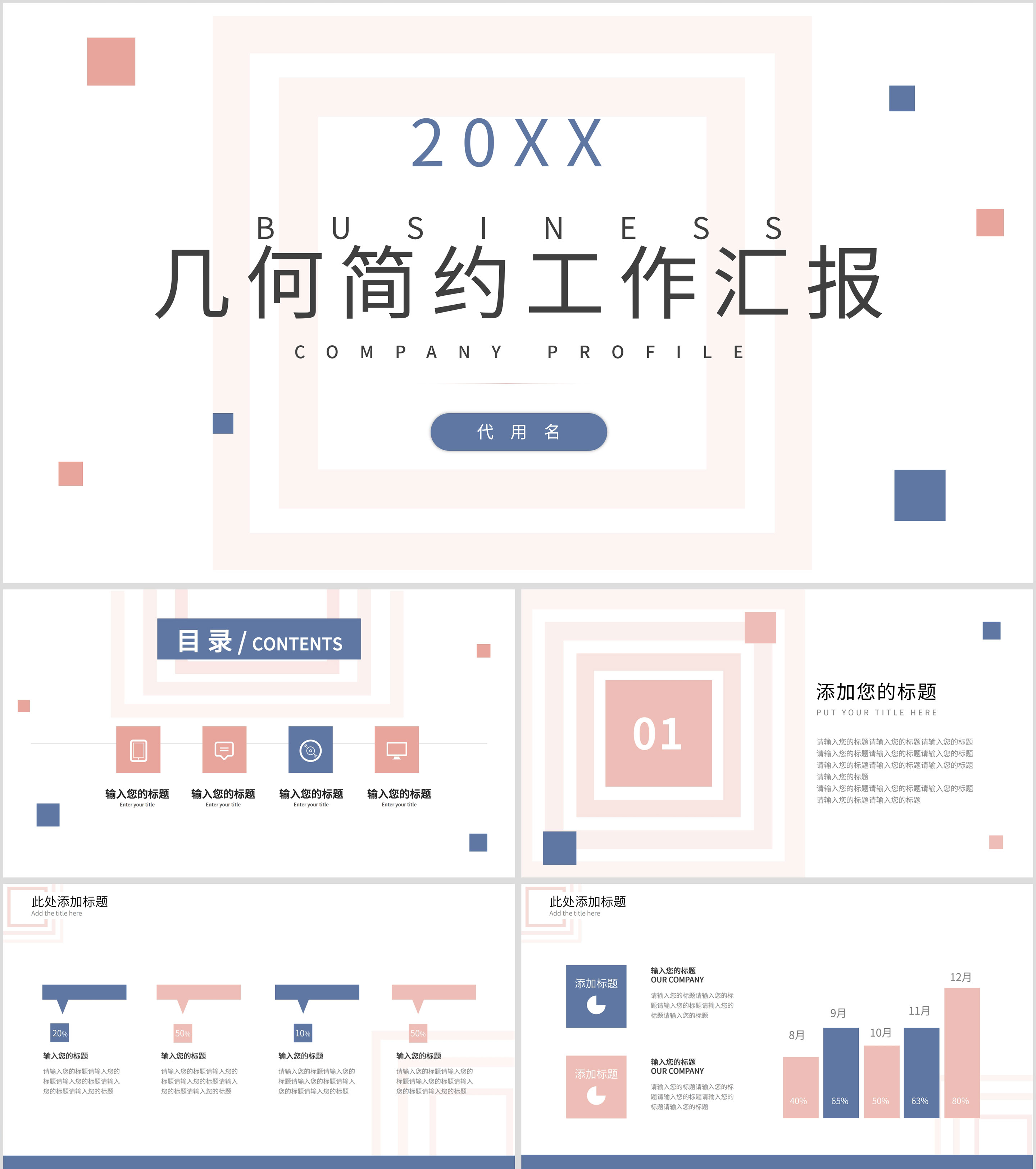 蓝黄拼色孟菲斯风总结汇报PPT模板