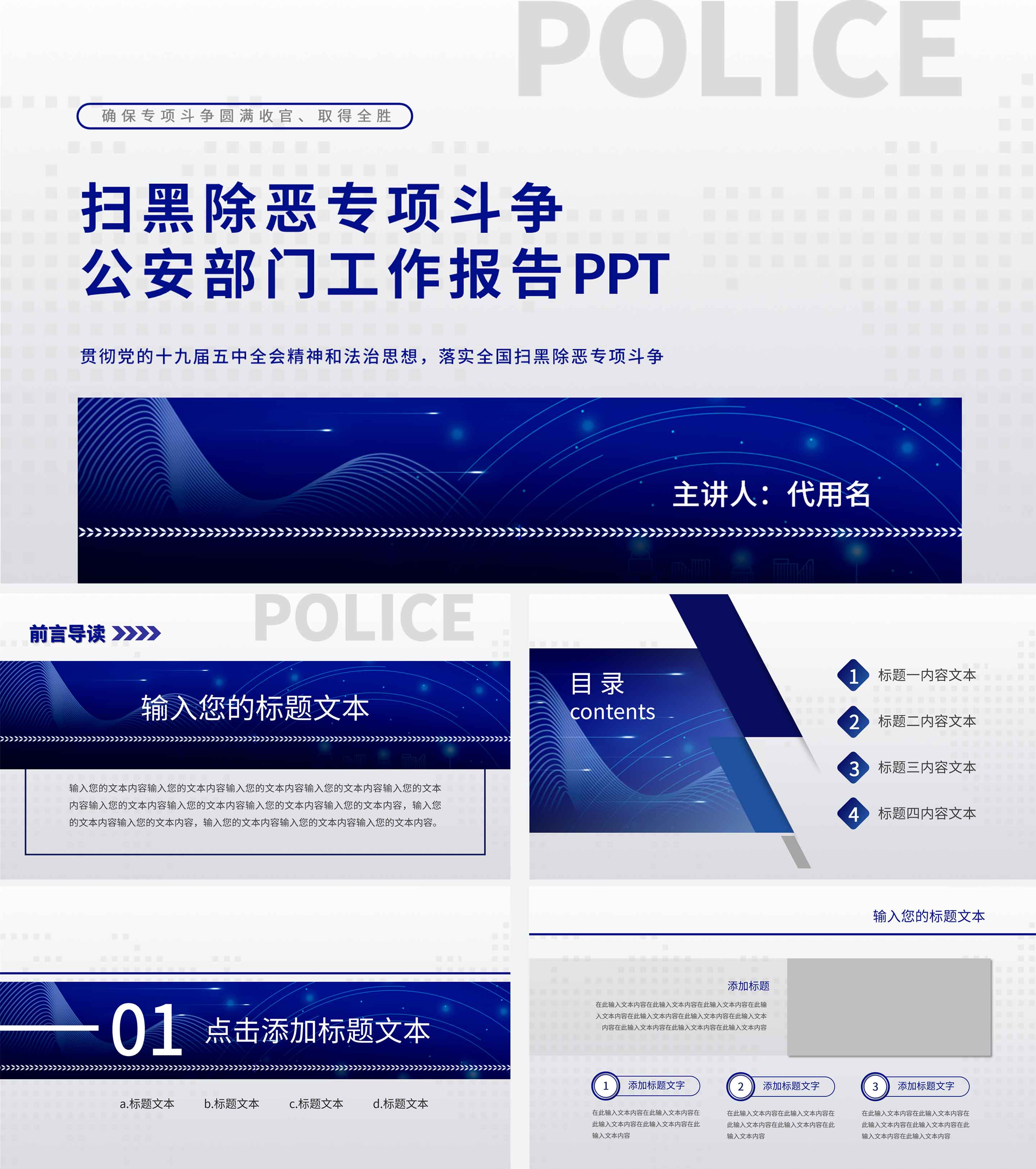 蓝色简约商务风公安部门工作报告PPT模板