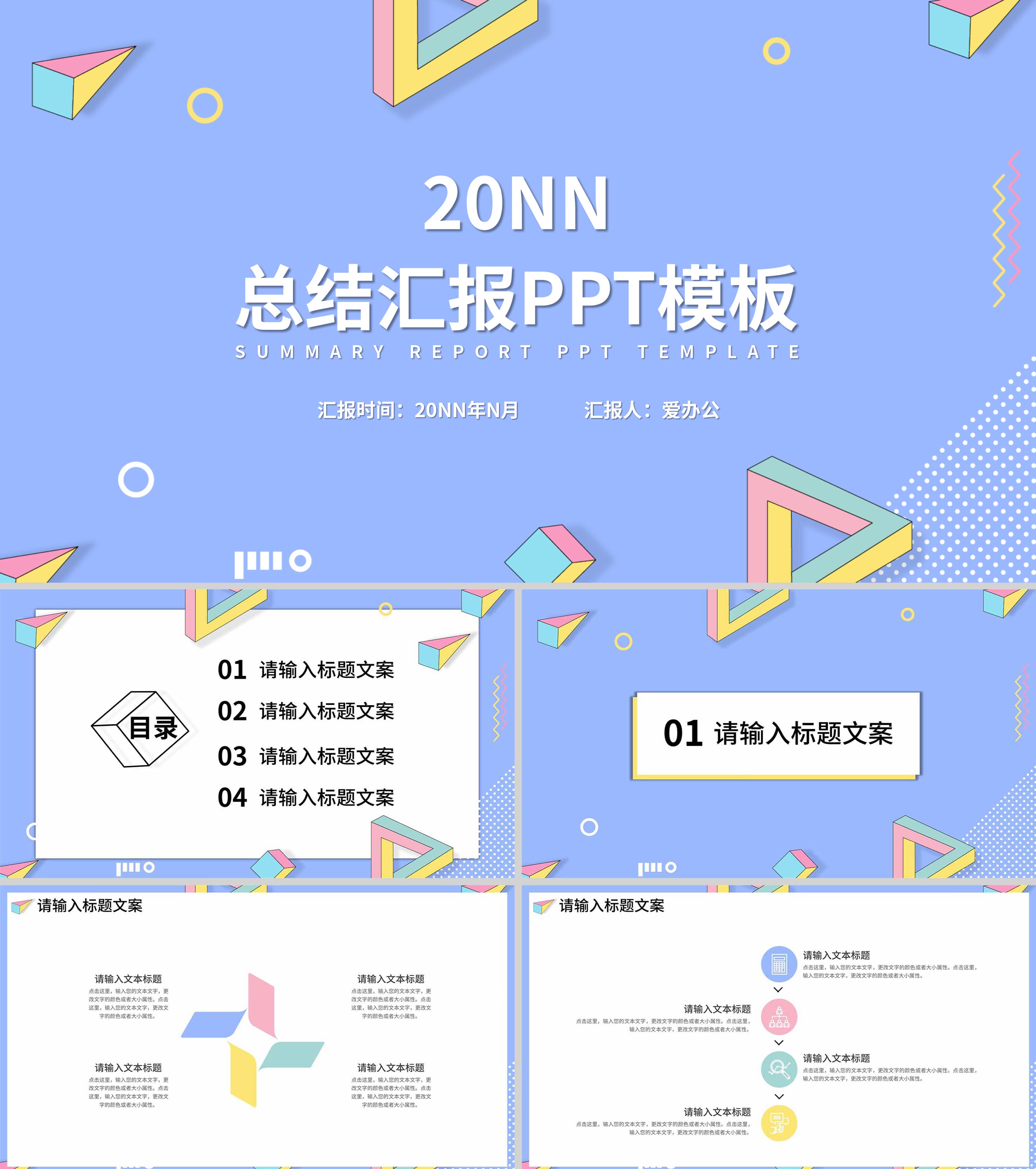 蓝色孟菲斯风总结汇报PPT模板