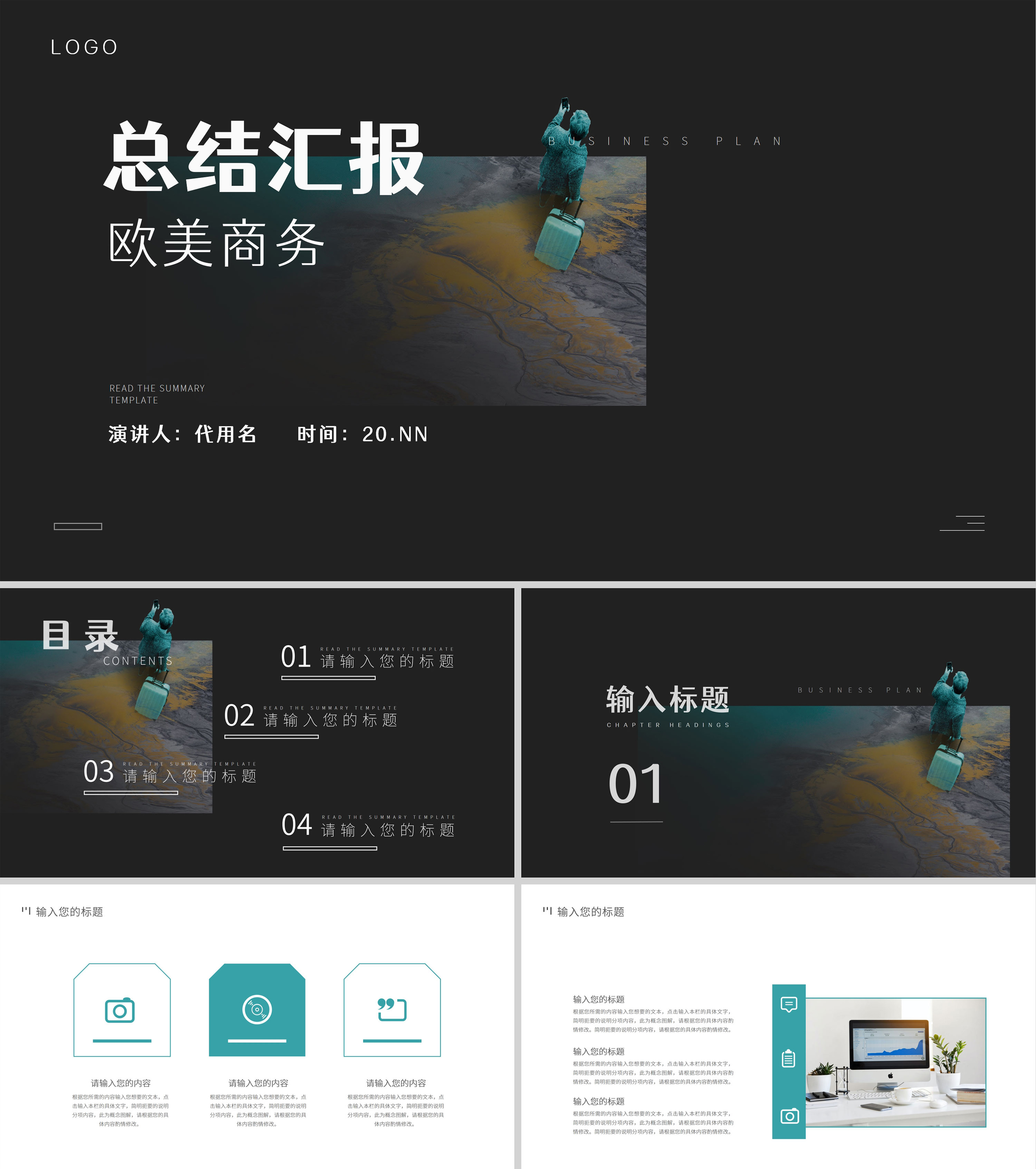 黑色商务风工作总结汇报PPT模板