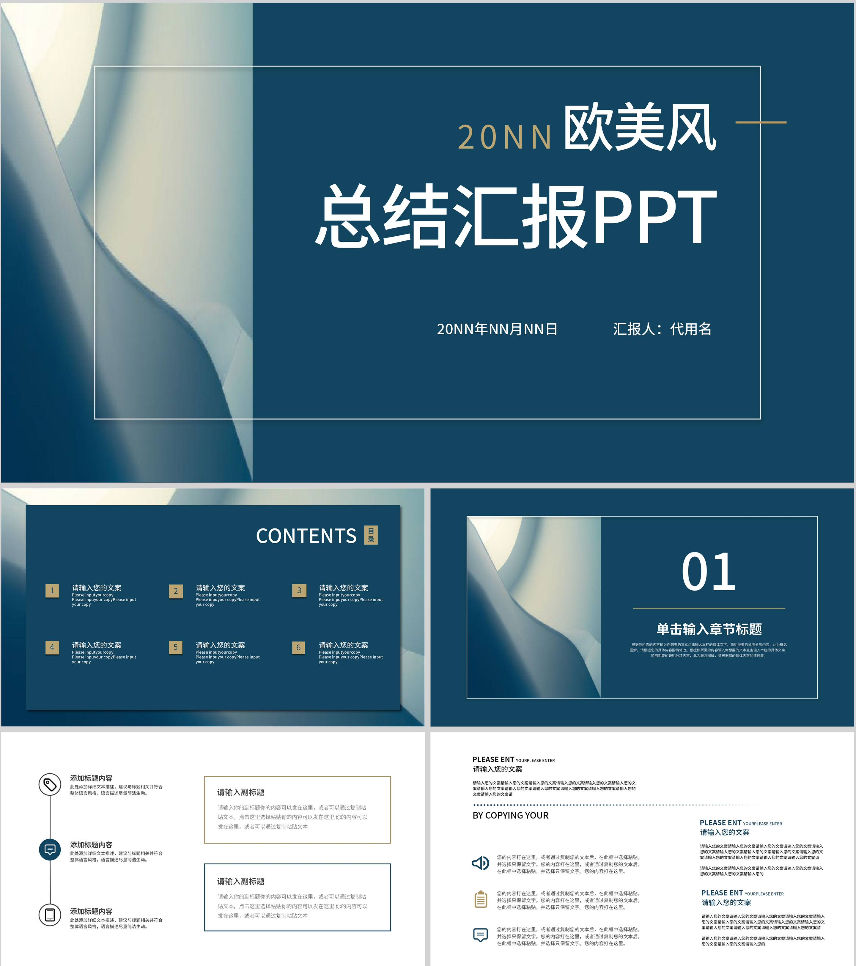 蓝灰色简约风总结汇报PPT模板