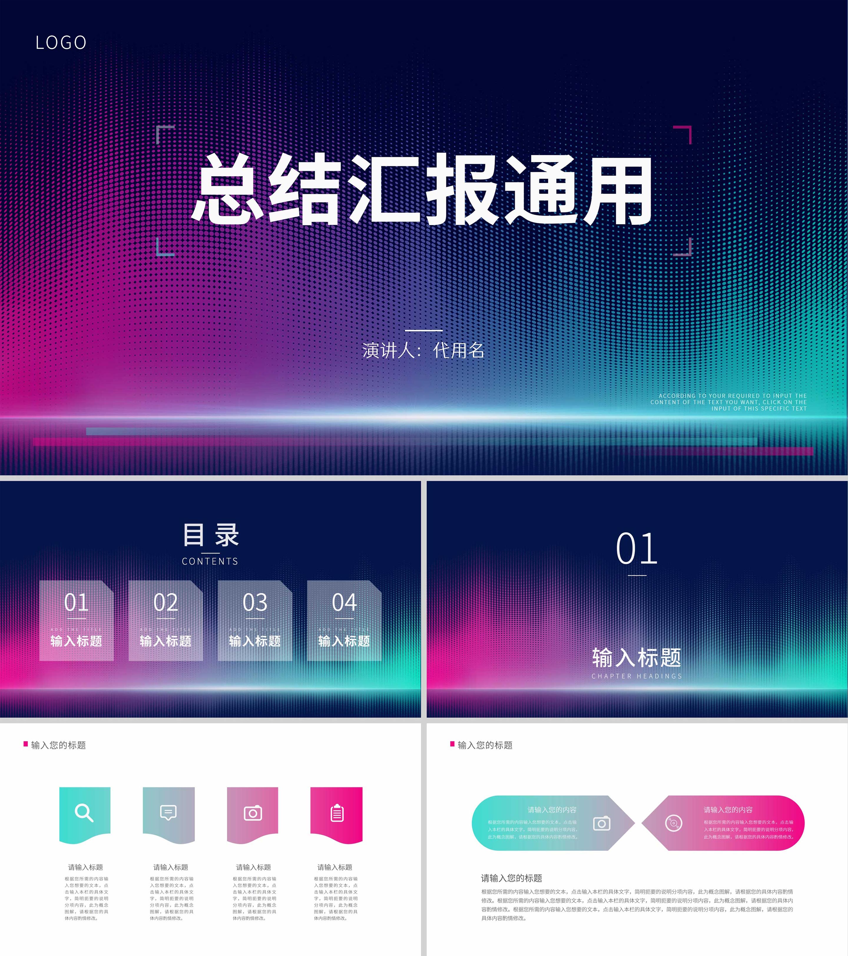 蓝色霓虹渐变简约风总结汇报通用PPT模板