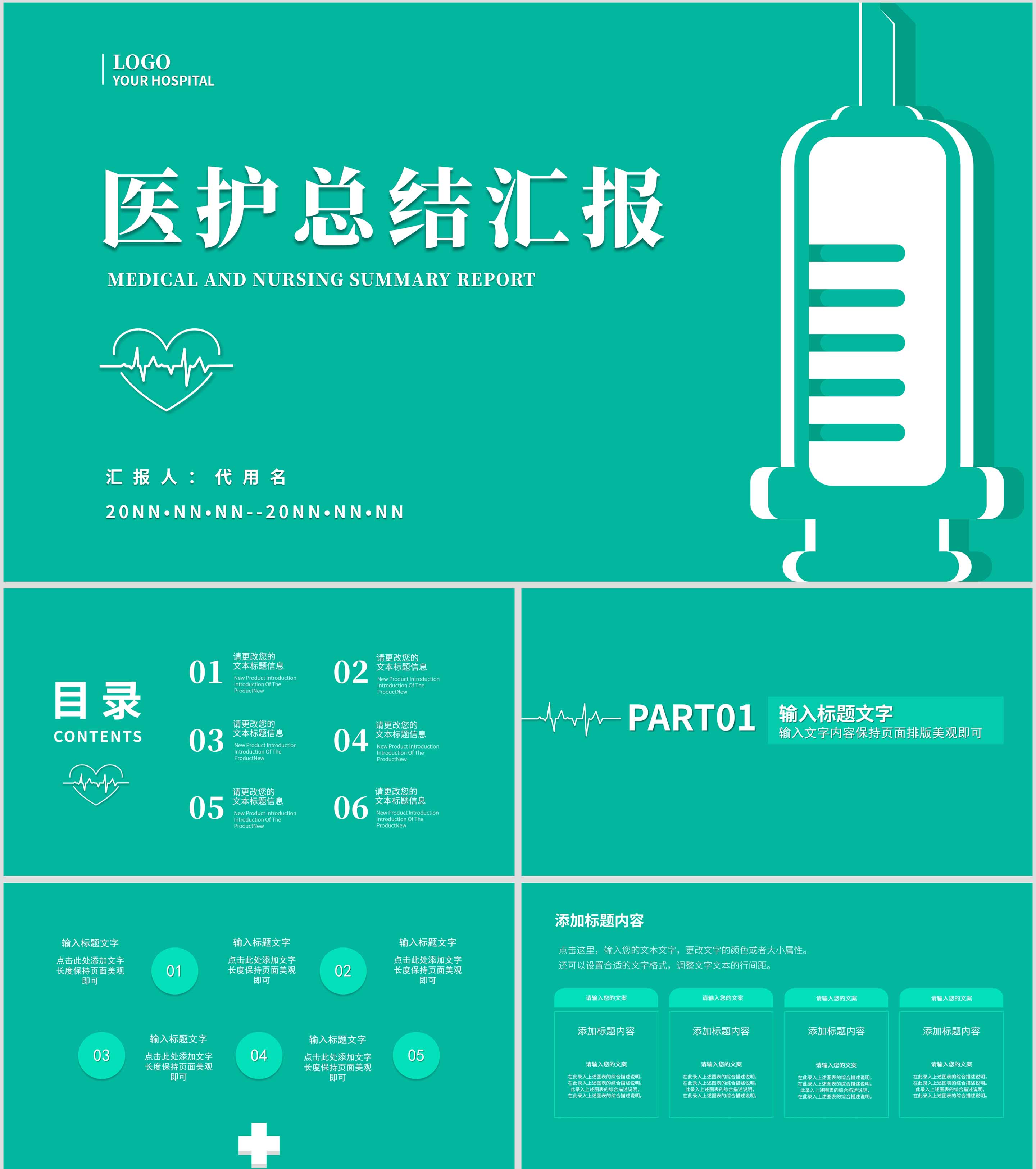 绿色简约风医护总结汇报PPT模板