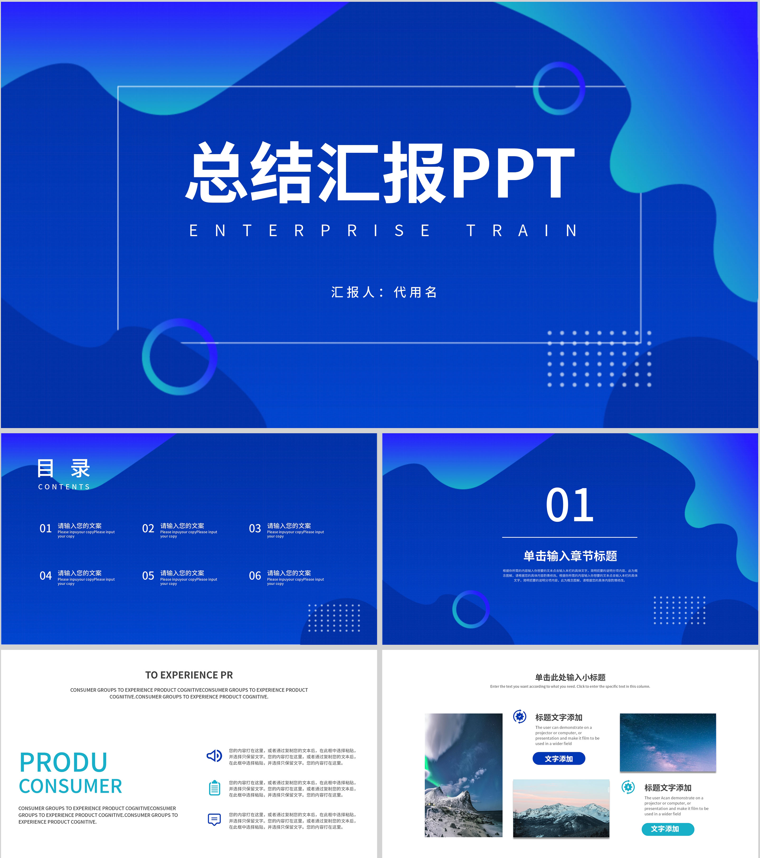 蓝色商务风总结汇报PPT模板