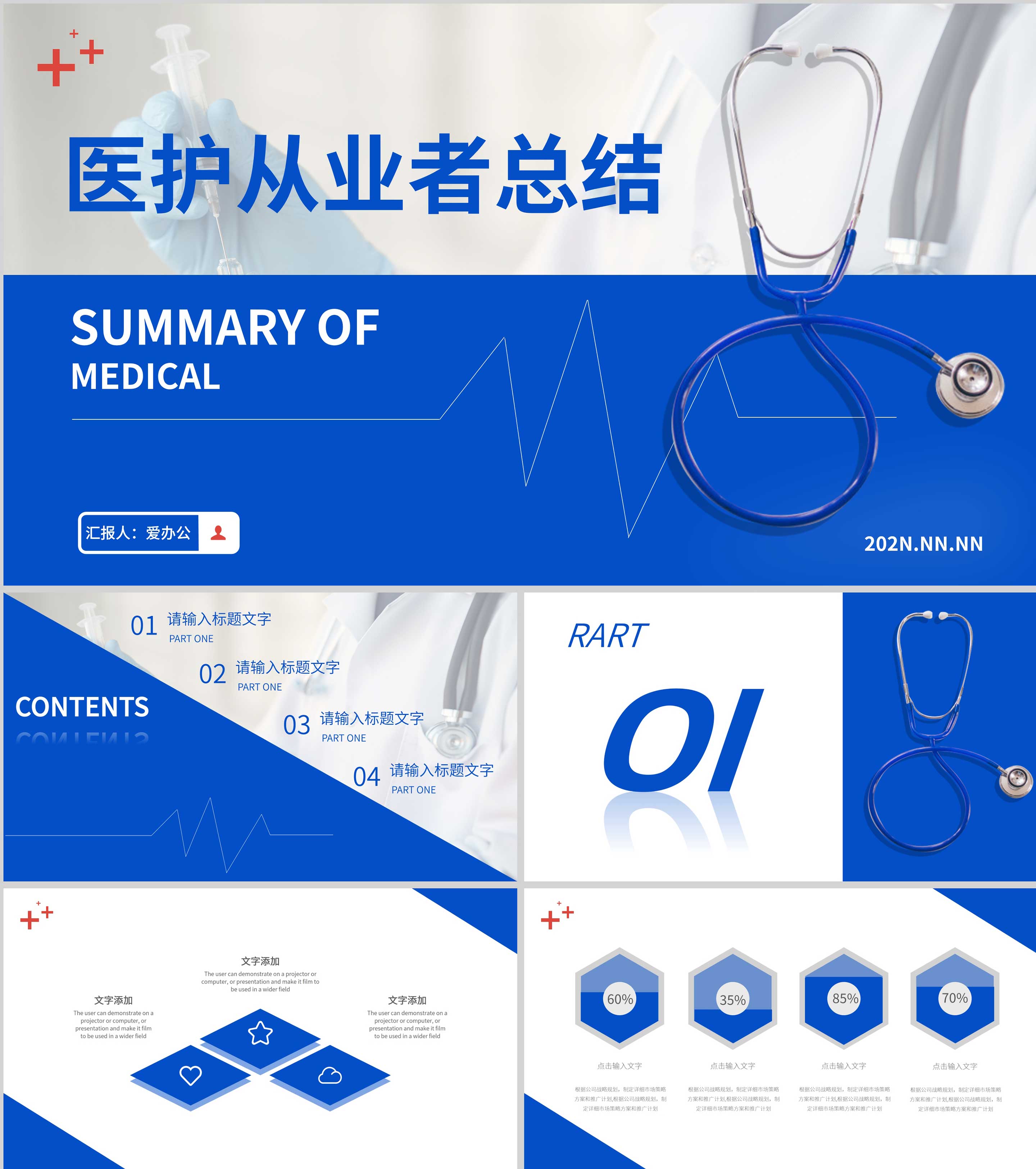 蓝色简约风医护从业者总结汇报PPT模板