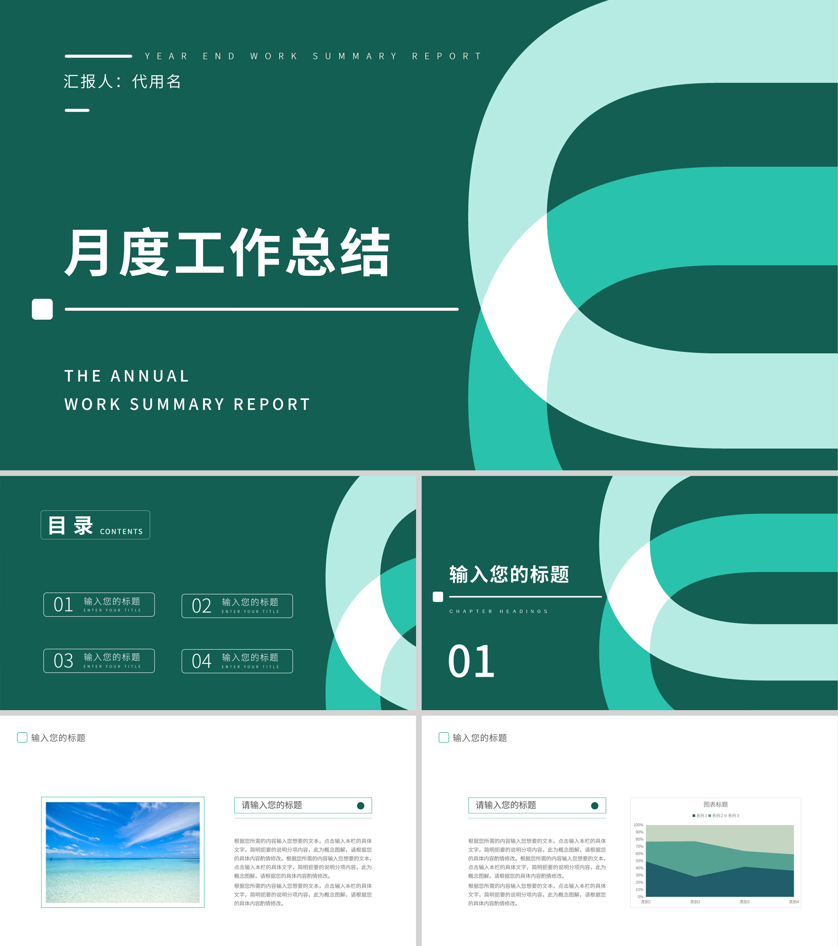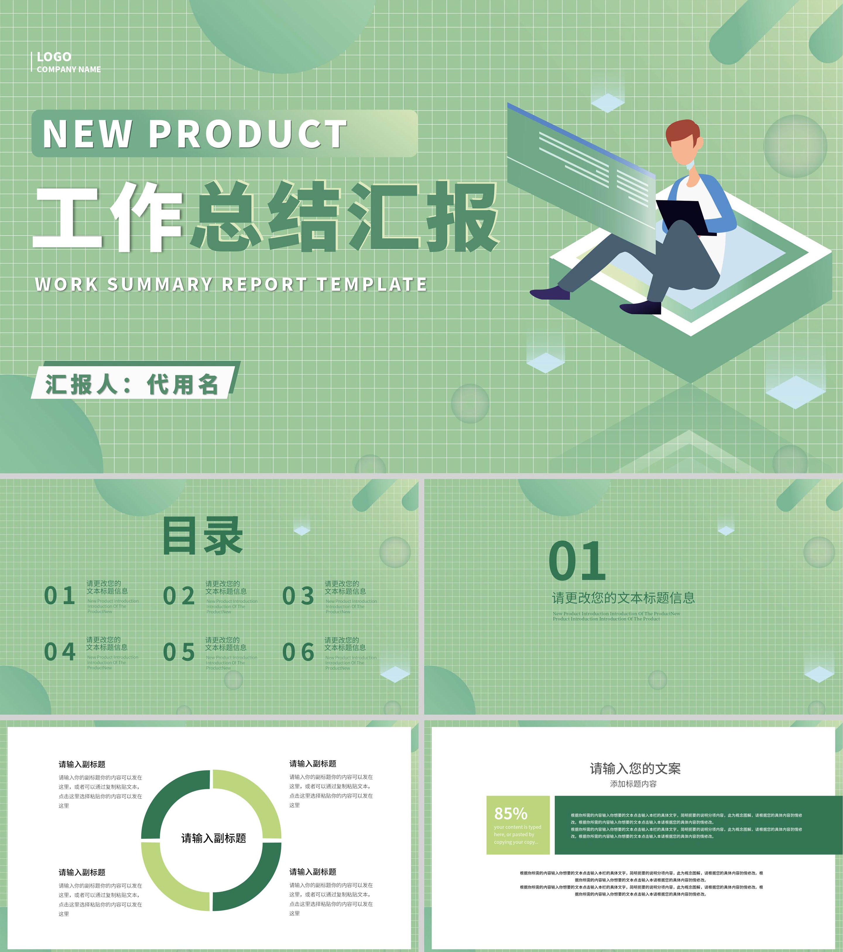 绿色简约风总结汇报PPT模板