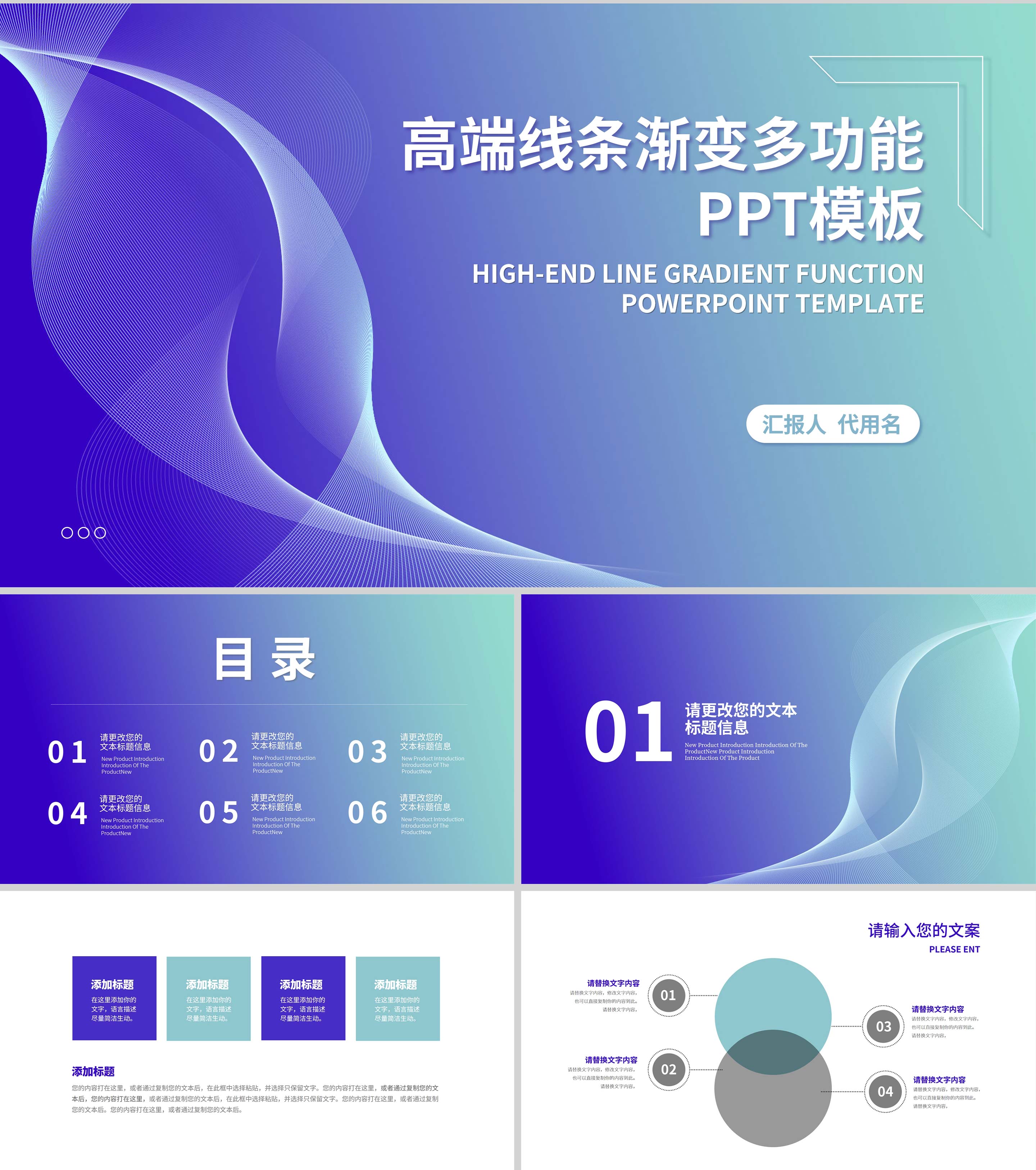 蓝色线条渐变风总结汇报PPT模板