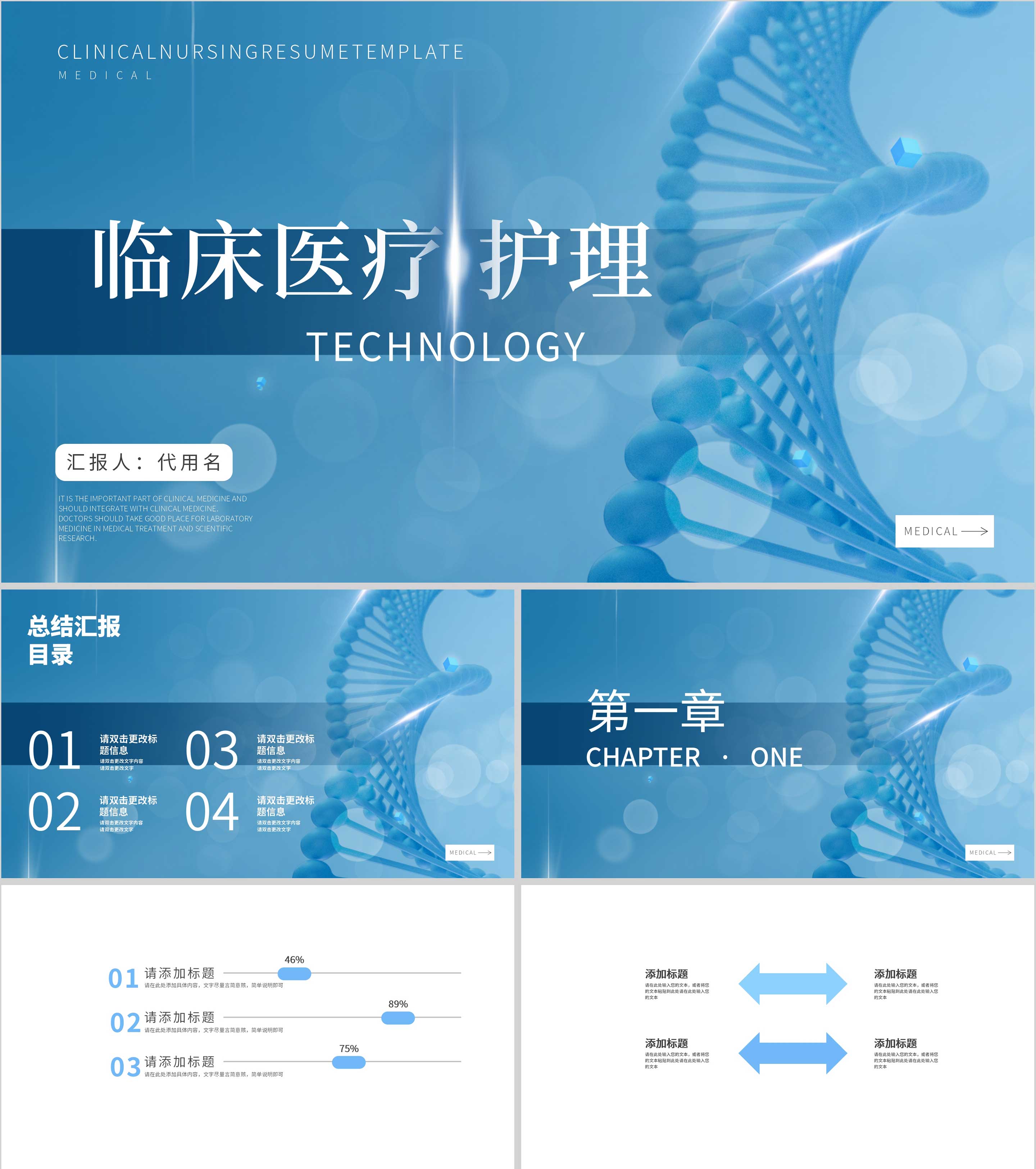 蓝色简约风临床医疗护理汇报PPT模板