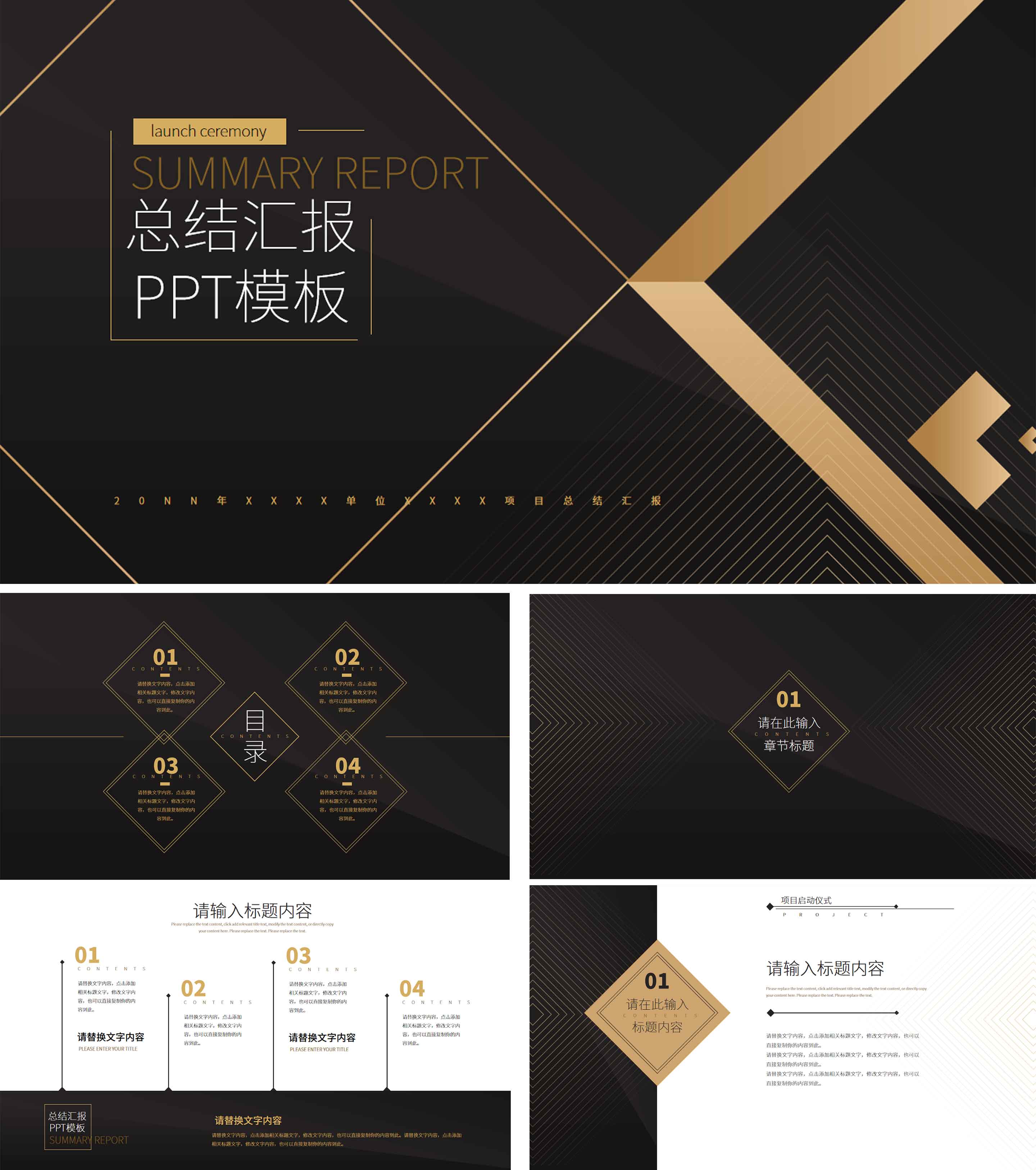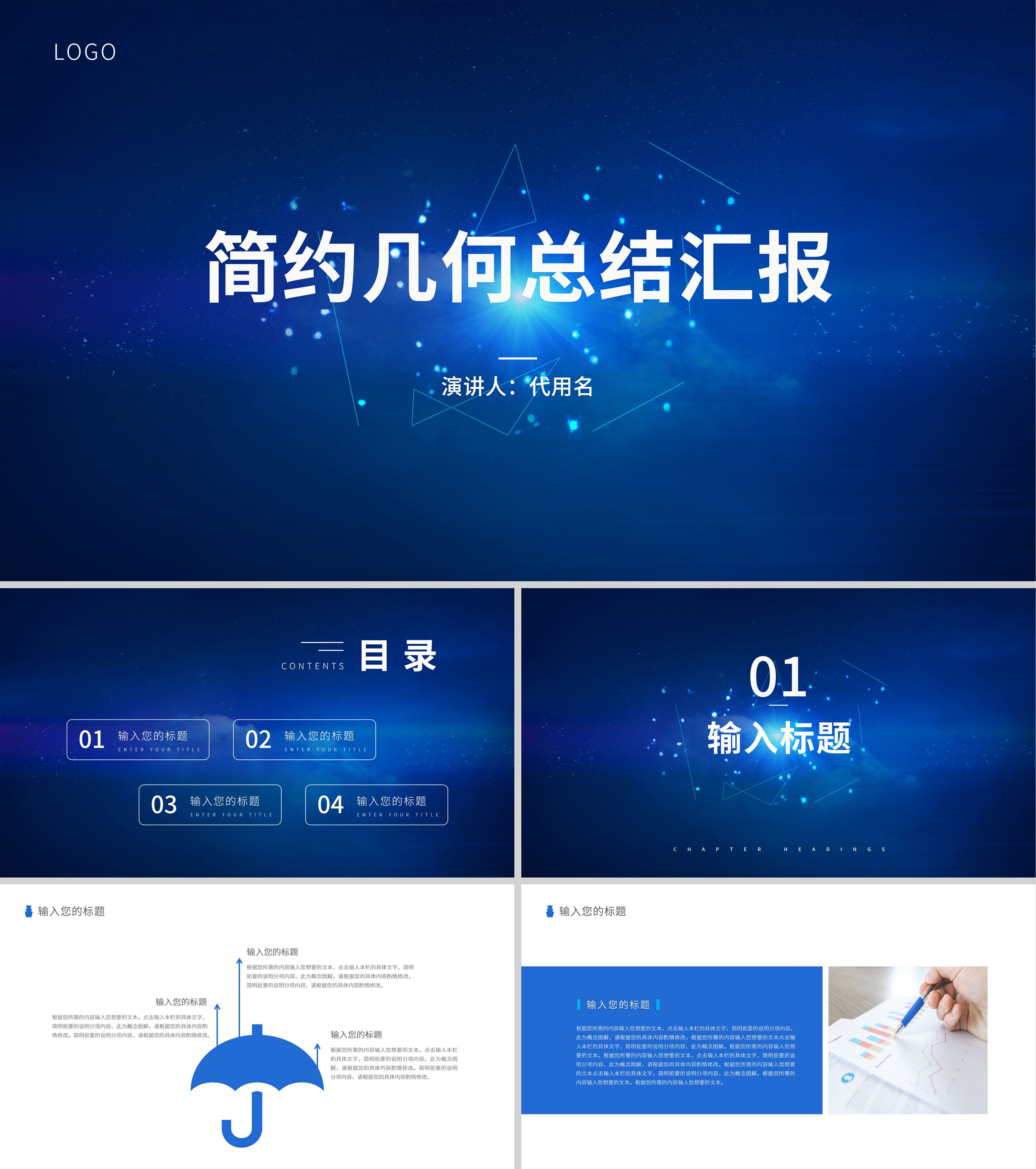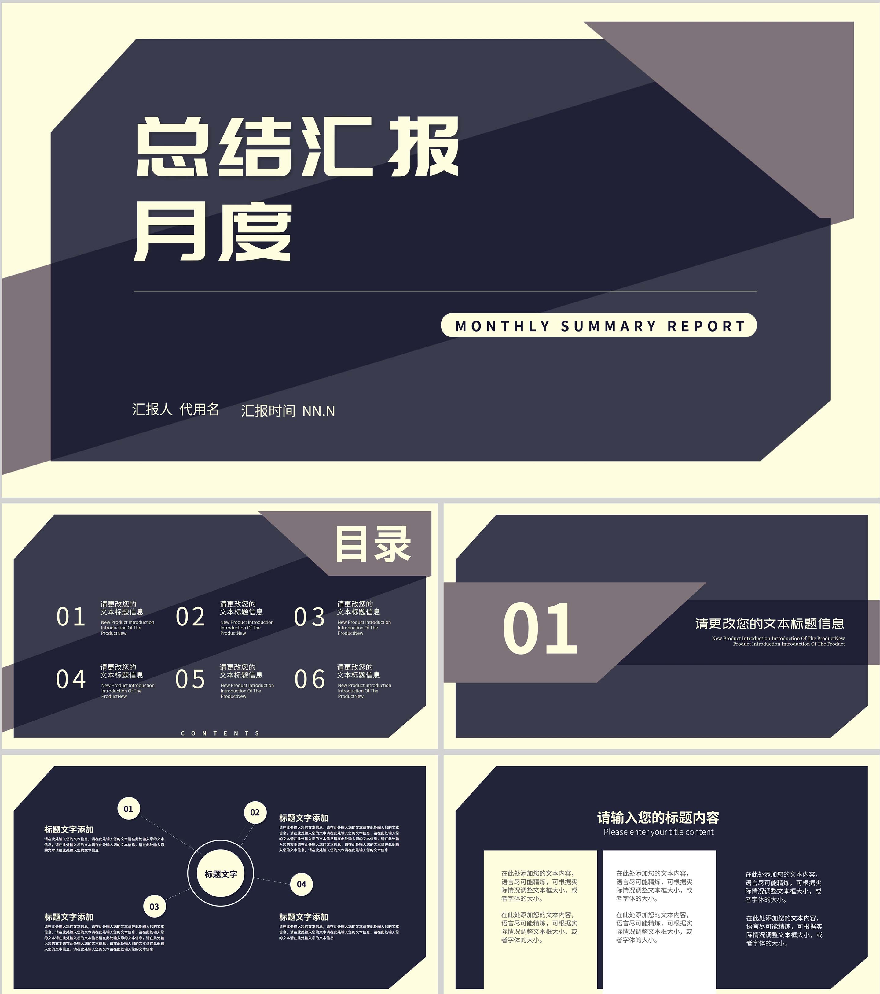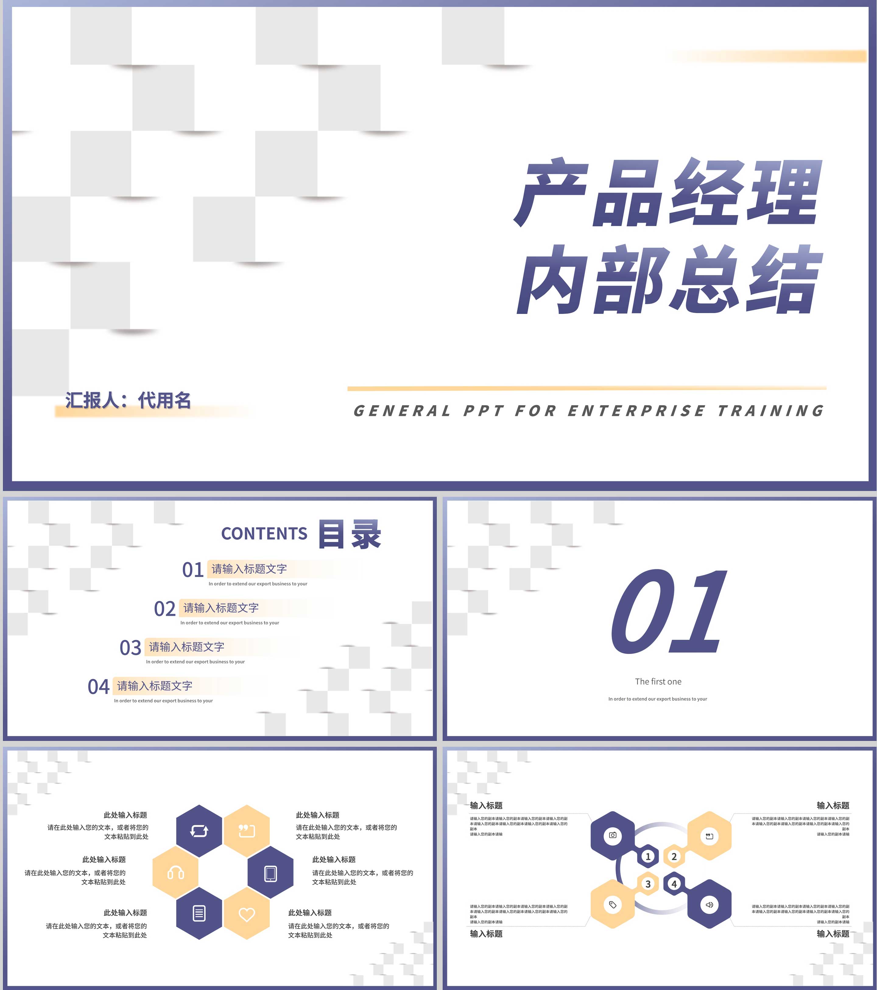 粉紫拼色简约风几何创意总结汇报PPT模板