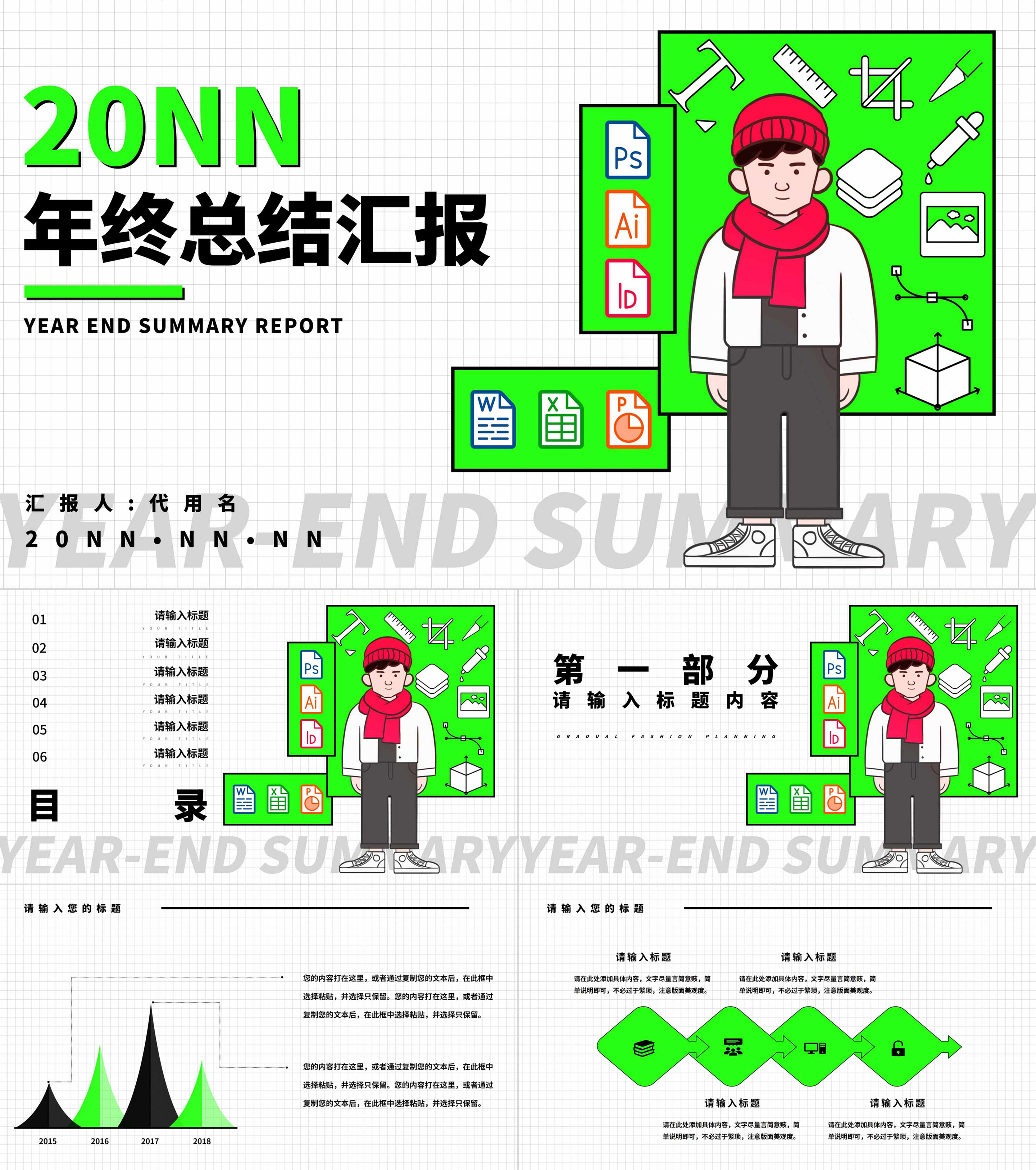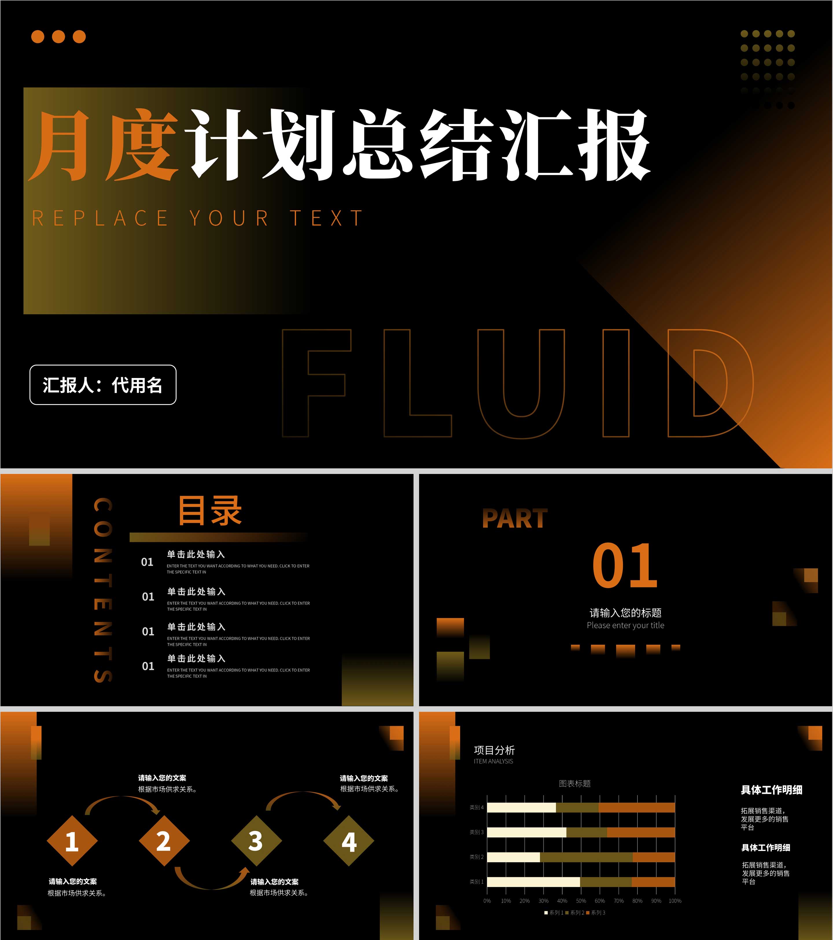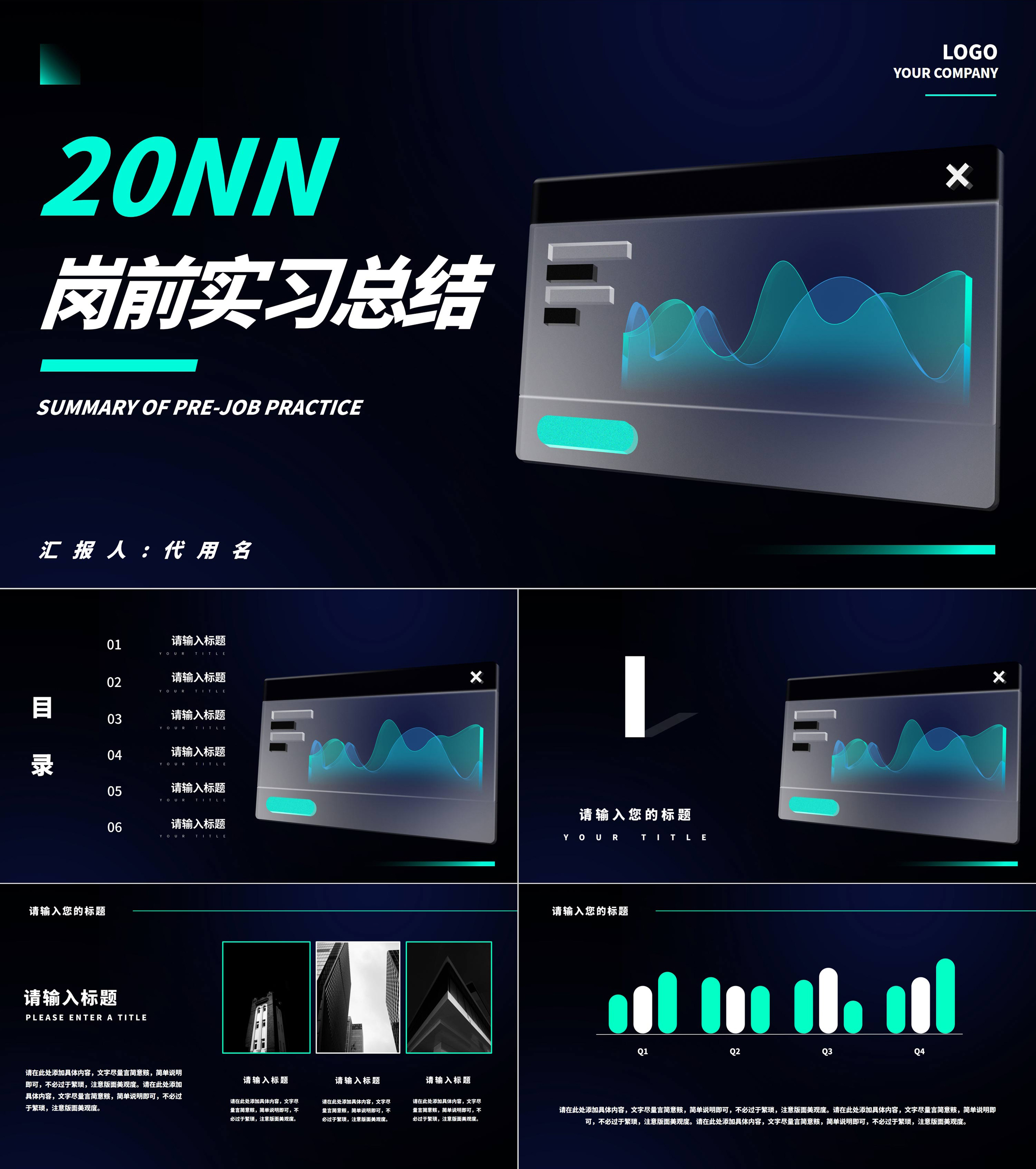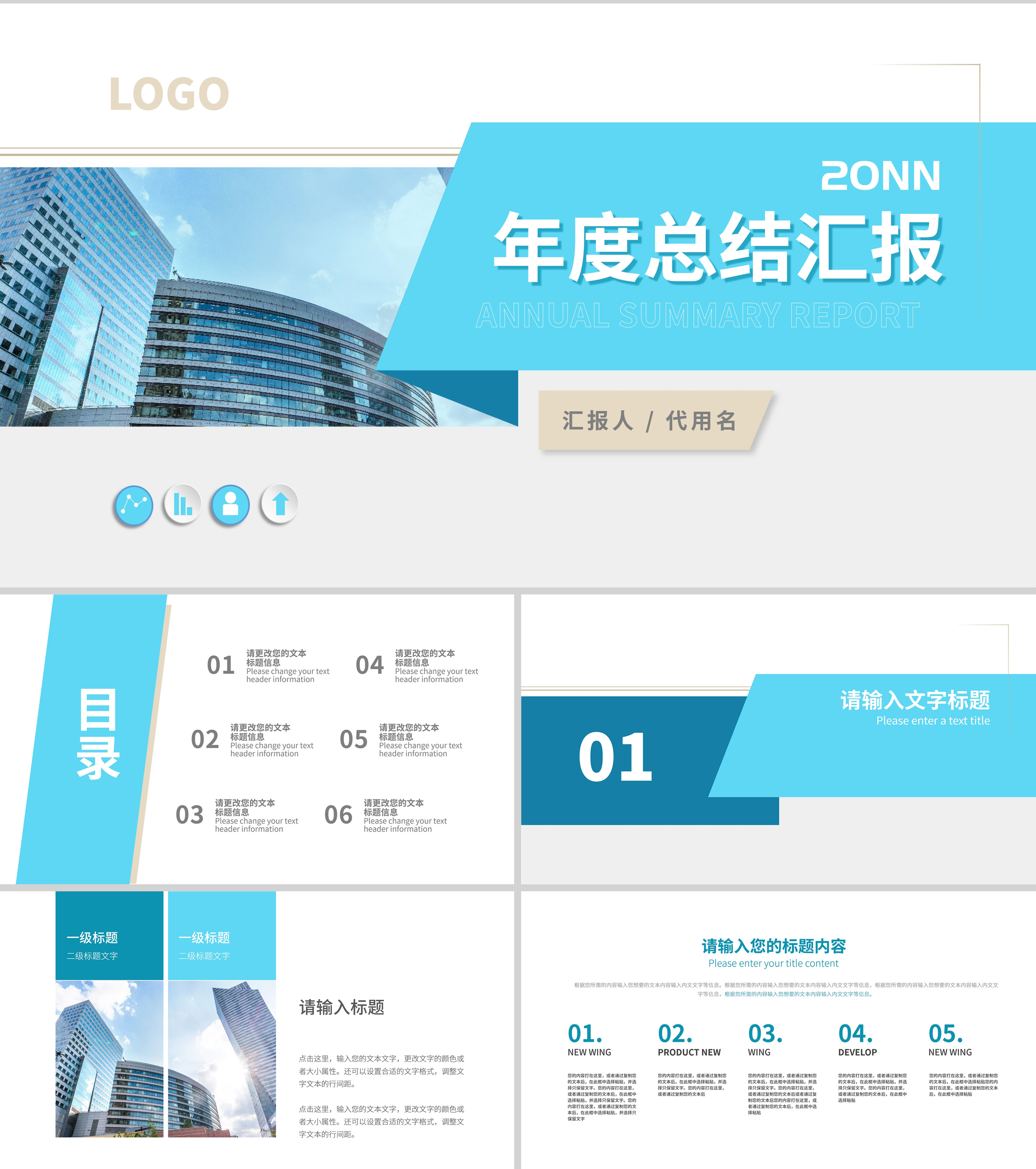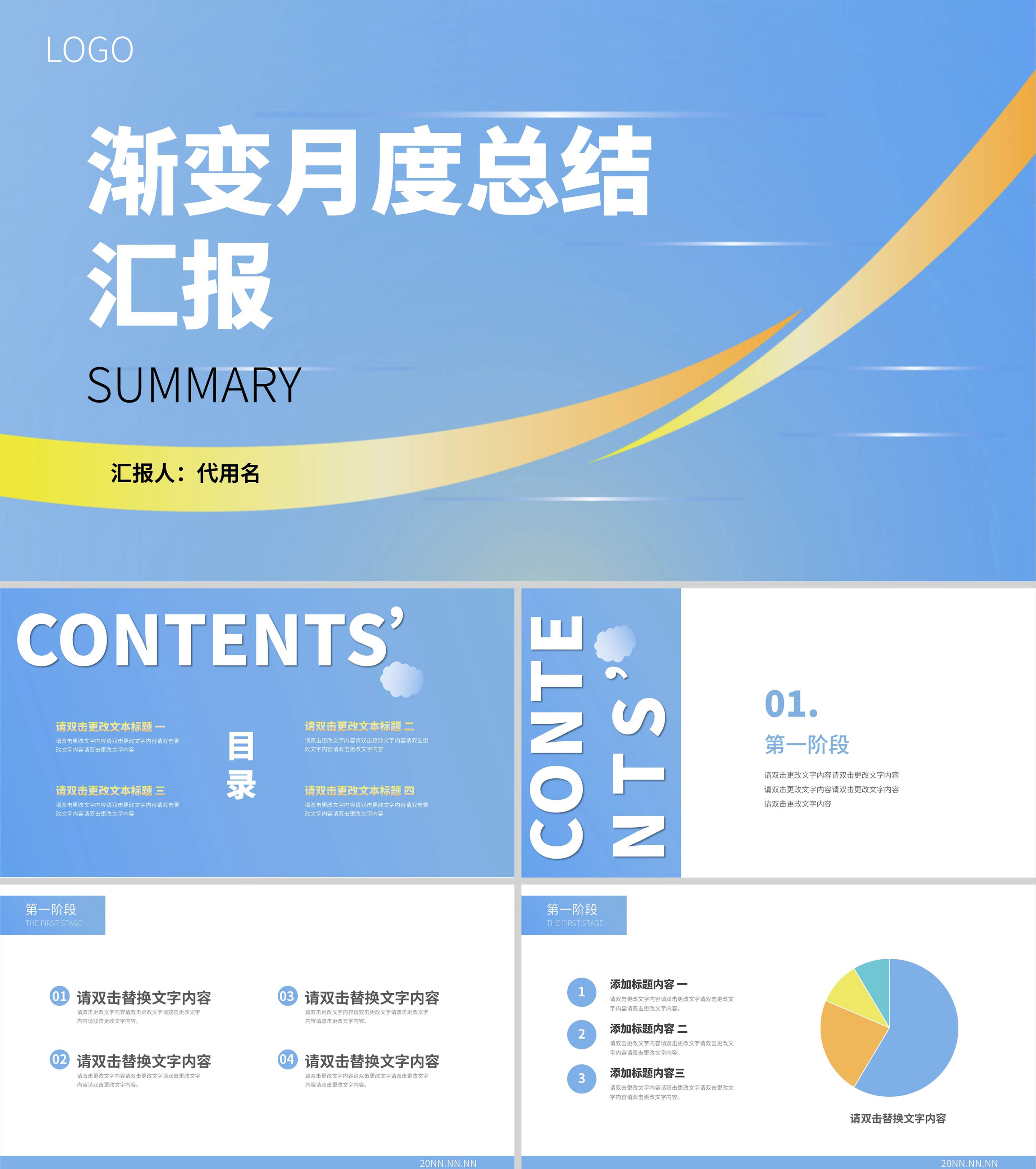粉紫拼色简约风几何创意总结汇报PPT模板