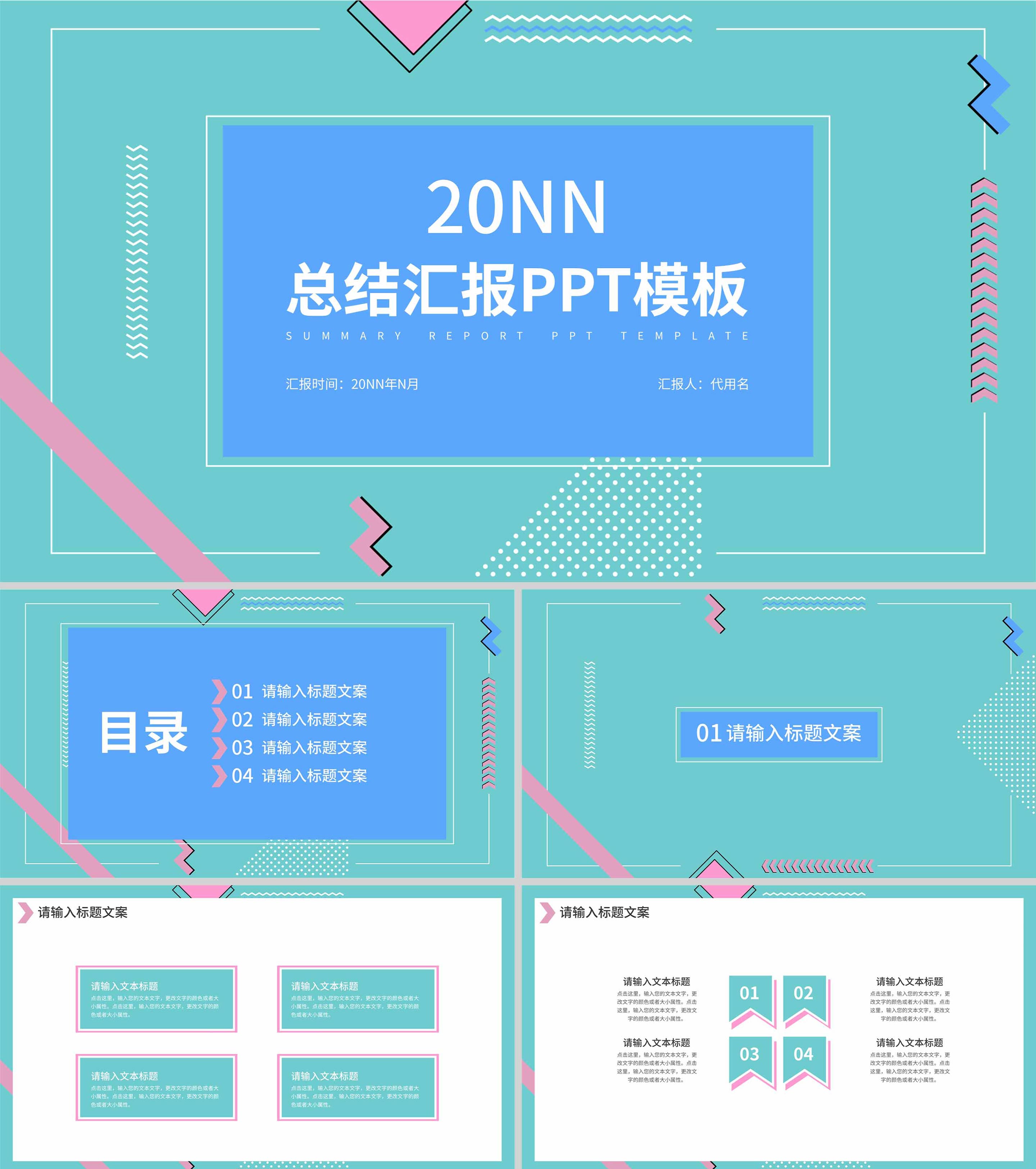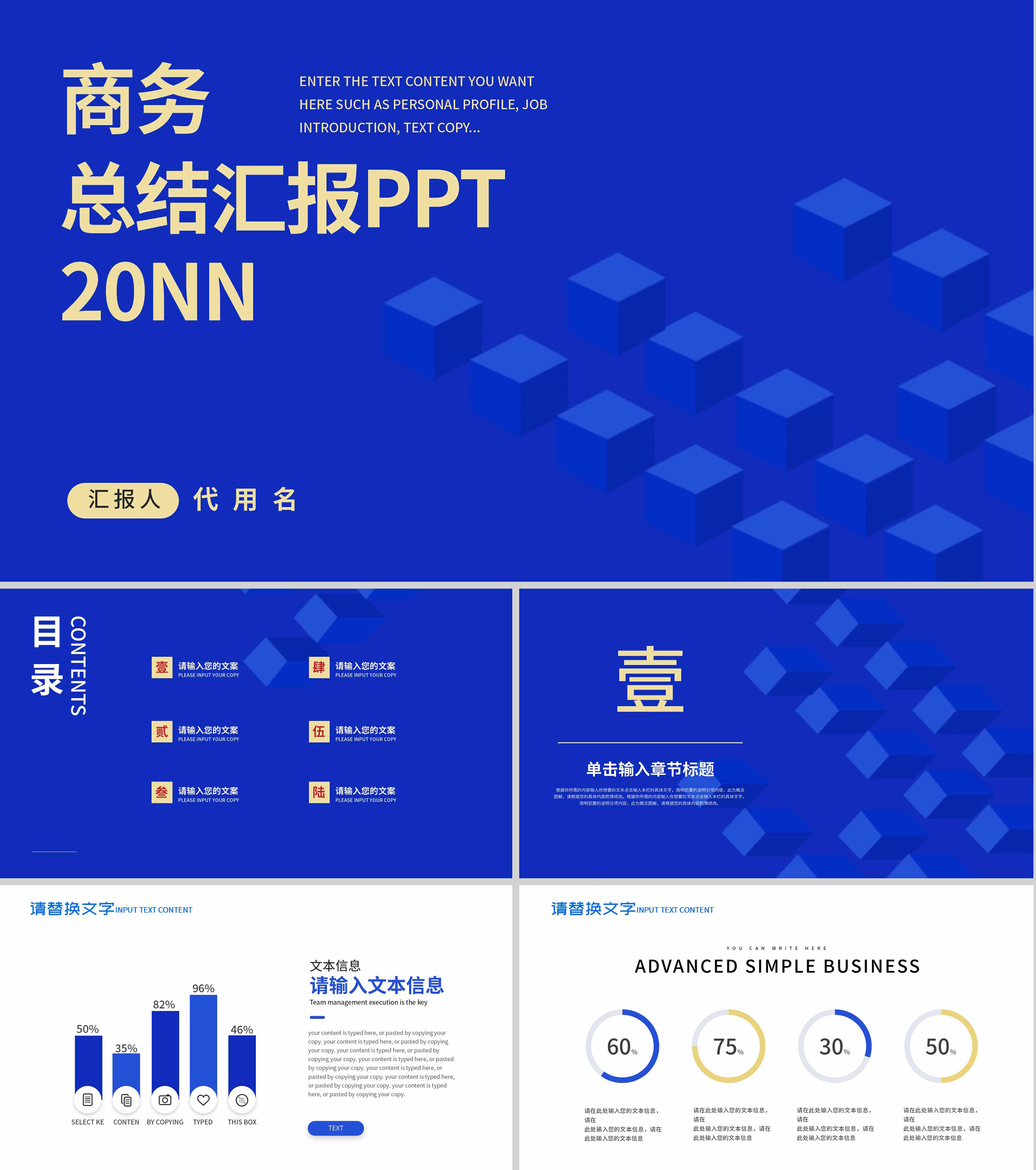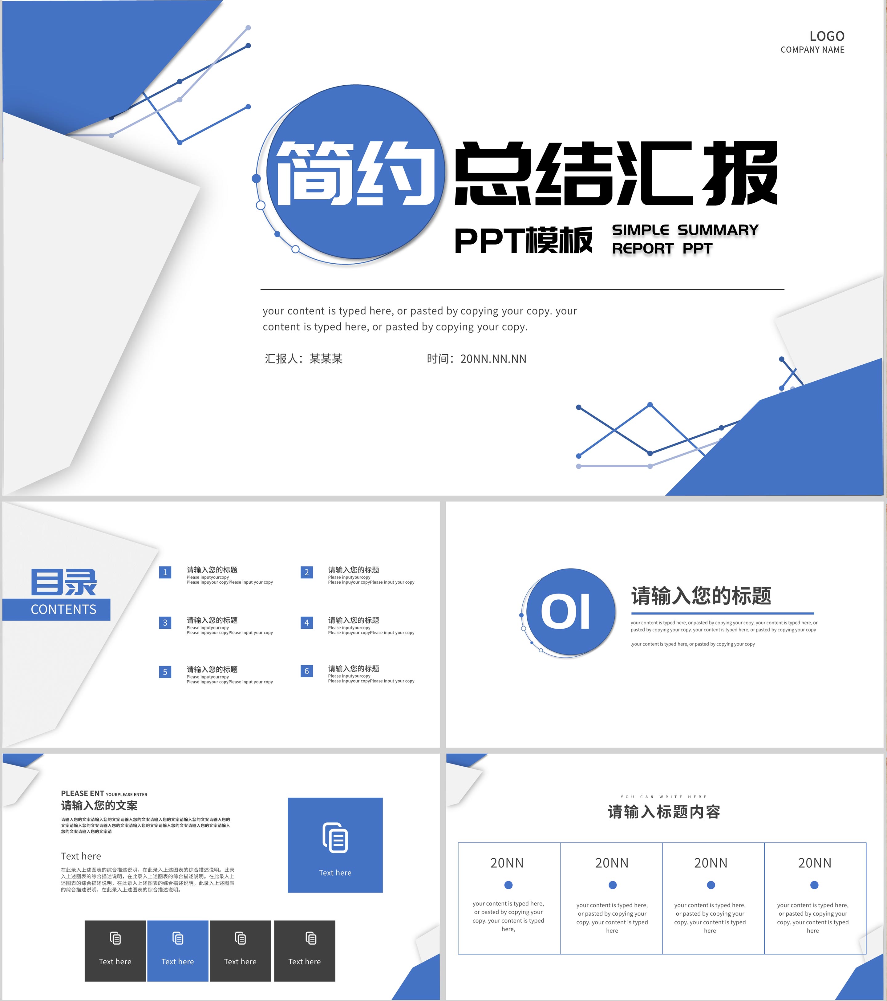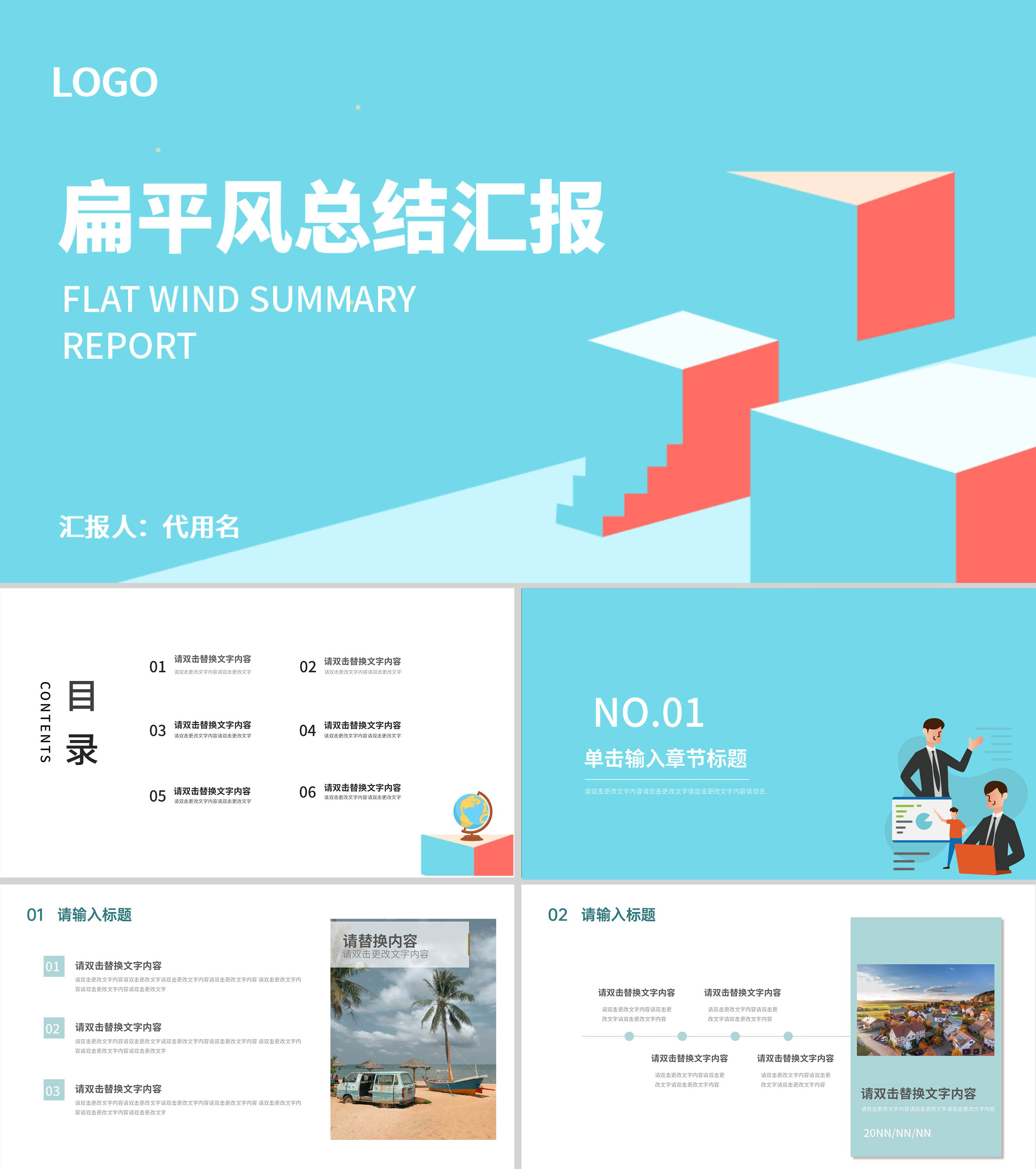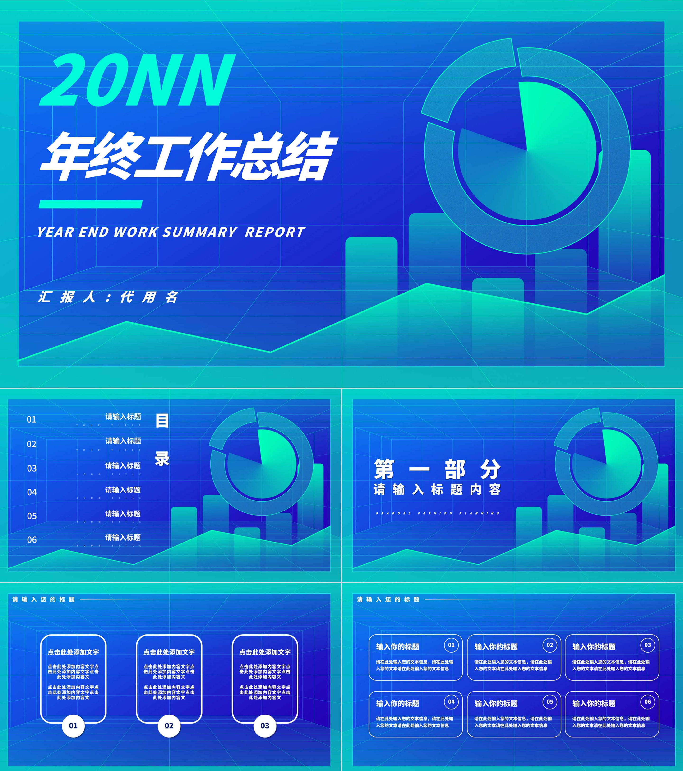 蓝色卡通插画风年度工作总结汇报PPT模板
