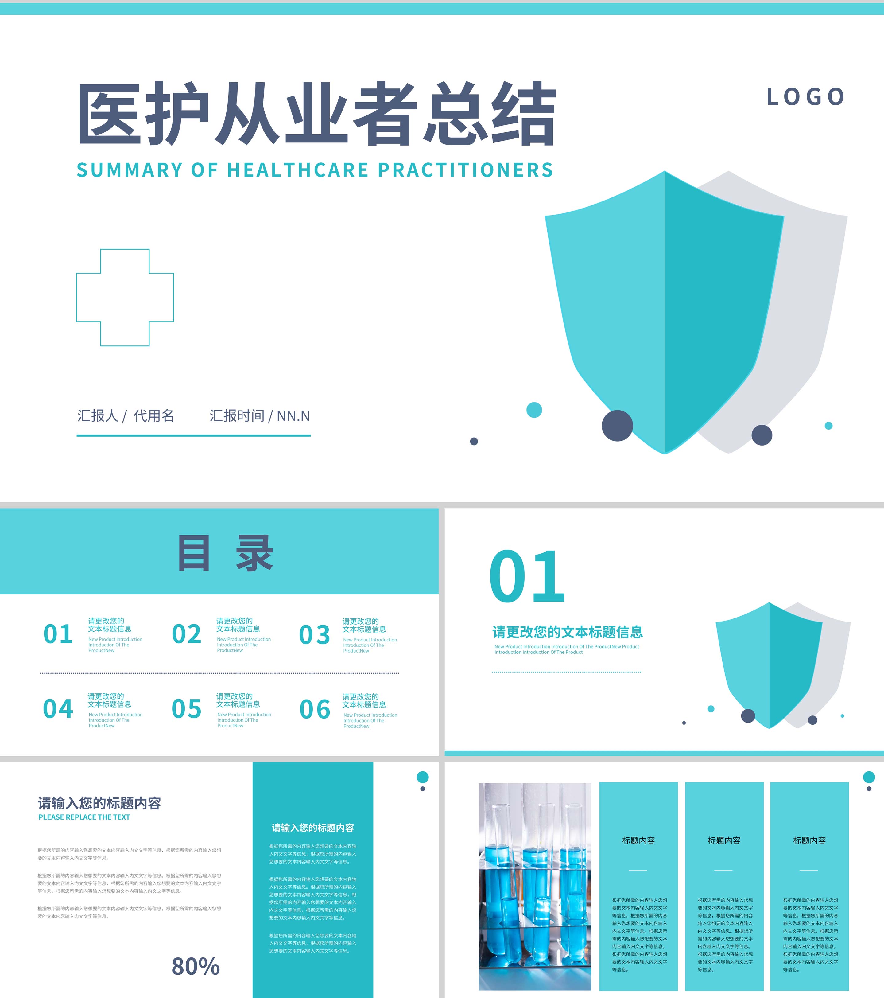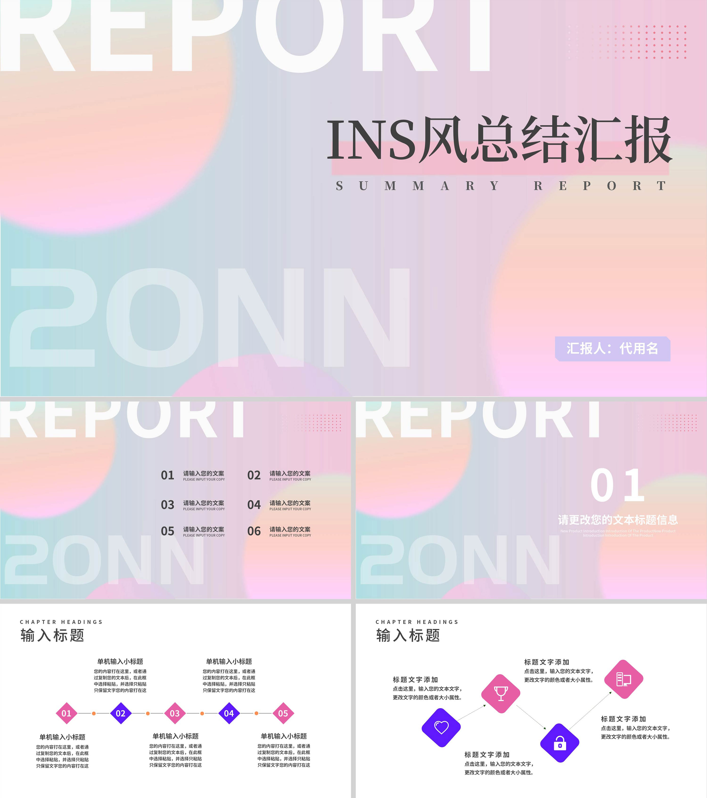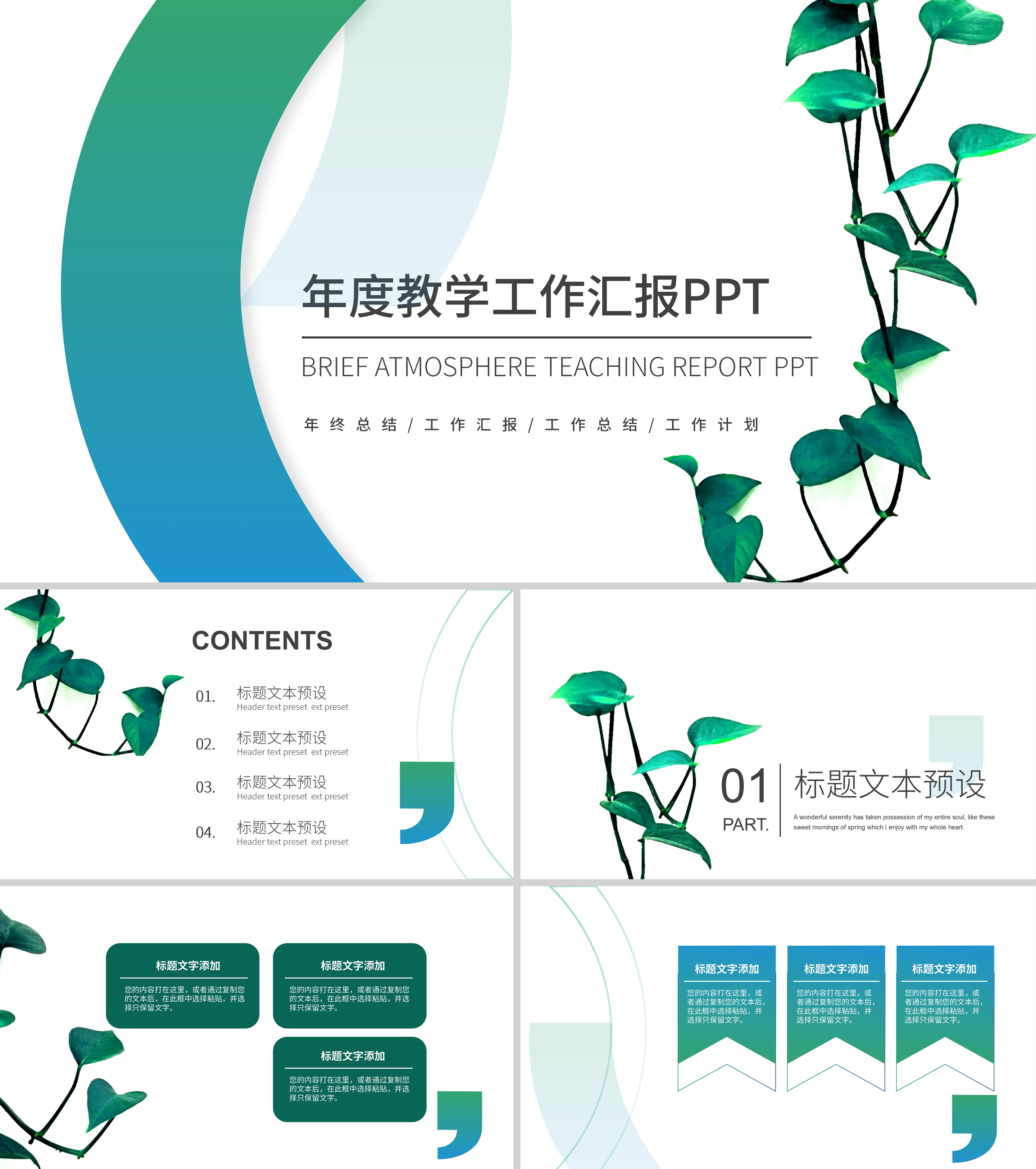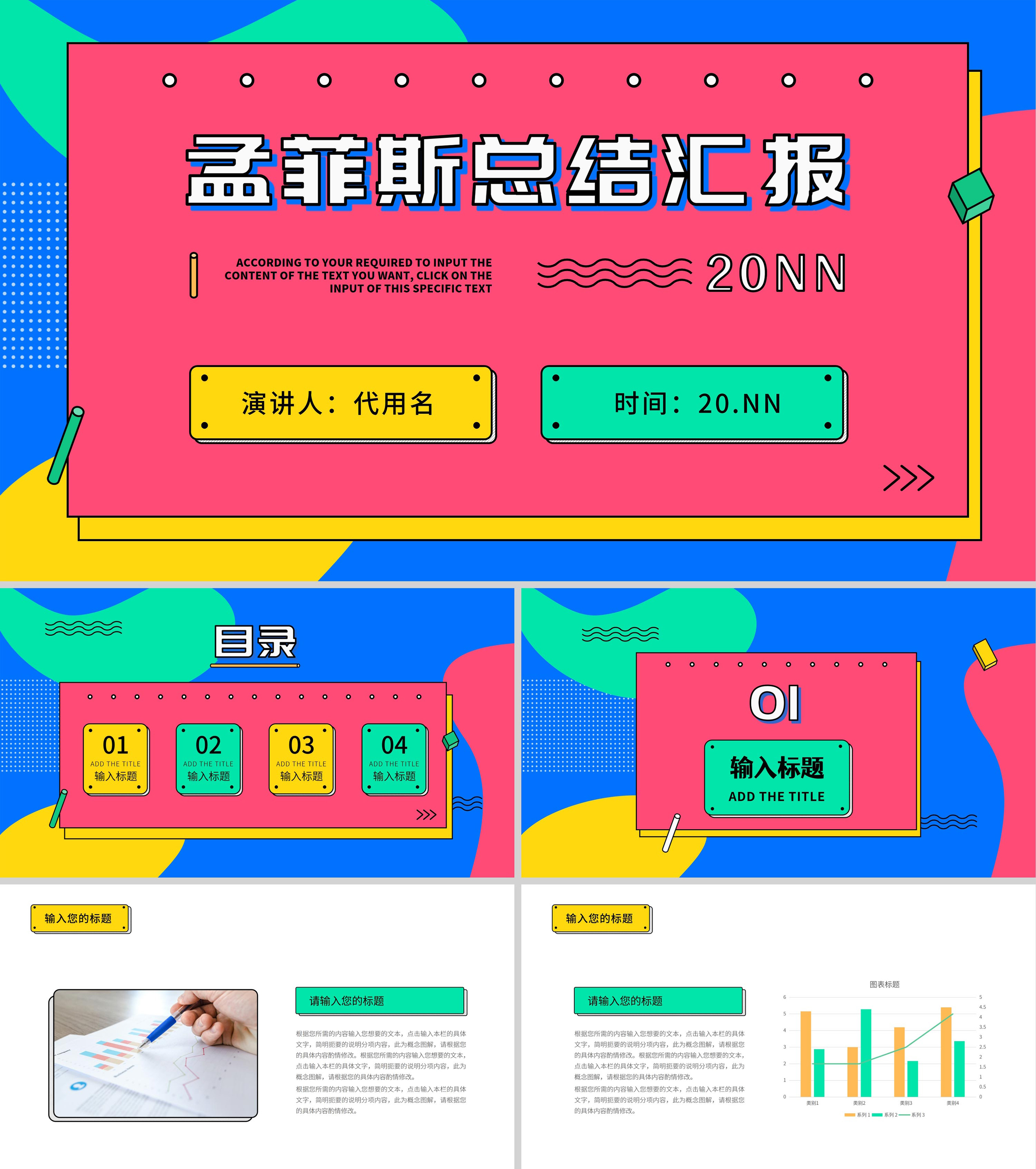 蓝色卡通插画风年度工作总结汇报PPT模板
