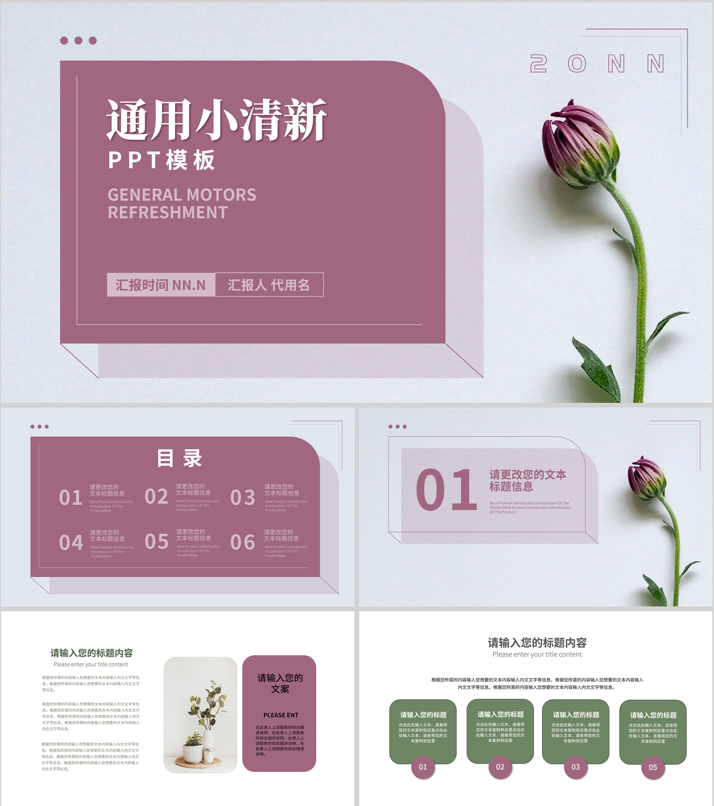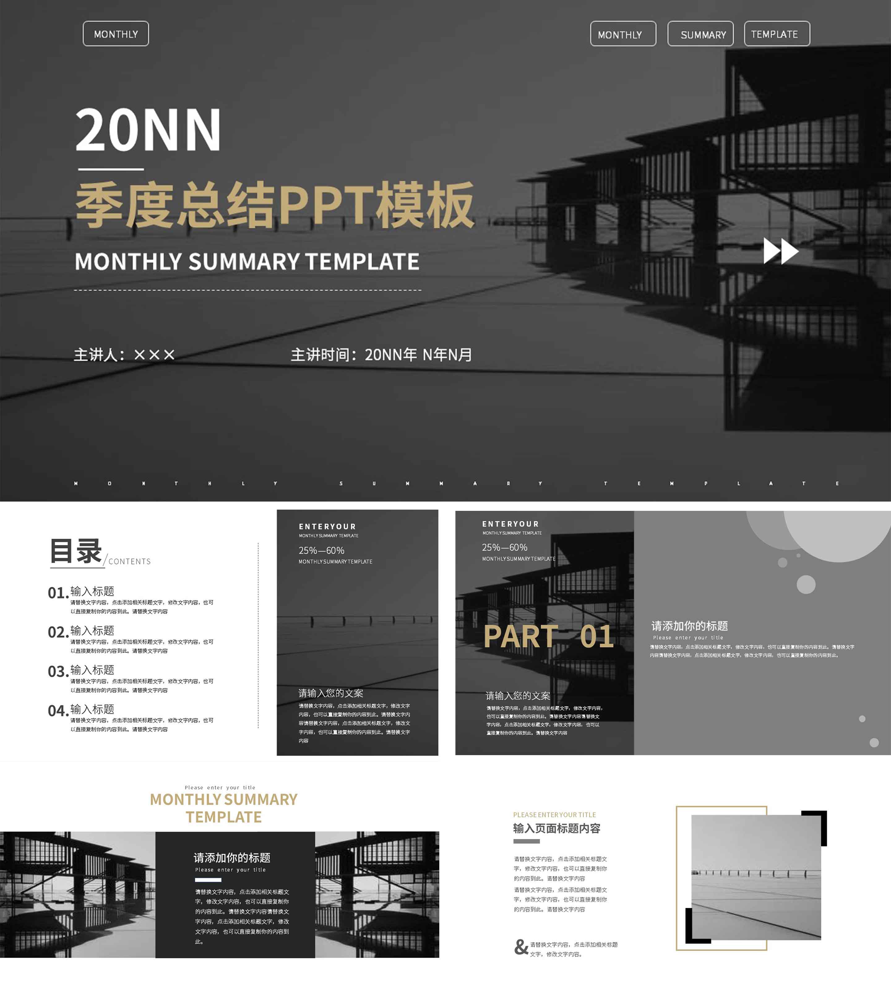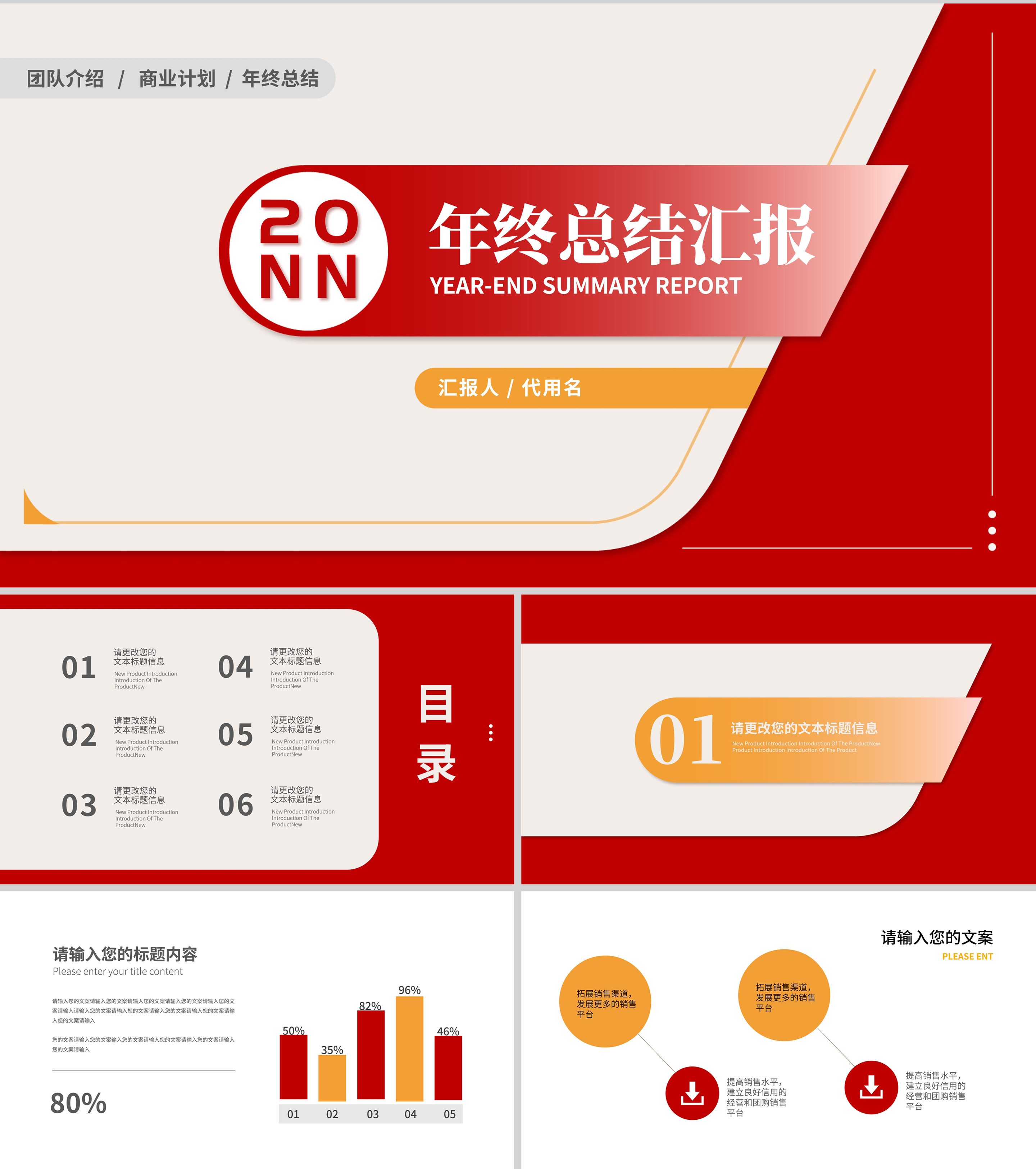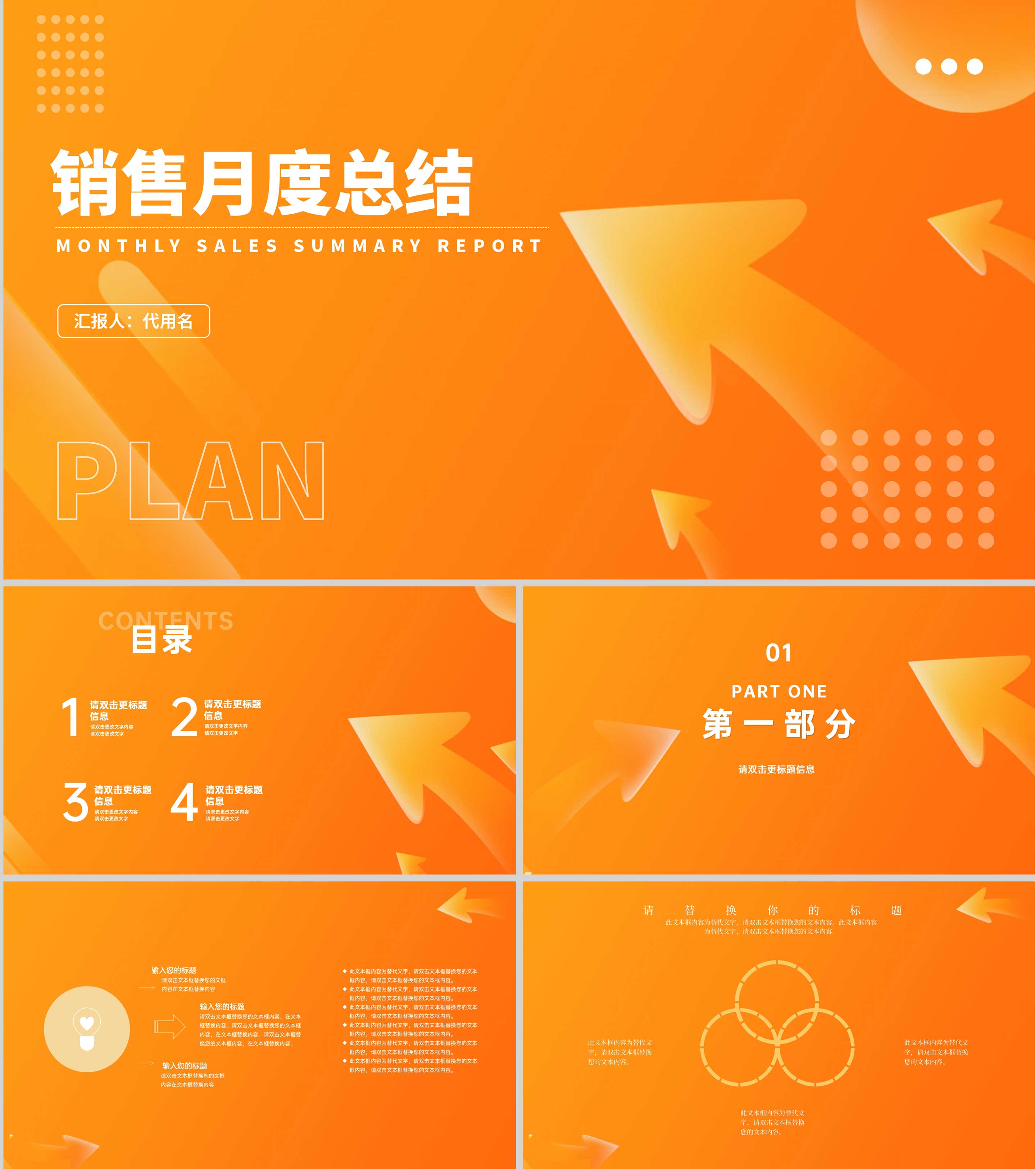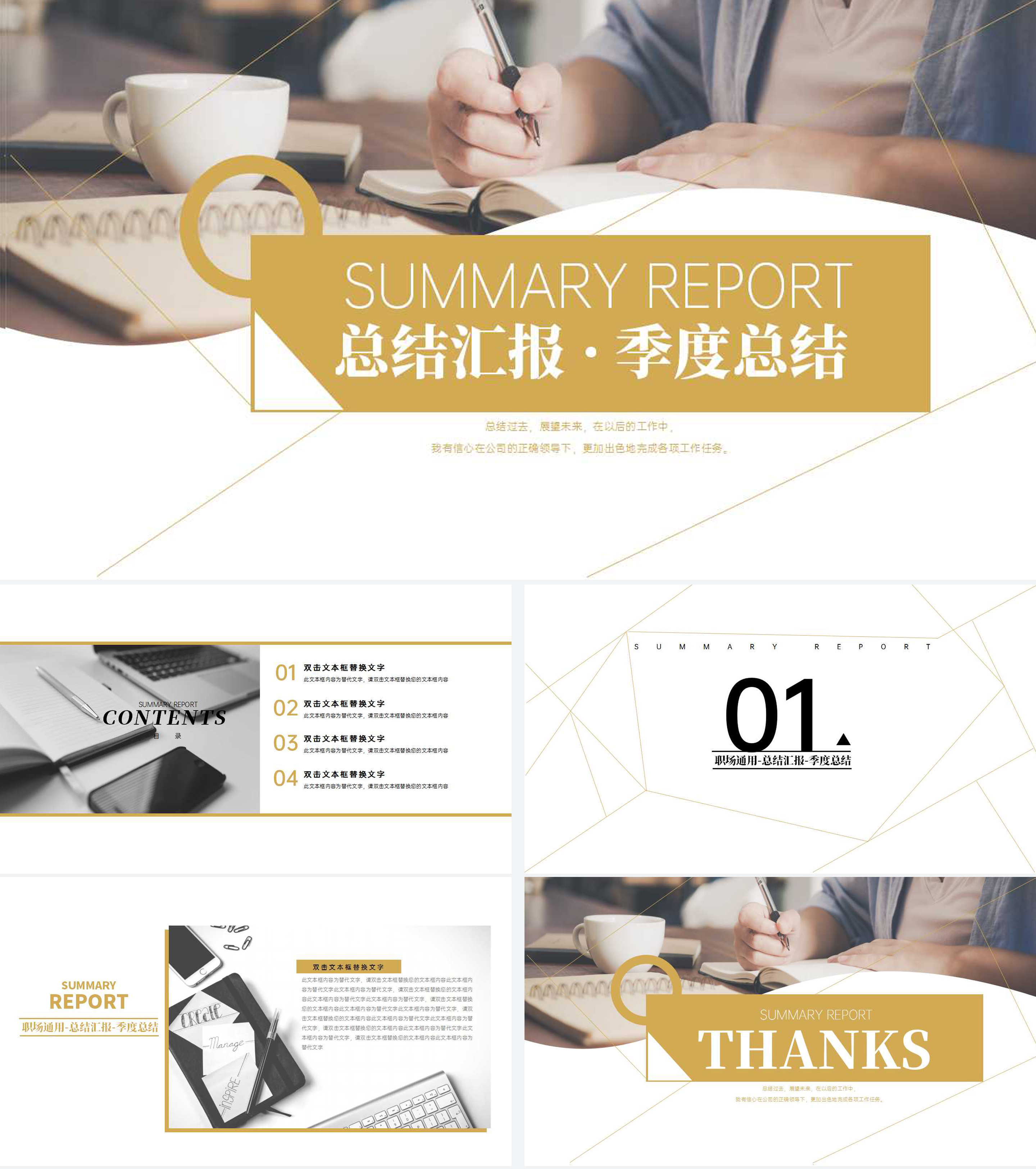 蓝色卡通插画风年度工作总结汇报PPT模板
