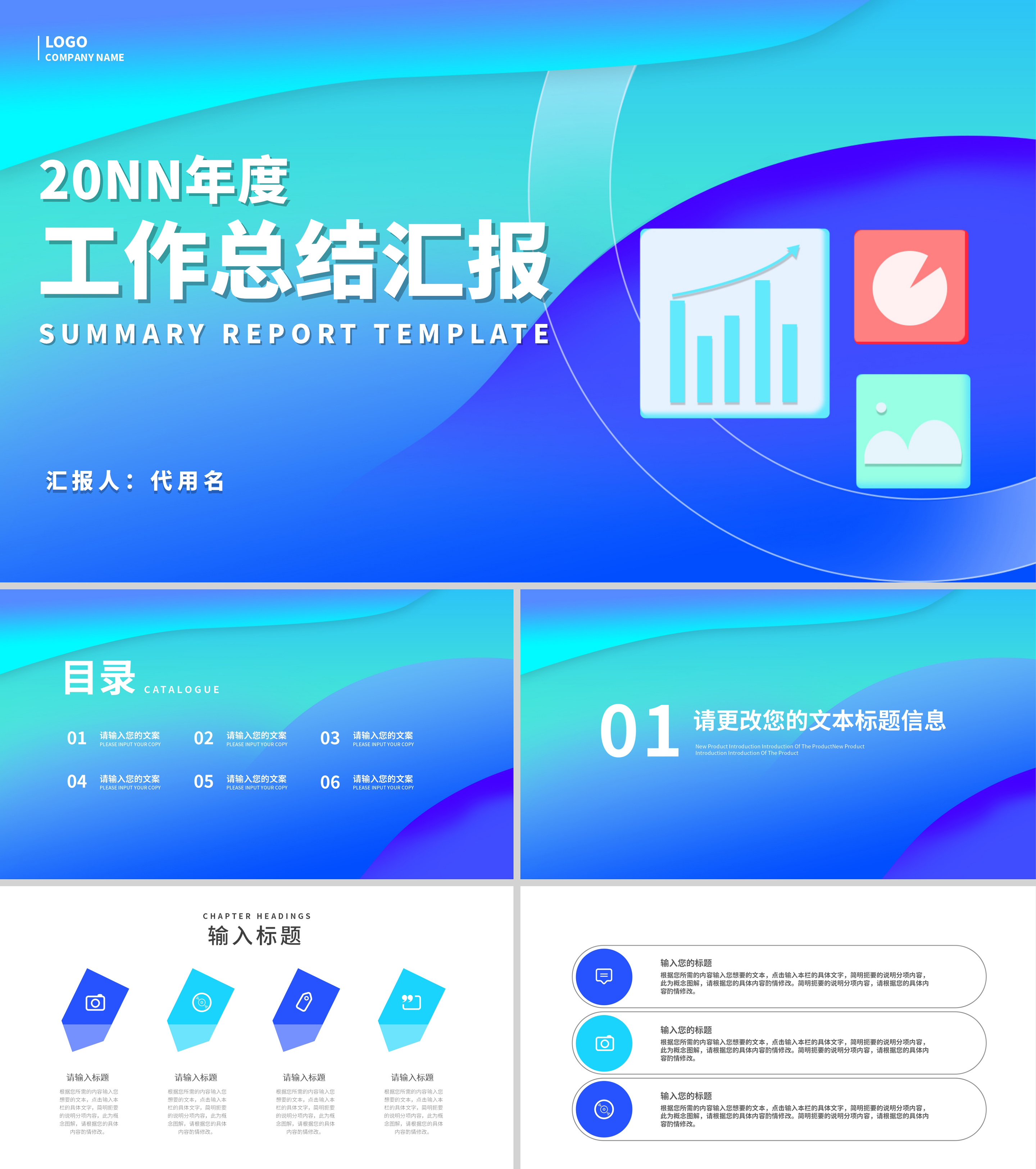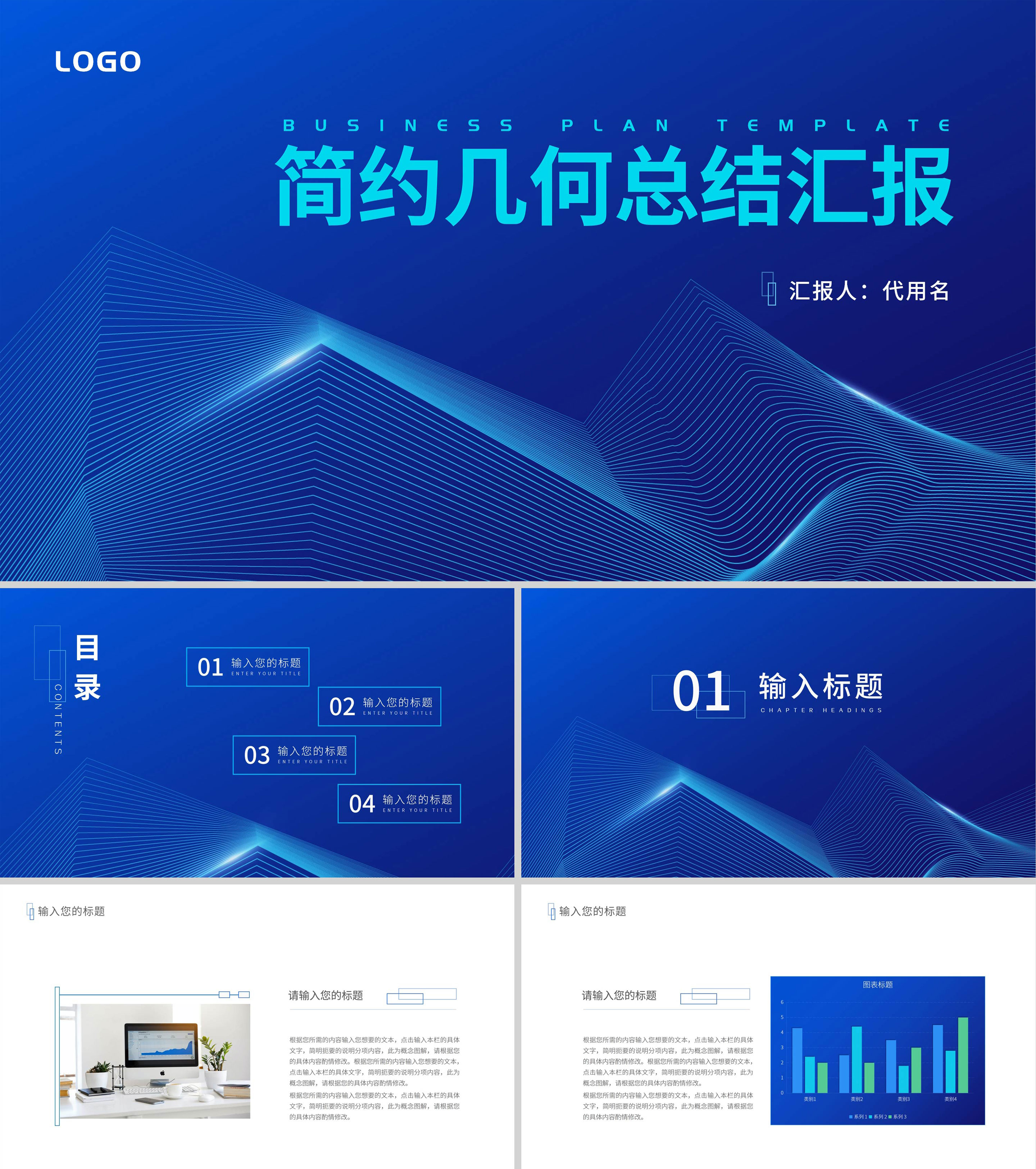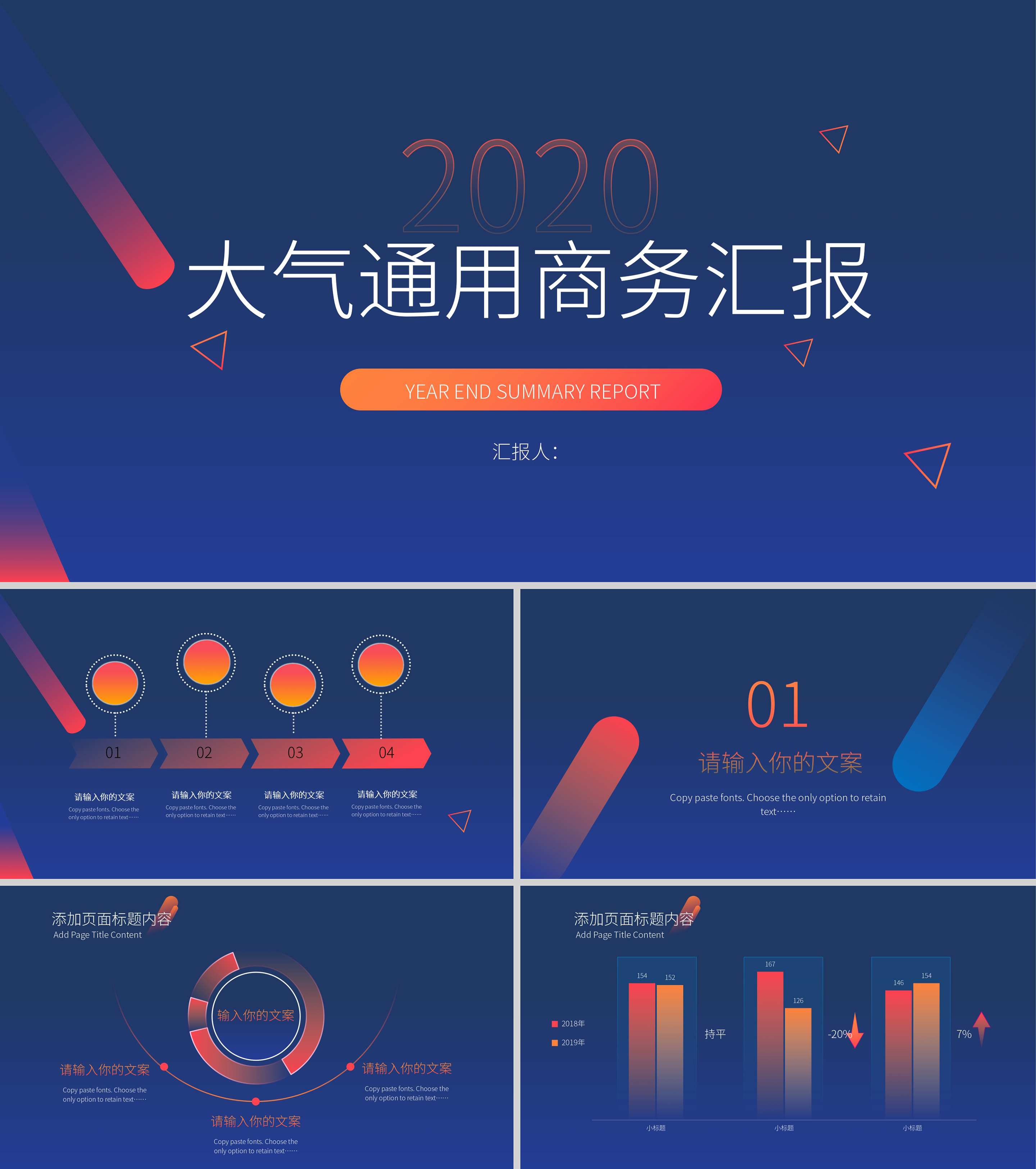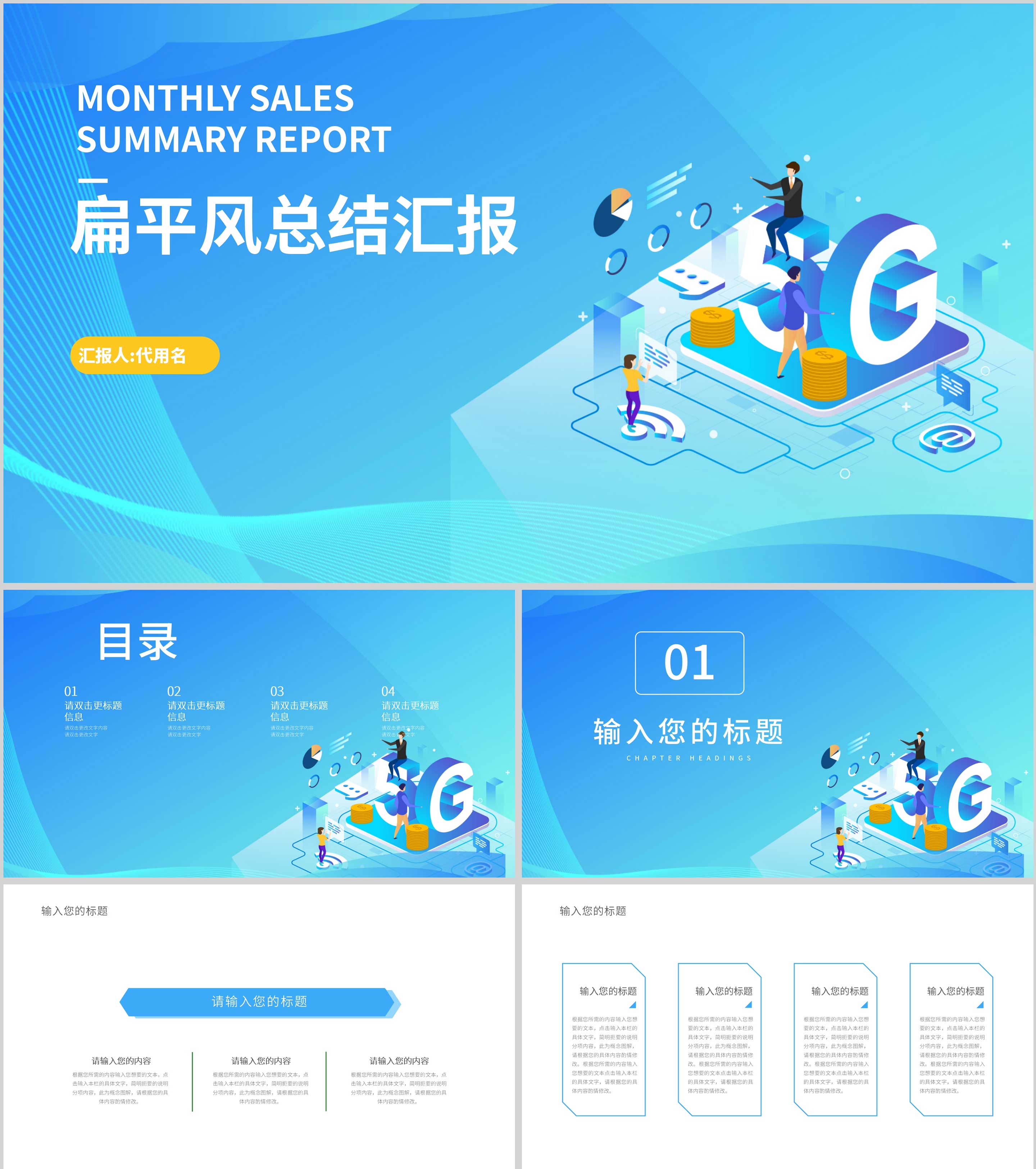 蓝色扁平风大气职场通用总结汇报PPT模板