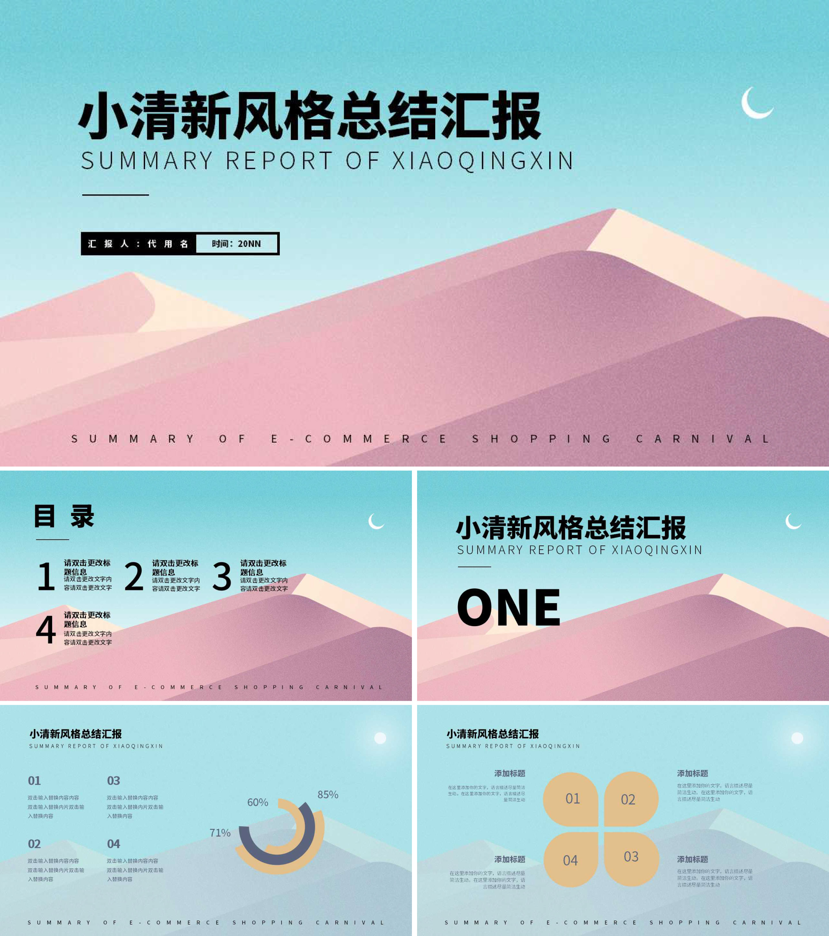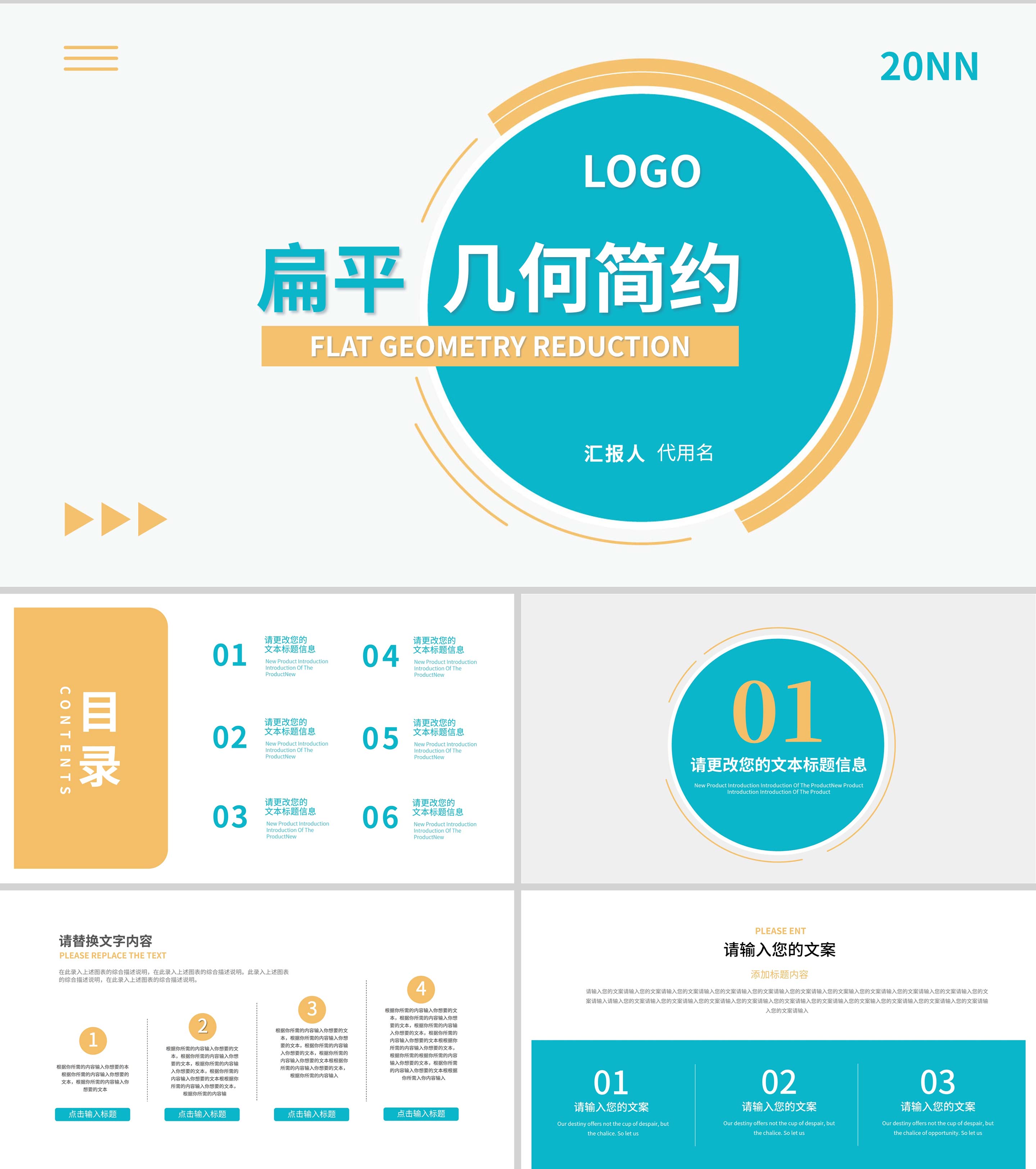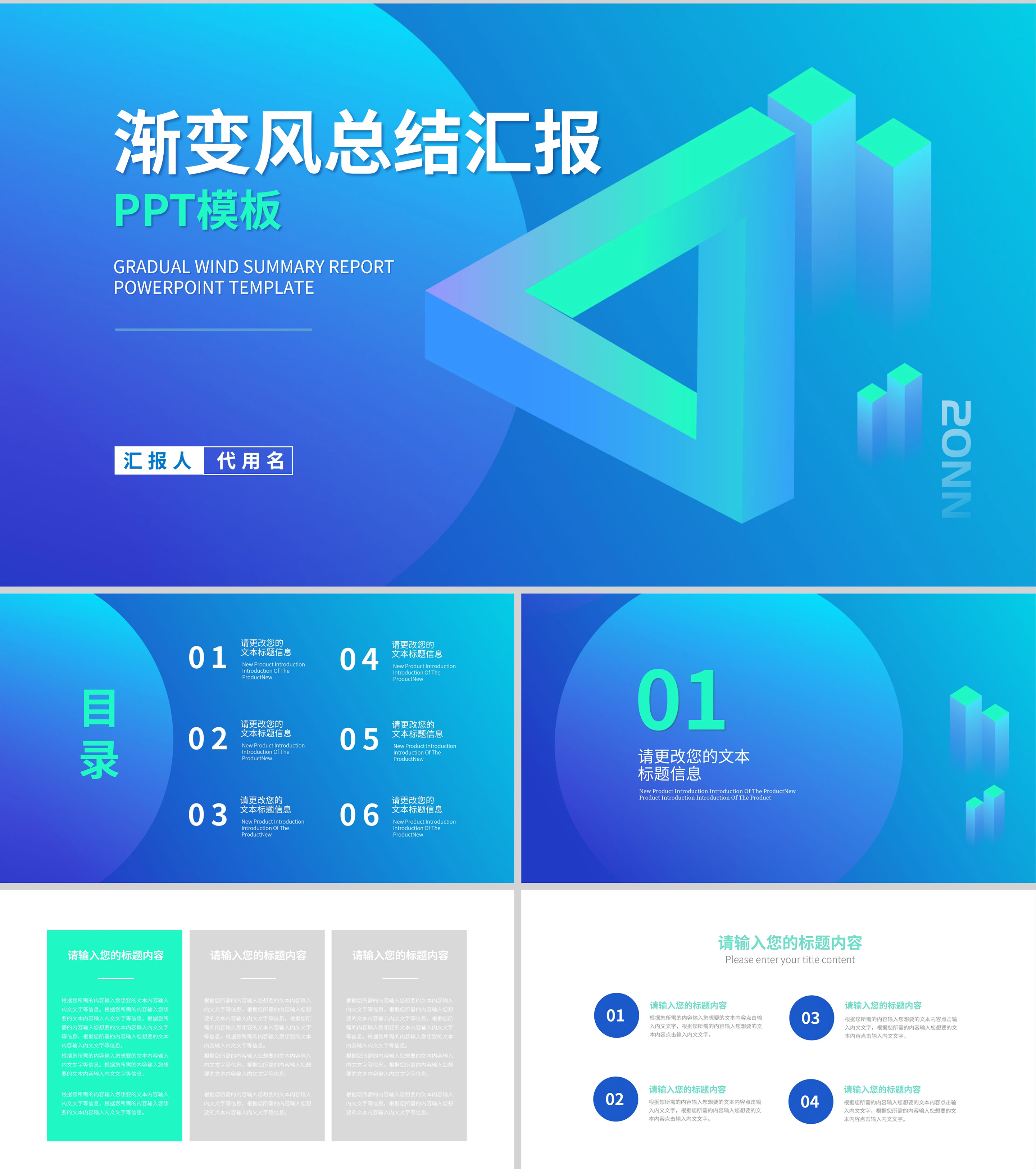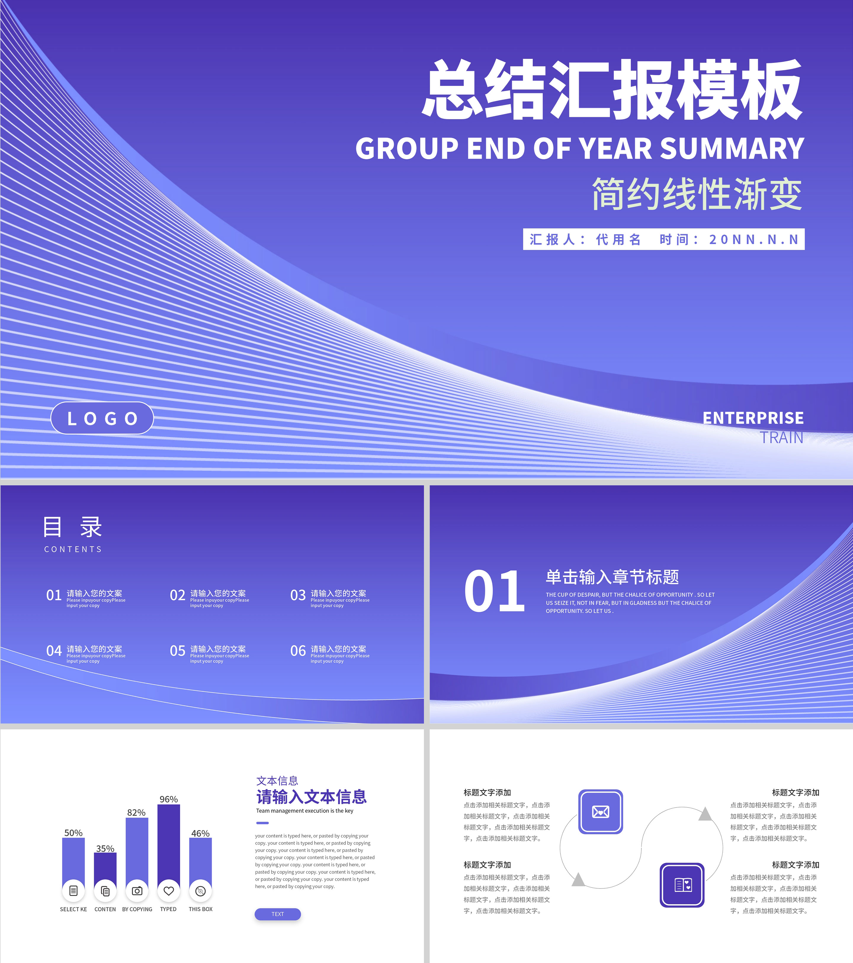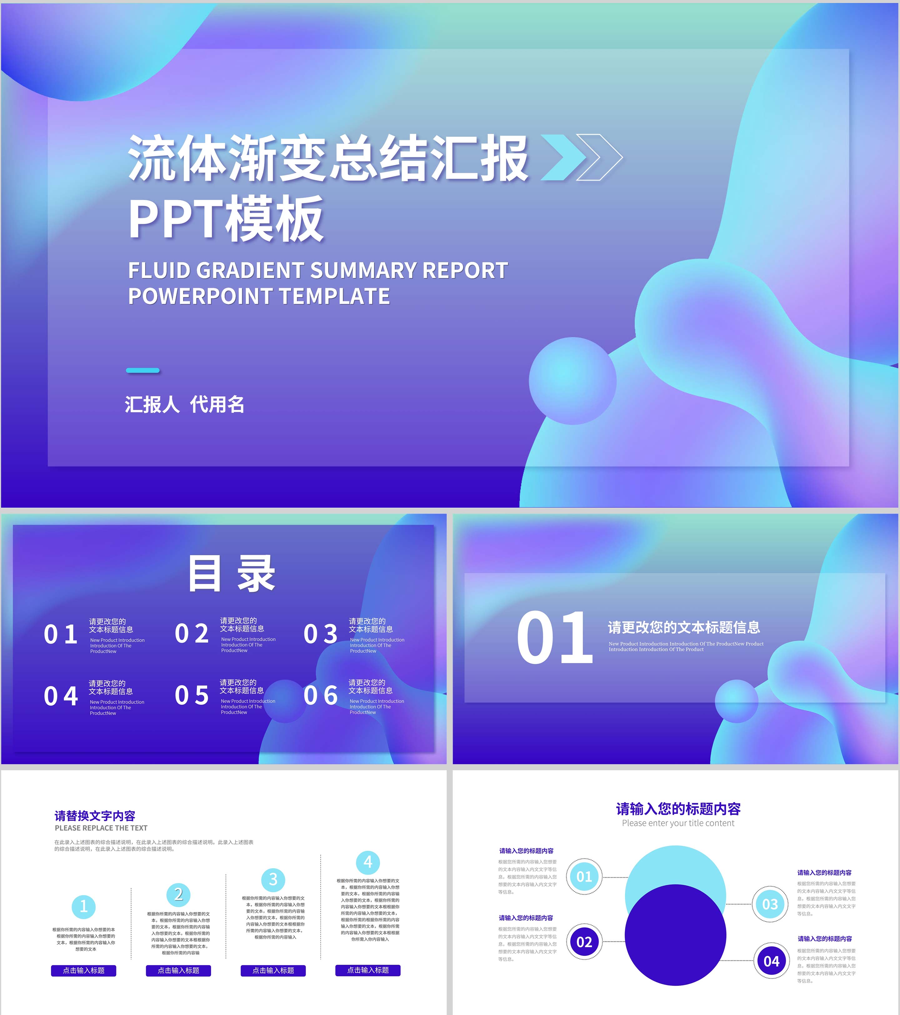 蓝色扁平风大气职场通用总结汇报PPT模板