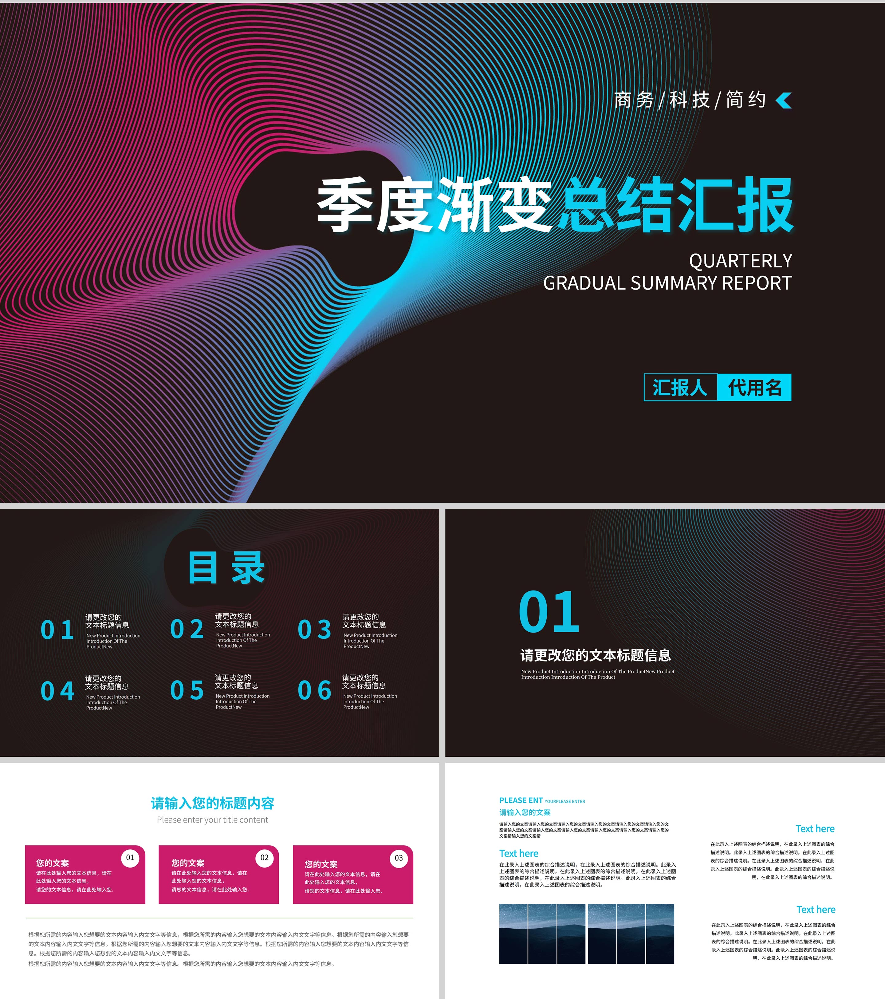 深蓝商务科技风工作总结项目分析报告PPT模板