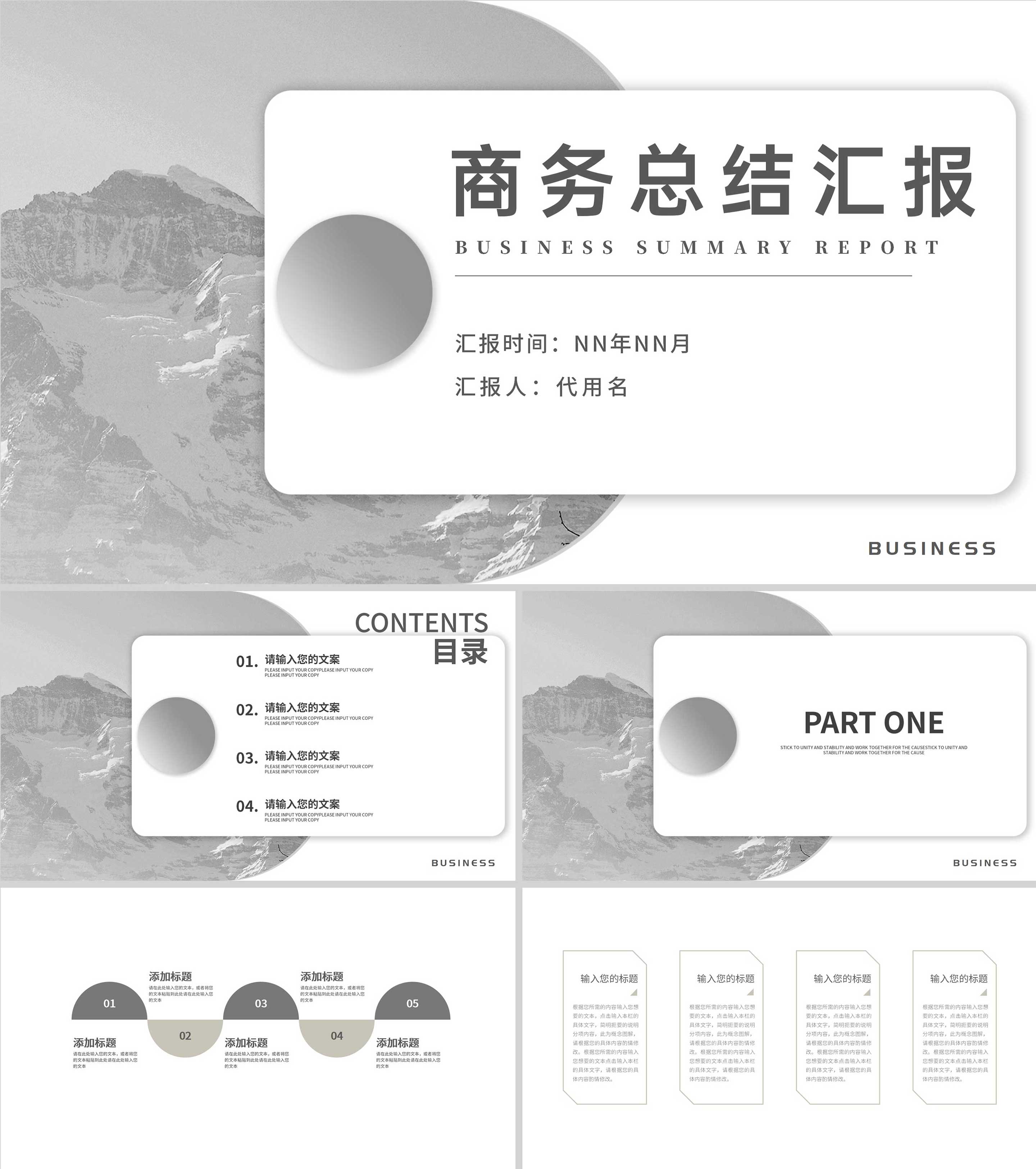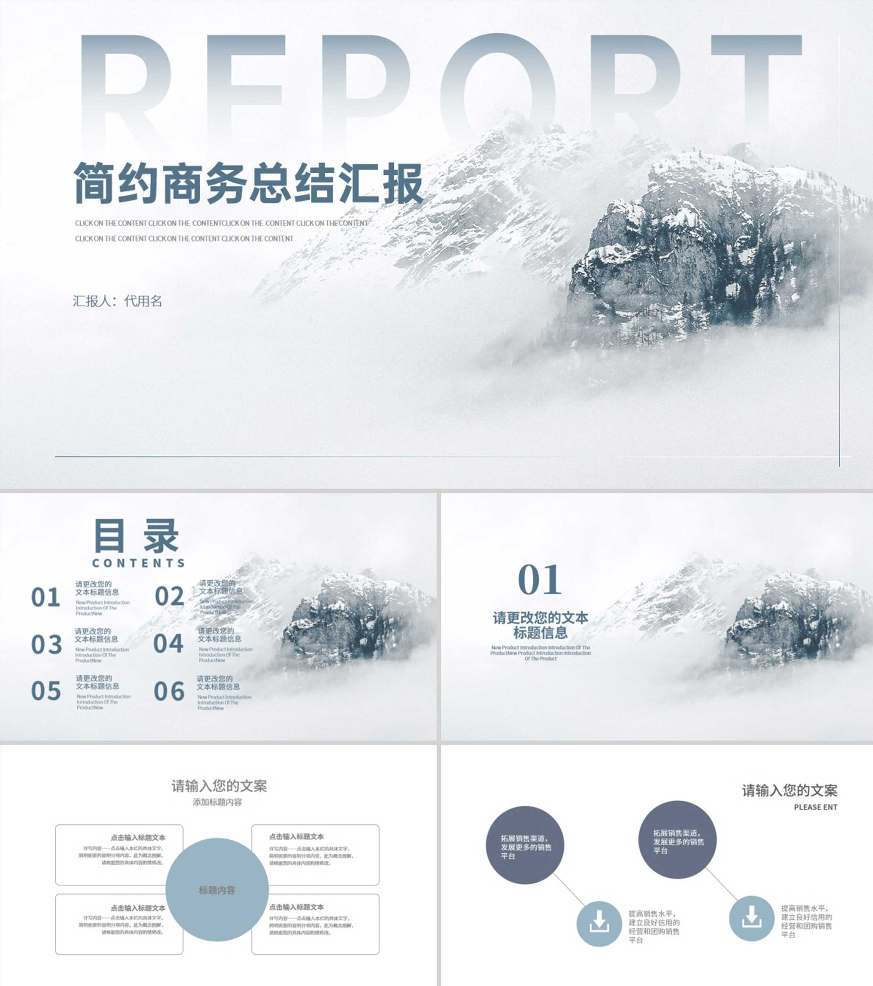 白色水彩风高级山河商务职场总结汇报PPT模板