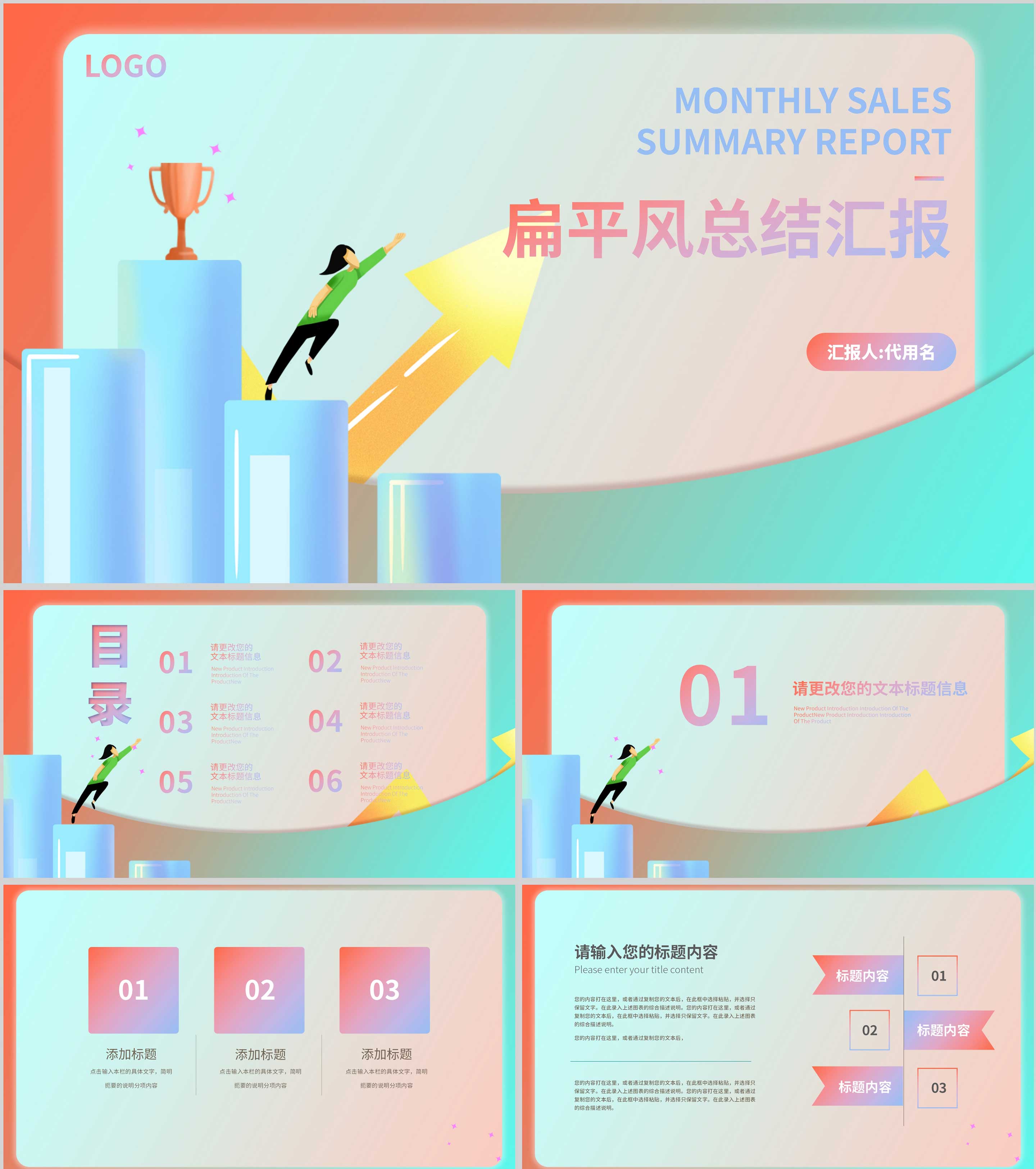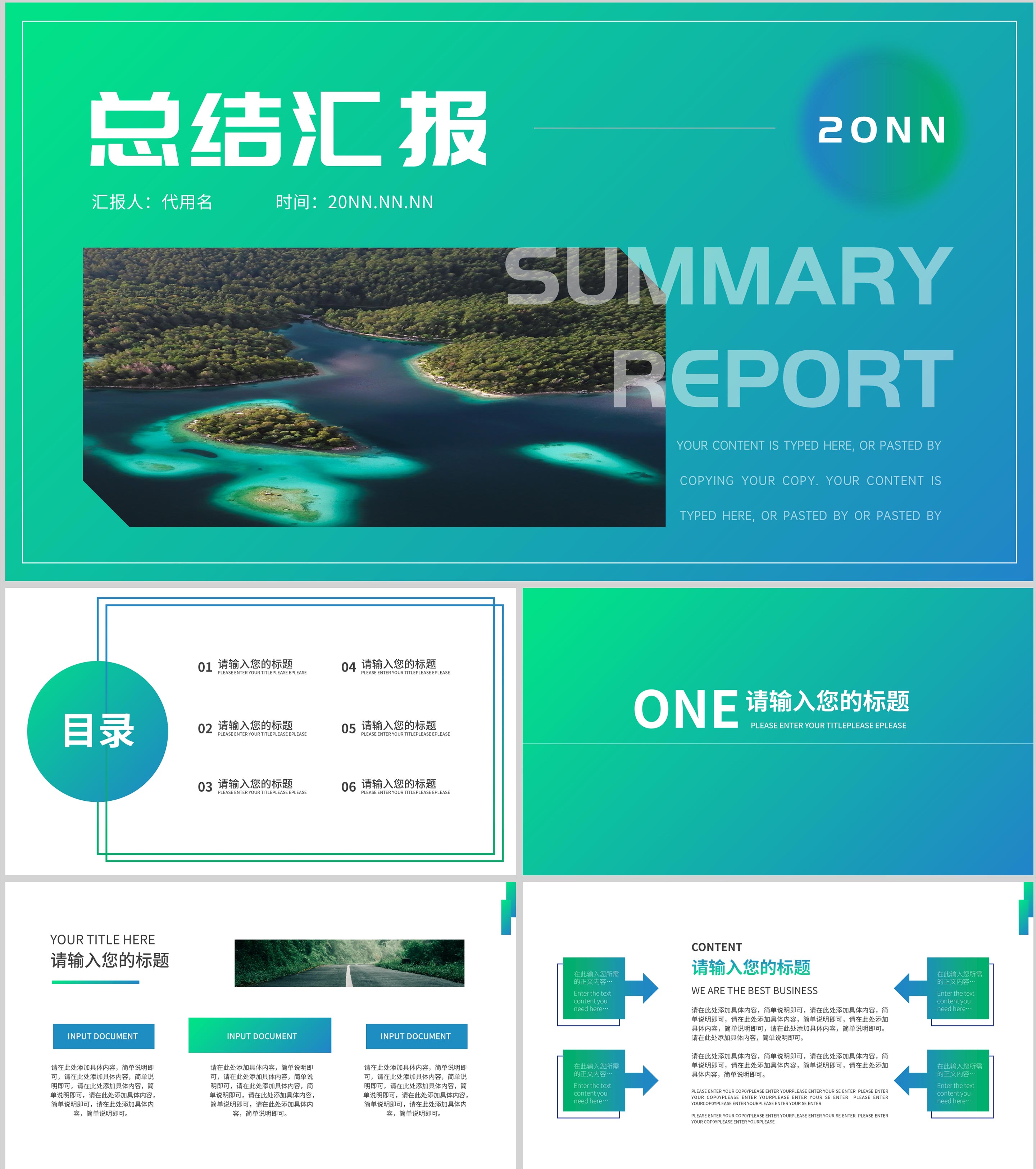绿色渐变风总结汇报PPT模板