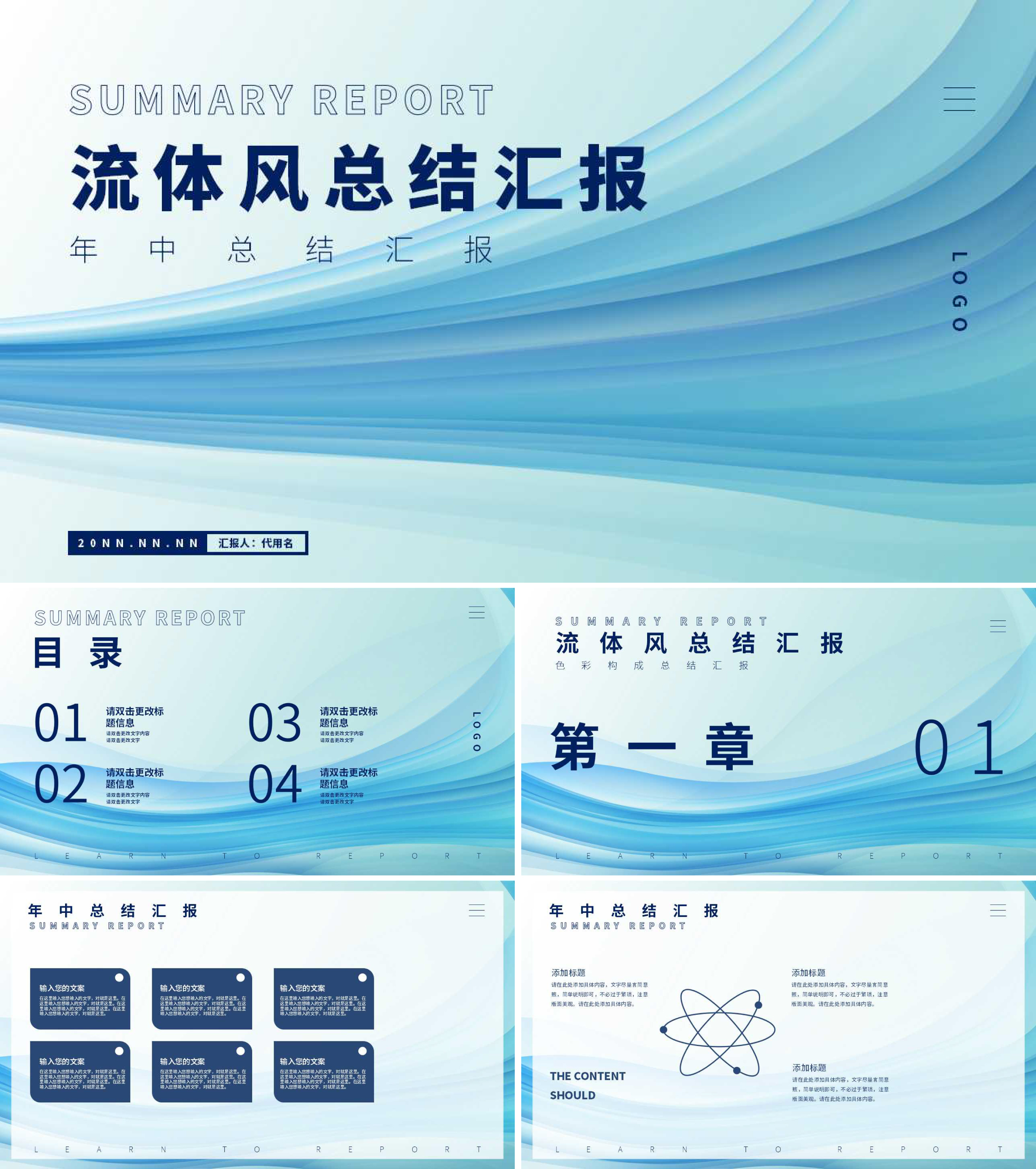 蓝色渐变风流体总结汇报PPT模板