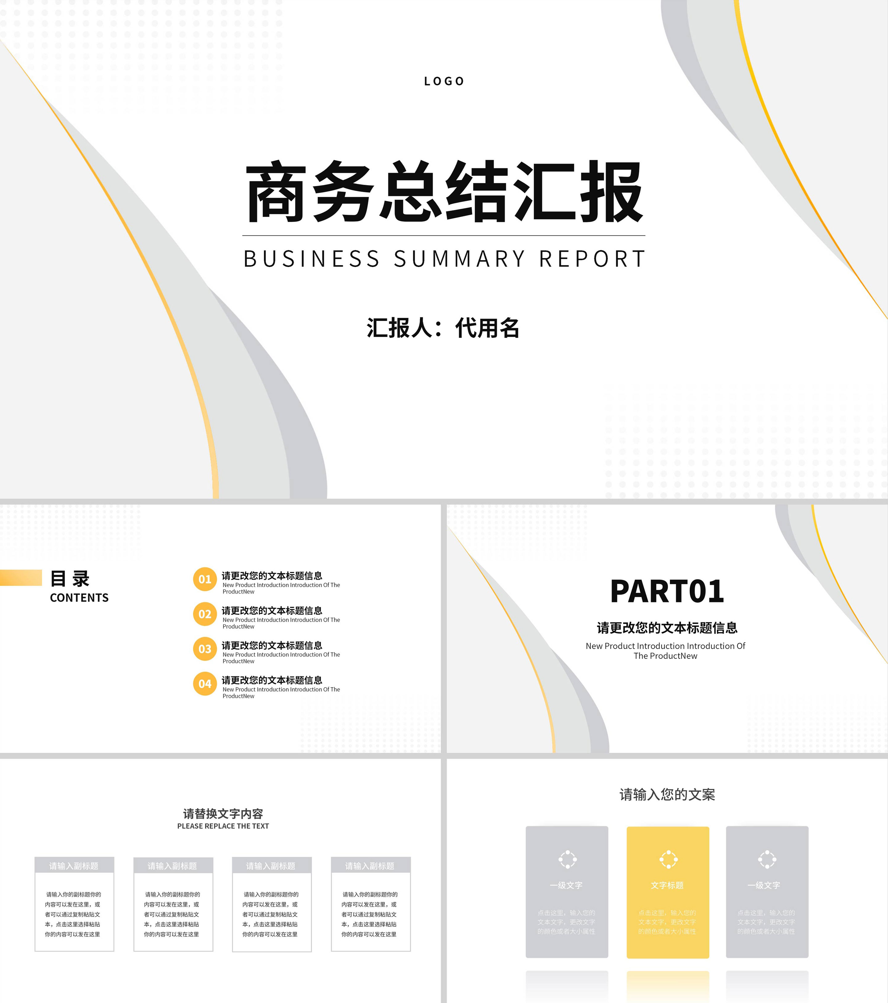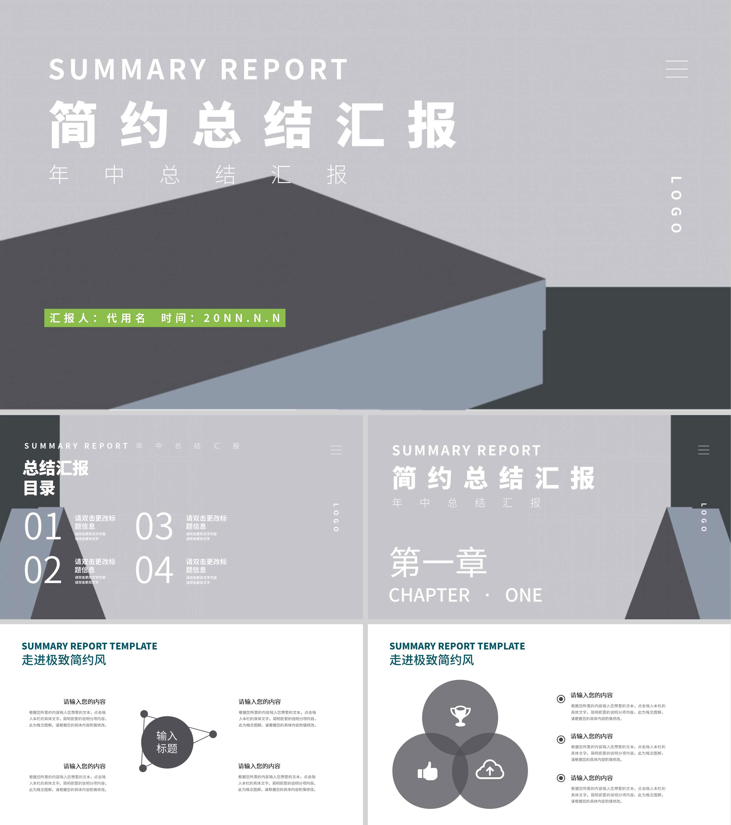 灰色简约风总结汇报PPT模板