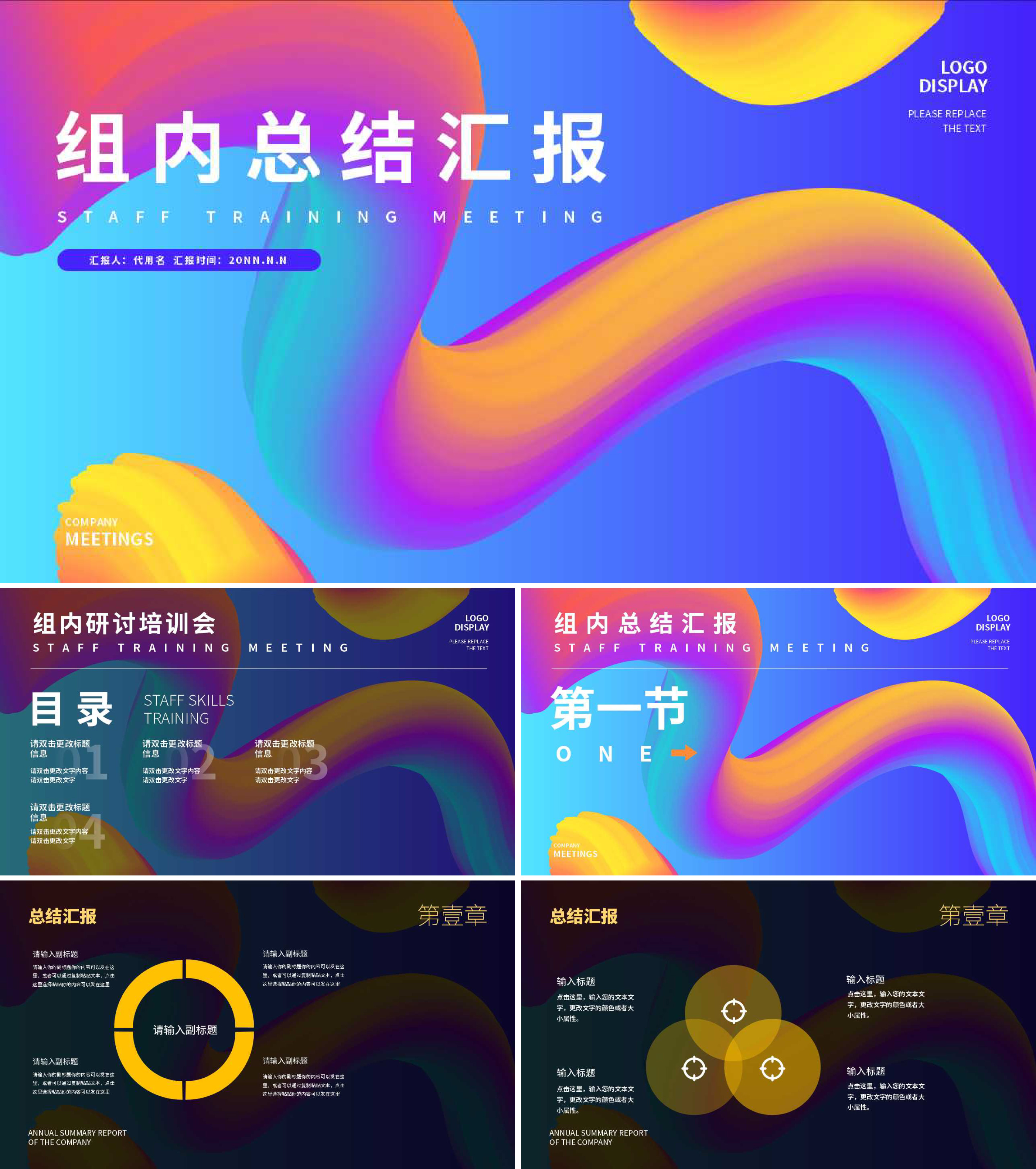 蓝色渐变风组内总结汇报PPT模板