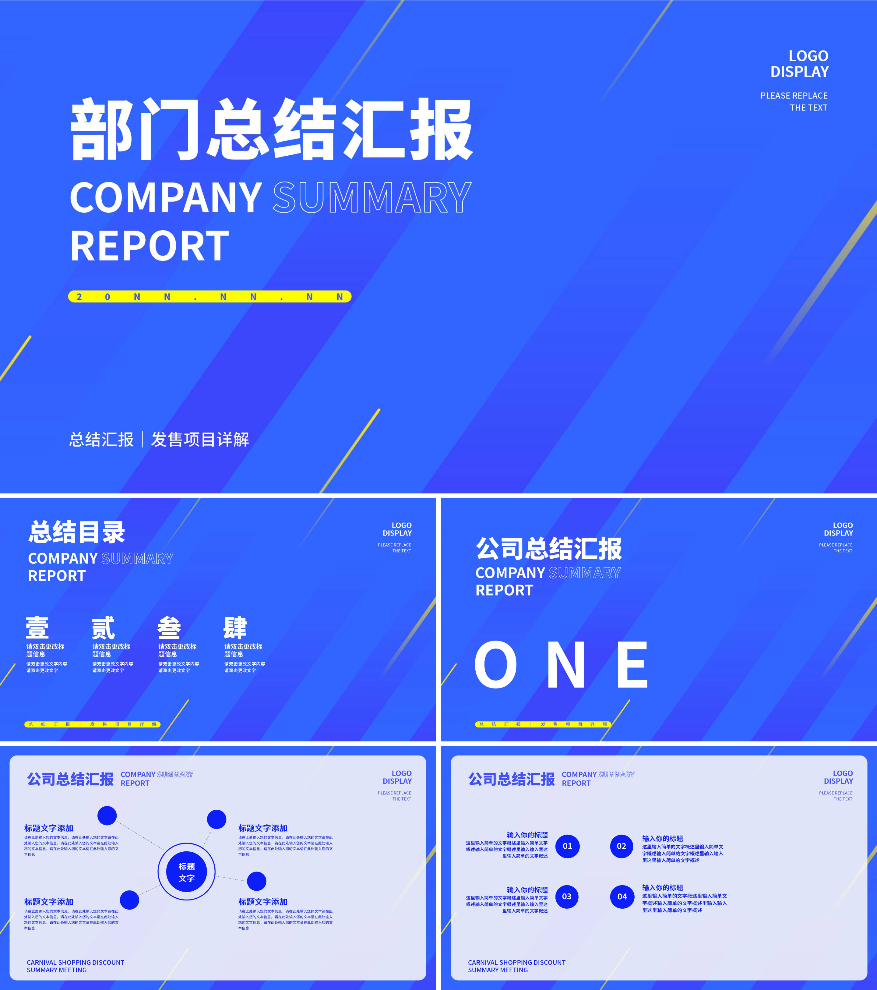 蓝色简约风总结汇报PPT模板