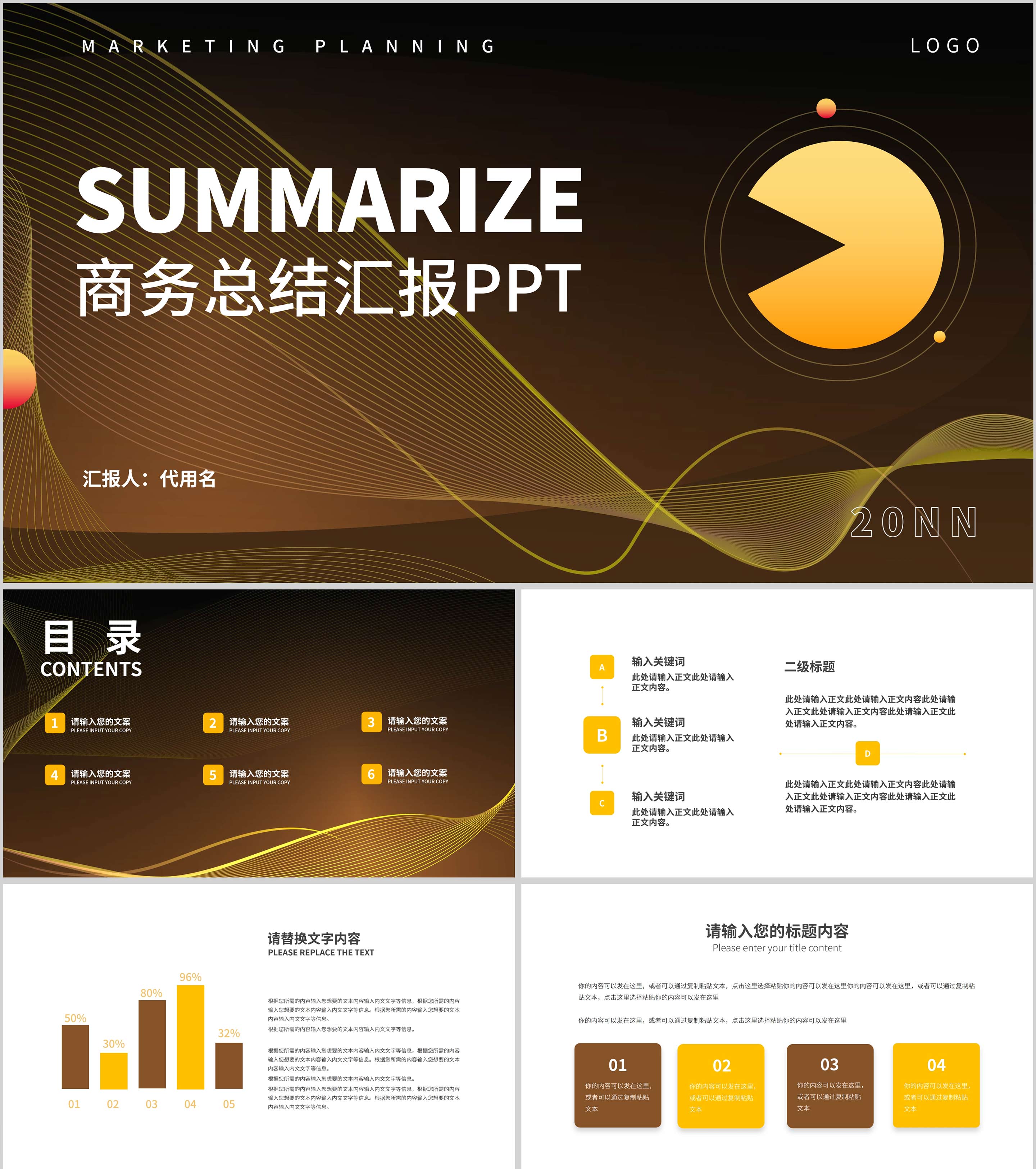 蓝黑色简约风总结汇报PPT模板
