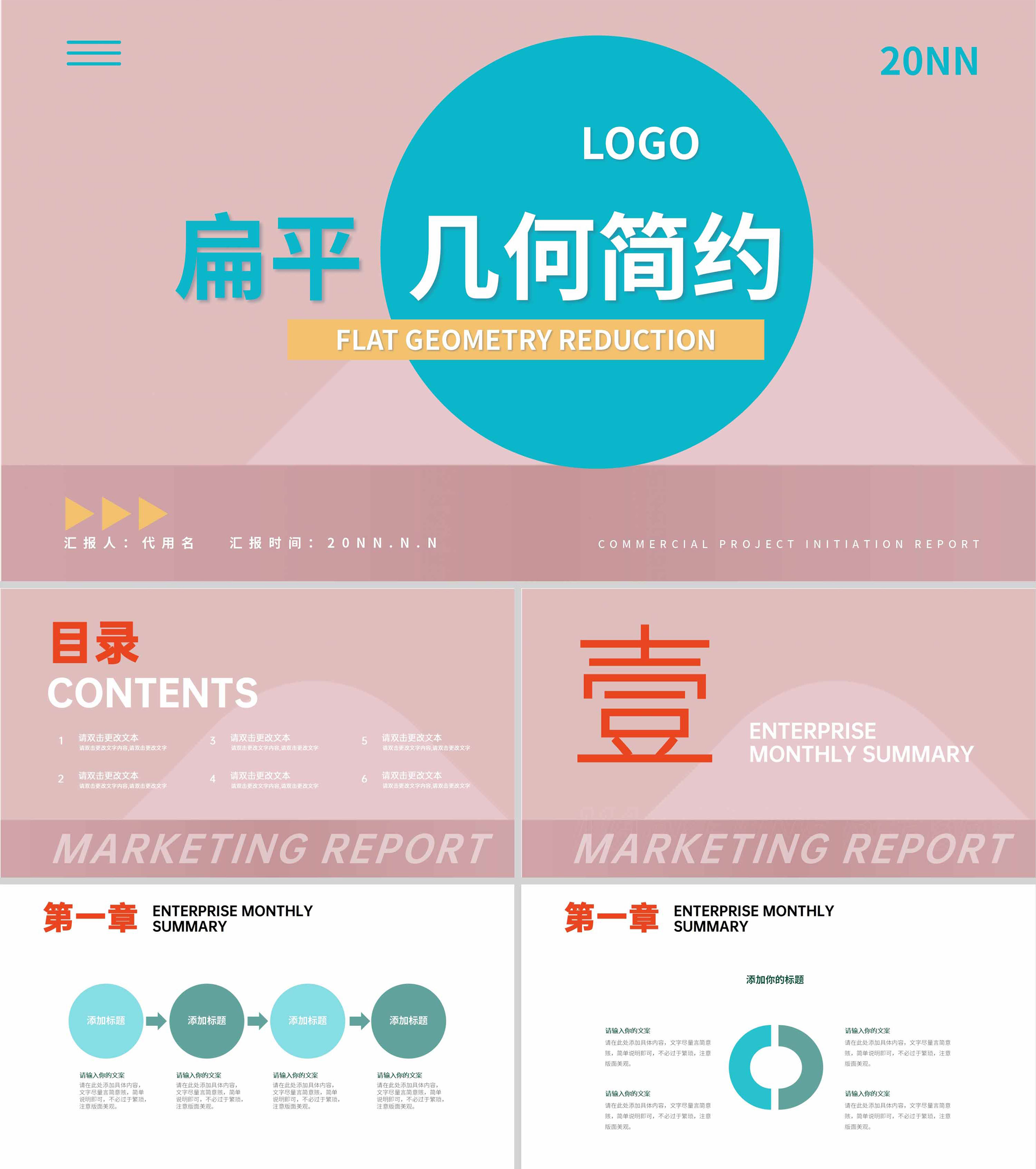 粉色几何风总结汇报PPT模板