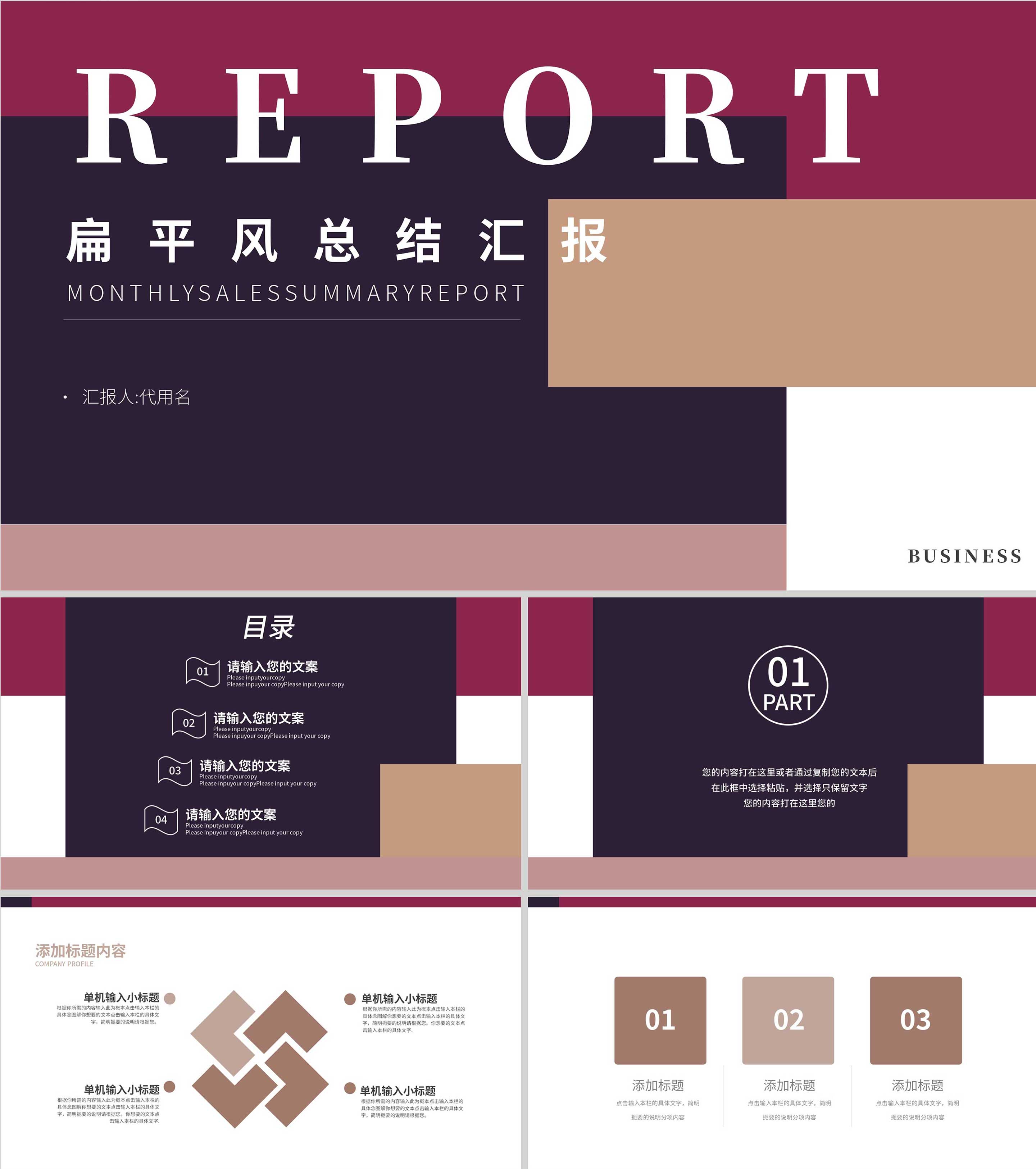 紫色扁平风工作总结汇报PPT模板